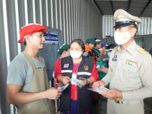 วันที่ 26 พฤษภาคม 2563 เวลา 09.00 น. นางวรรณกานต์ ขาวลาภ แรงงานจังหวัดหนองคาย ร่วมปฏิบัติในการบูรณาการตรวจสอบและประชาสัมพันธ์ให้ความรู้เกี่ยวกับวิธีการป้องกันการแพร่เชื้อโควิด-19 แก่แรงงานต่างด้าวและนายจ้างในถานประกอบการและที่พักอาศัยของแรงงานต่างด้าว โดยมีวัตถุประสงค์เพื่อตรวจคัดกรองหาเชื้อไวรัสวิด-19 และตรวจหาแรงงานต่างด้าวหลบหนีเข้าเมืองโดยผิดกฎหมายซึ่งไม่ผ่านกระบวนการโรคติดต่อ รวมทั้งประชาสัมพันธ์ภารกิจ ของหน่วยงานสังกัดกระทรวงแรงงานให้ลูกจ้างและนายจ้างในสถานประกอบการได้รับทราบ ณ โรงงานลูกชิ้นเจ๊อ้วน ประกอบกิจการการทำลูกชิ้นหมู/หมูยอ สถานที่ตั้ง ณ บ้านเลขที่ 250 ม.8 ต.หนองกอมเกาะ อ.เมือง จ.หนองคาย ซึ่งตรวจคนเข้าเมืองจังหวัดหนองคายเป็นเจ้าภาพในการออกตรวจ และมีนายรณชัย จิตรวิเศษ ผู้ว่าราชการจังหวัดหนองคาย เป็นผู้บังคับบัญชาทีมในการออกตรวจดังกล่าว