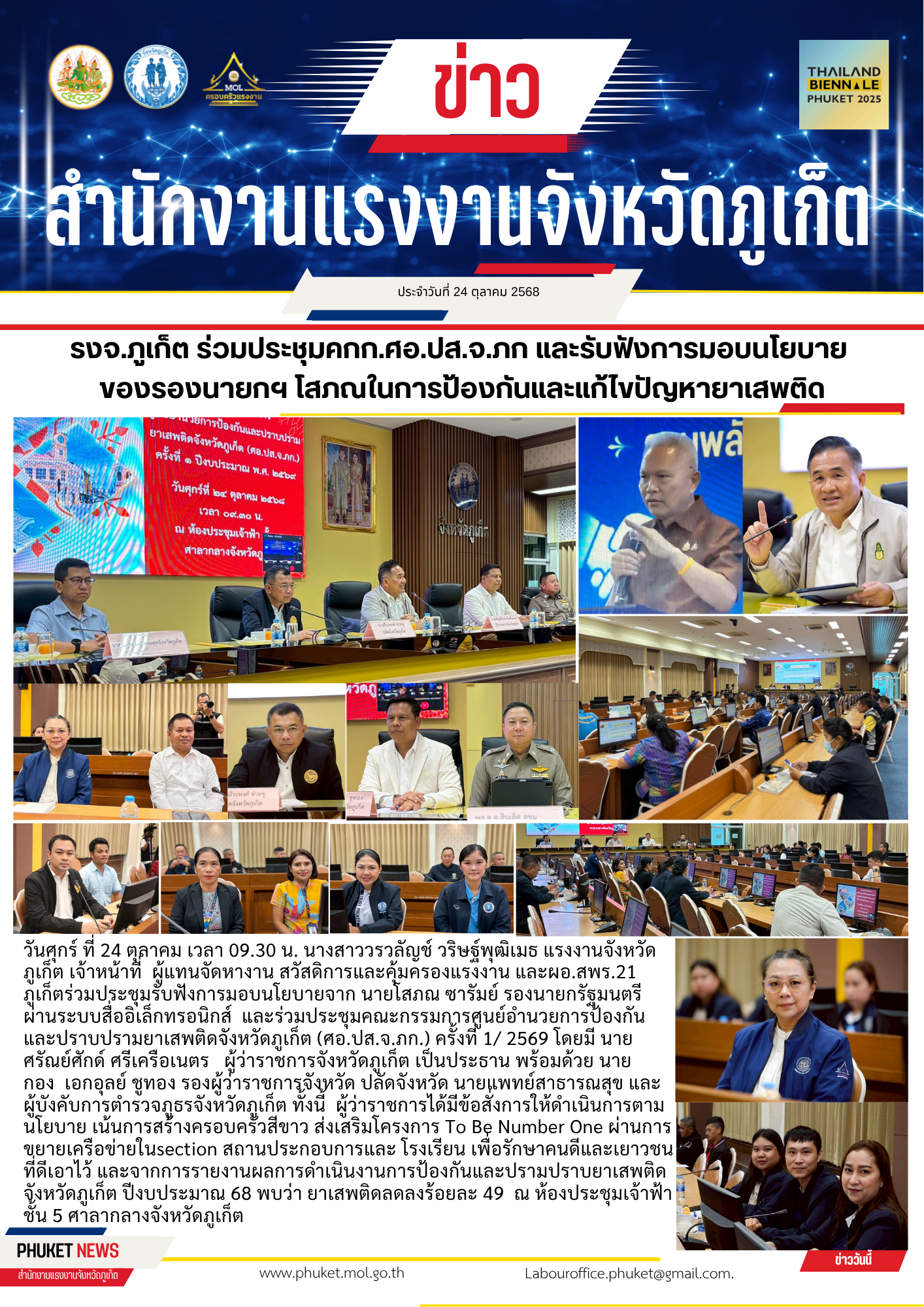 รงจ.ภูเก็ต ร่วมประชุมคกก.ศอ.ปส.จ.ภก และรับฟังการมอบนโยบาย ของรองนายกฯ โสภณในการป้องกันและแก้ไขปัญหายาเสพติด