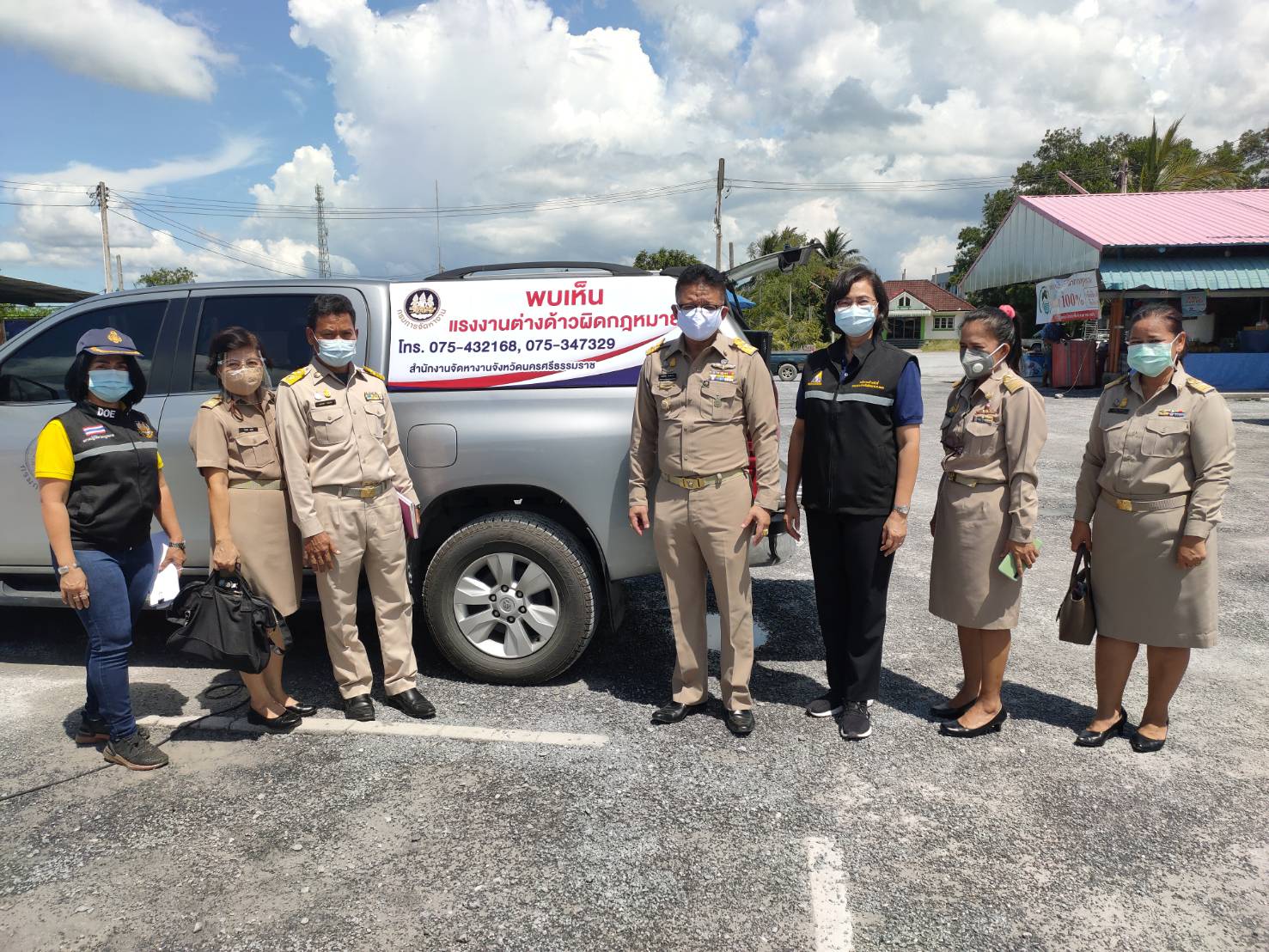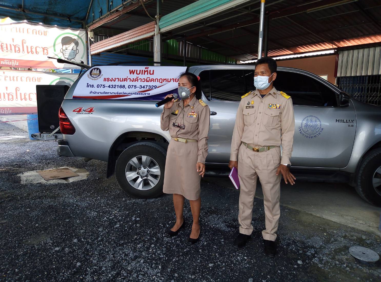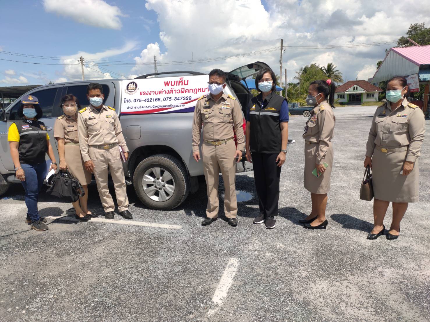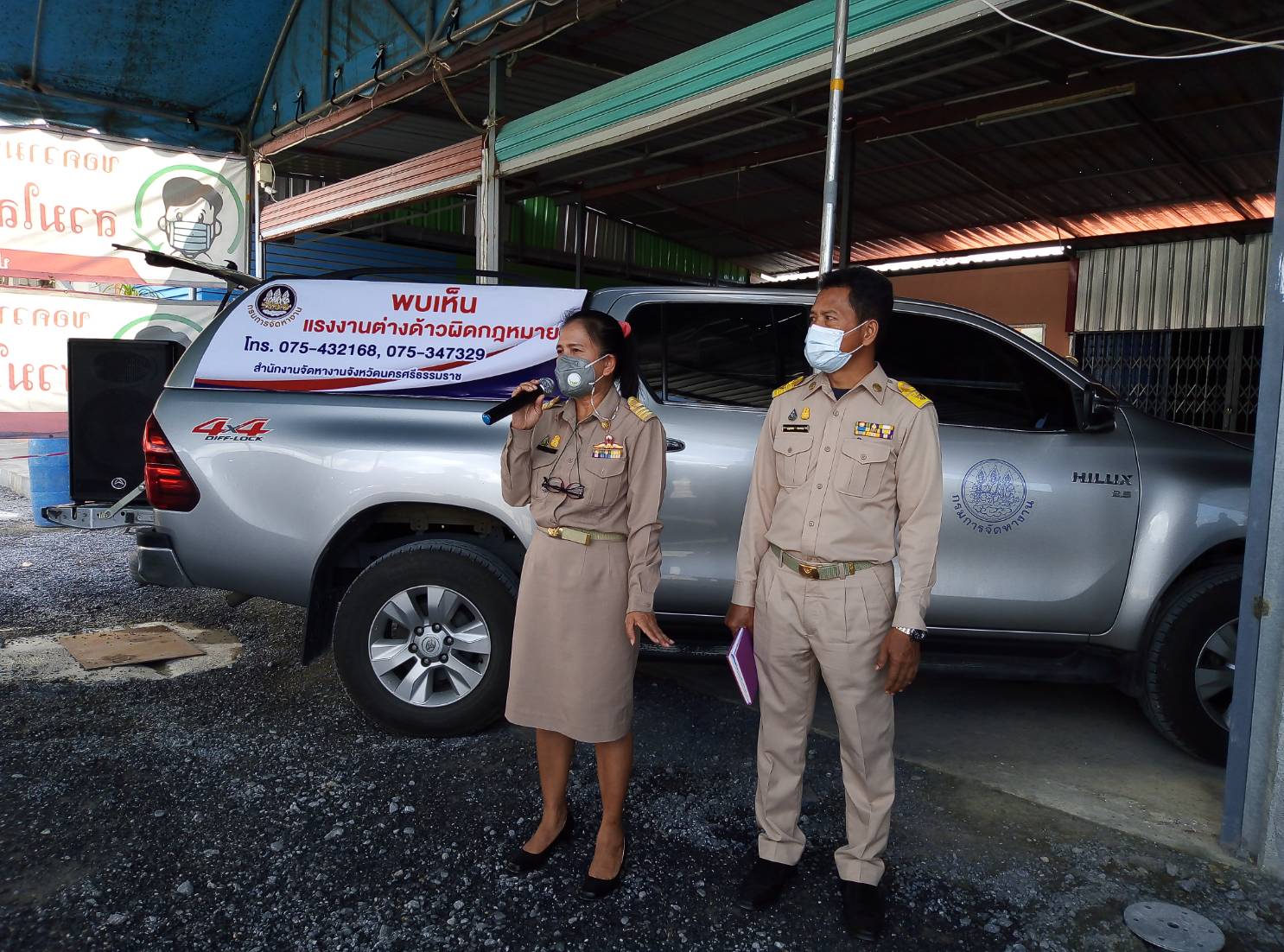 วันที่ 17 พฤษภาคม 2564 เวลา 13.30 น. หัวหน้าส่วนราชการสังกัดกระทรวงแรงงาน รณรงค์ป้องกันการแพร่ระบาดโควิด 19 แรงงานต่างด้าว และประชาสัมพันธ์ภารกิจของกระทรวงแรงงาน ณ ตลาดเกียร์เจริญ ถนนเทิดพระเกียรติ ตำบลปากนคร อำเภอเมือง และบริษัทนครศรีพาราวู๊ด จำกัด ตำบลอินคีรี อำเภอพรหมคีรี จังหวัดนครศรีธรรมราช