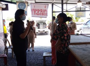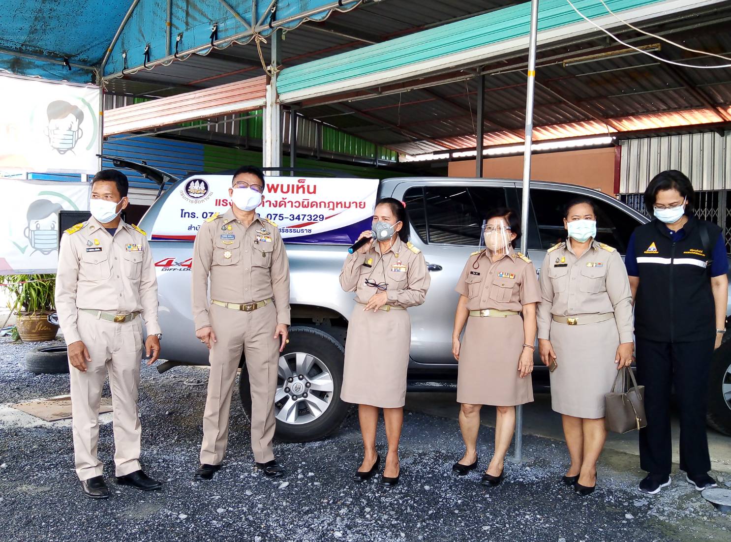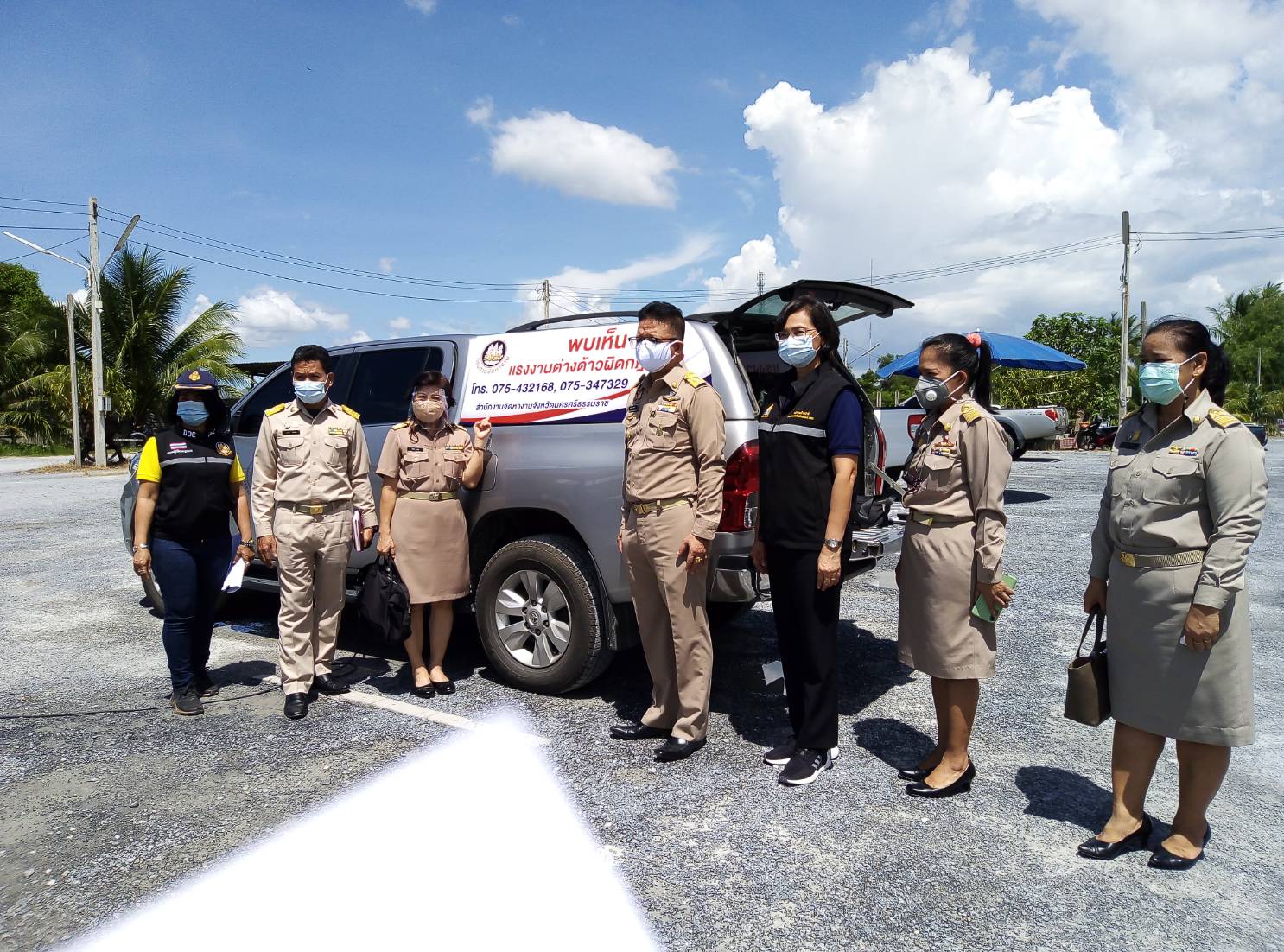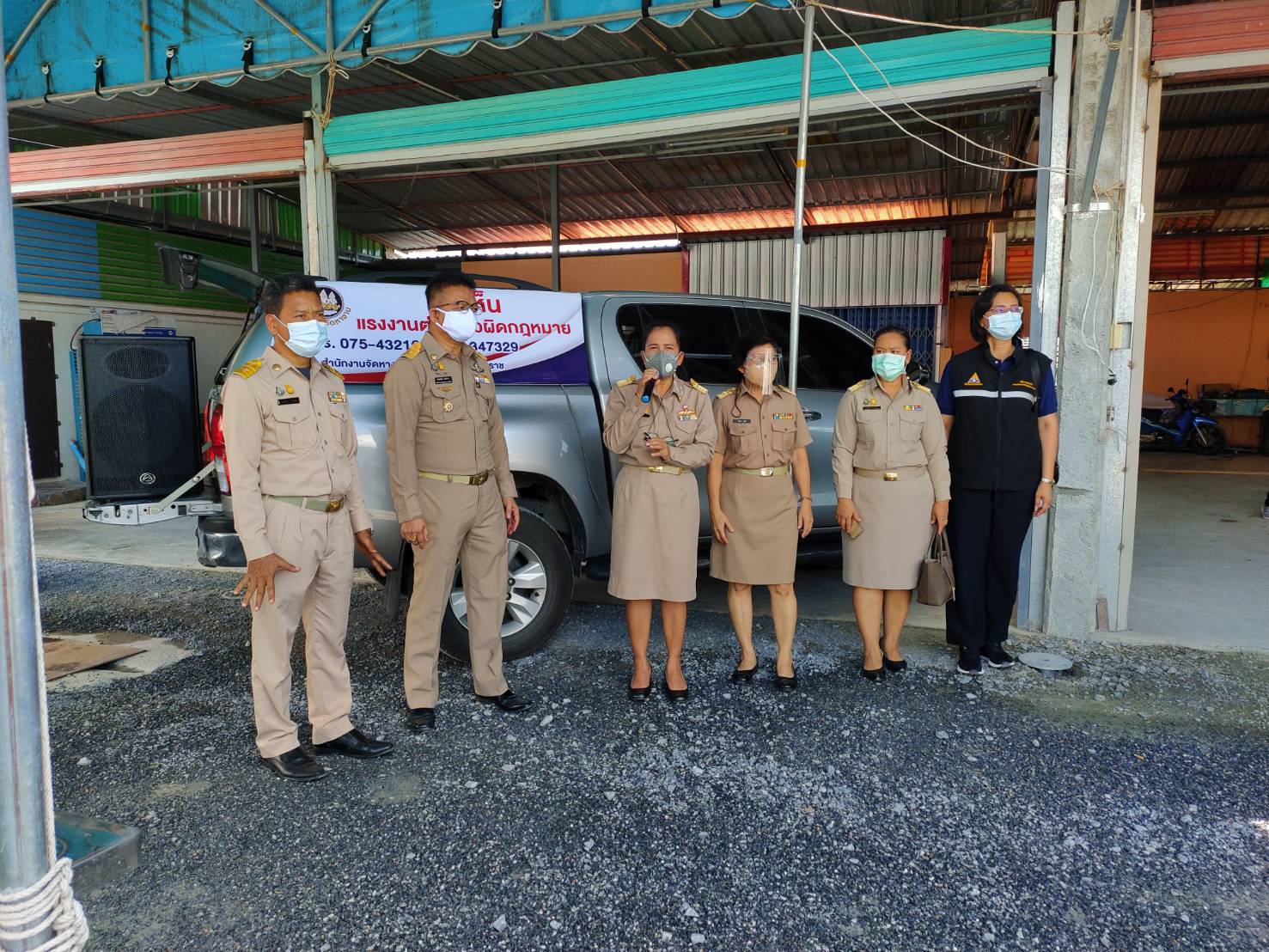 วันที่ 17 พฤษภาคม 2564 เวลา 13.30 น. หัวหน้าส่วนราชการสังกัดกระทรวงแรงงาน รณรงค์ป้องกันการแพร่ระบาดโควิด 19 แรงงานต่างด้าว และประชาสัมพันธ์ภารกิจของกระทรวงแรงงาน ณ ตลาดเกียร์เจริญ ถนนเทิดพระเกียรติ ตำบลปากนคร อำเภอเมือง และบริษัทนครศรีพาราวู๊ด จำกัด ตำบลอินคีรี อำเภอพรหมคีรี จังหวัดนครศรีธรรมราช
