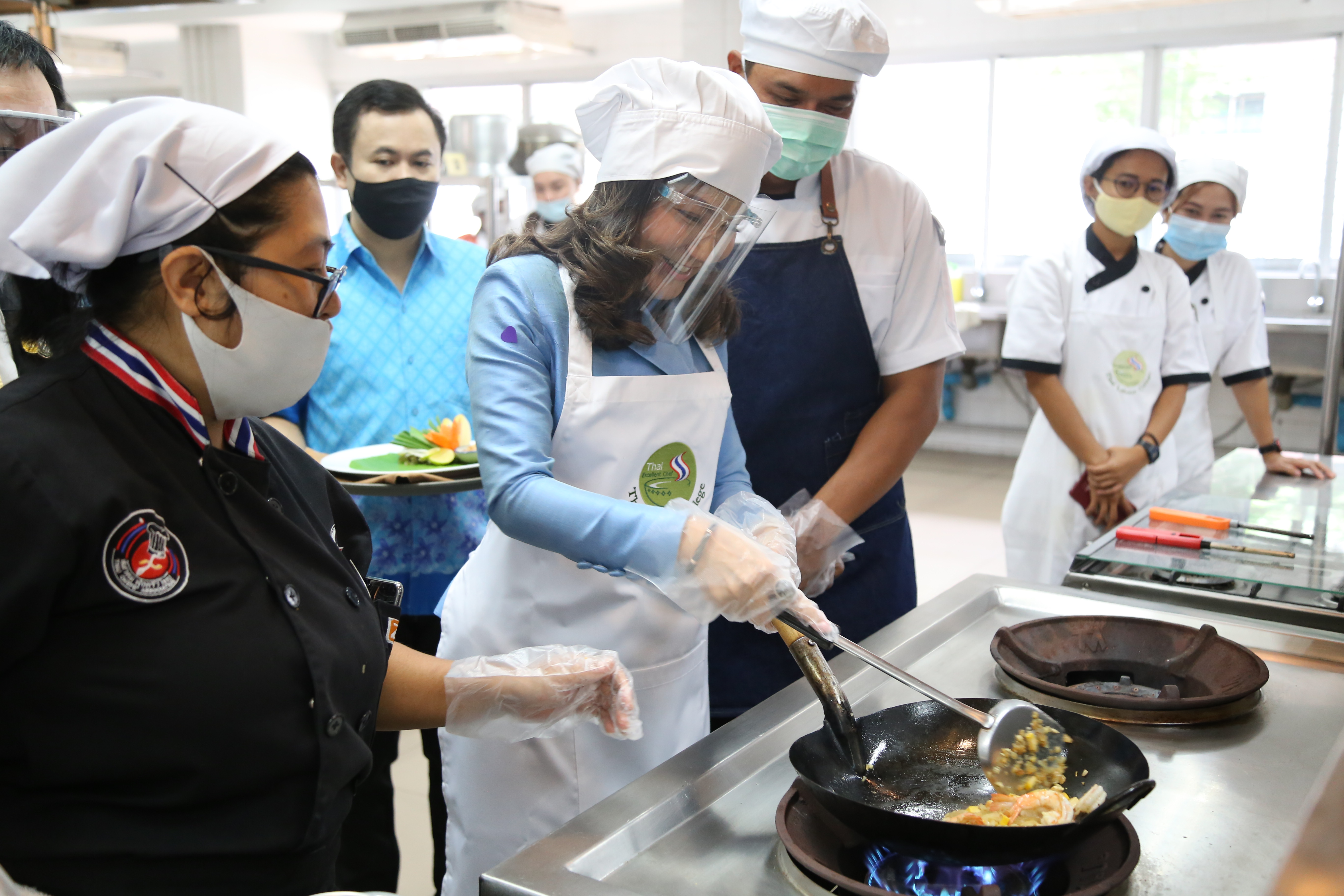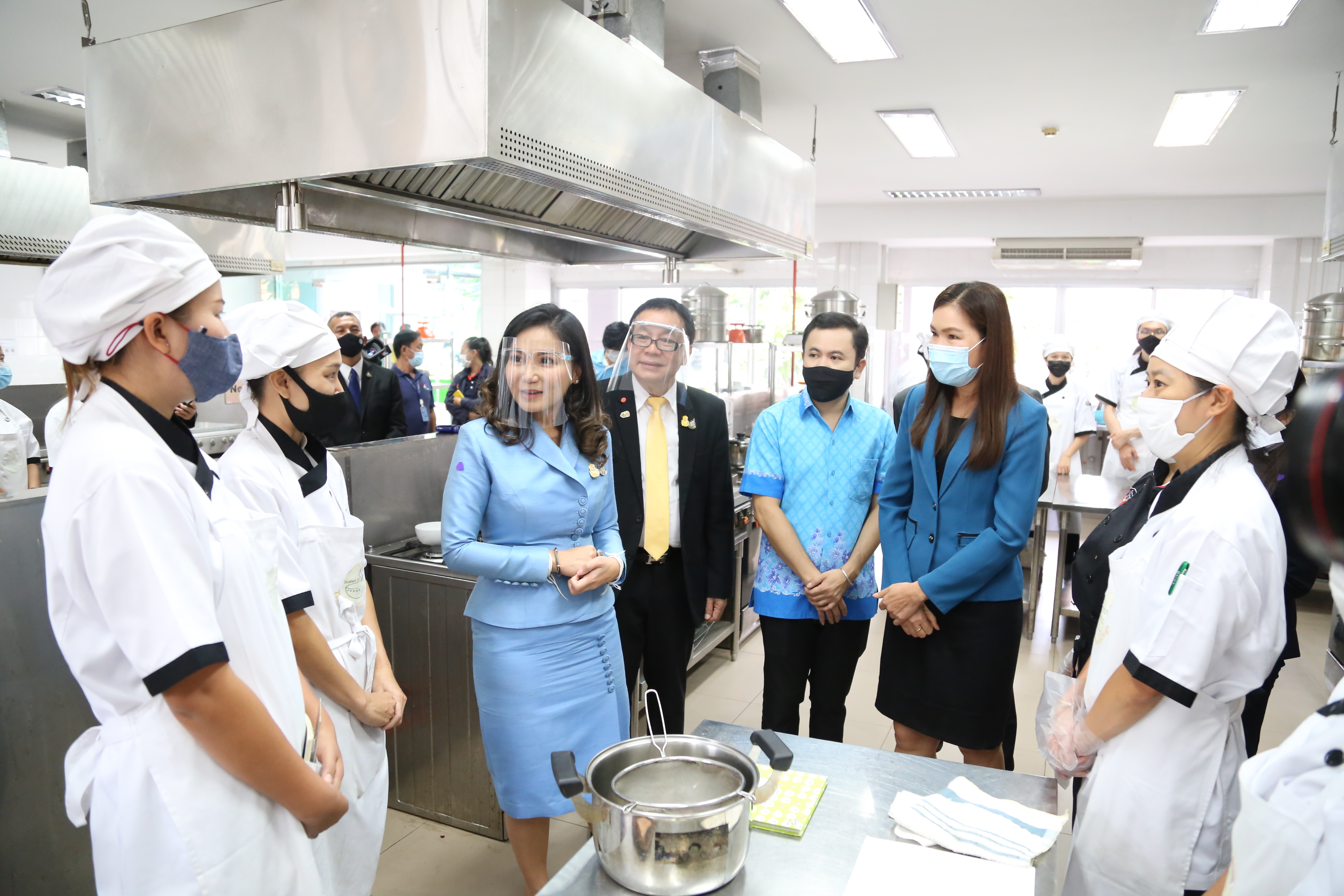 วันที่ 20 สิงหาคม 2563 เวลา 10.00 น. ศาสตราจารย์ นฤมล ภิญโญสินวัฒน์ รัฐมนตรีช่วยว่าการกระทรวงแรงงาน พร้อมด้วย นายภาคิน สมมิตรธนกุล ผู้ช่วยเลขานุการรัฐมนตรีว่าการกระทรวงแรงงาน เยี่ยมชมการฝึกอบรมฝีมือแรงงานโดยกรมพัฒนาฝีมือแรงงาน ประกอบด้วย การฝึกอบรมให้แก่ผู้สูงอายุ สาขาการทำขนมไทย และการฝึกหลักสูตรฝึกเตรียมเข้าทำงาน สาขาผู้ประกอบอาหารไทย พร้อมฝึกทำอาหาร 1 เมนู ร่วมกับผู้เข้ารับการอบรม ณ วิทยาลัยการแรงงาน กระทรวงแรงงาน