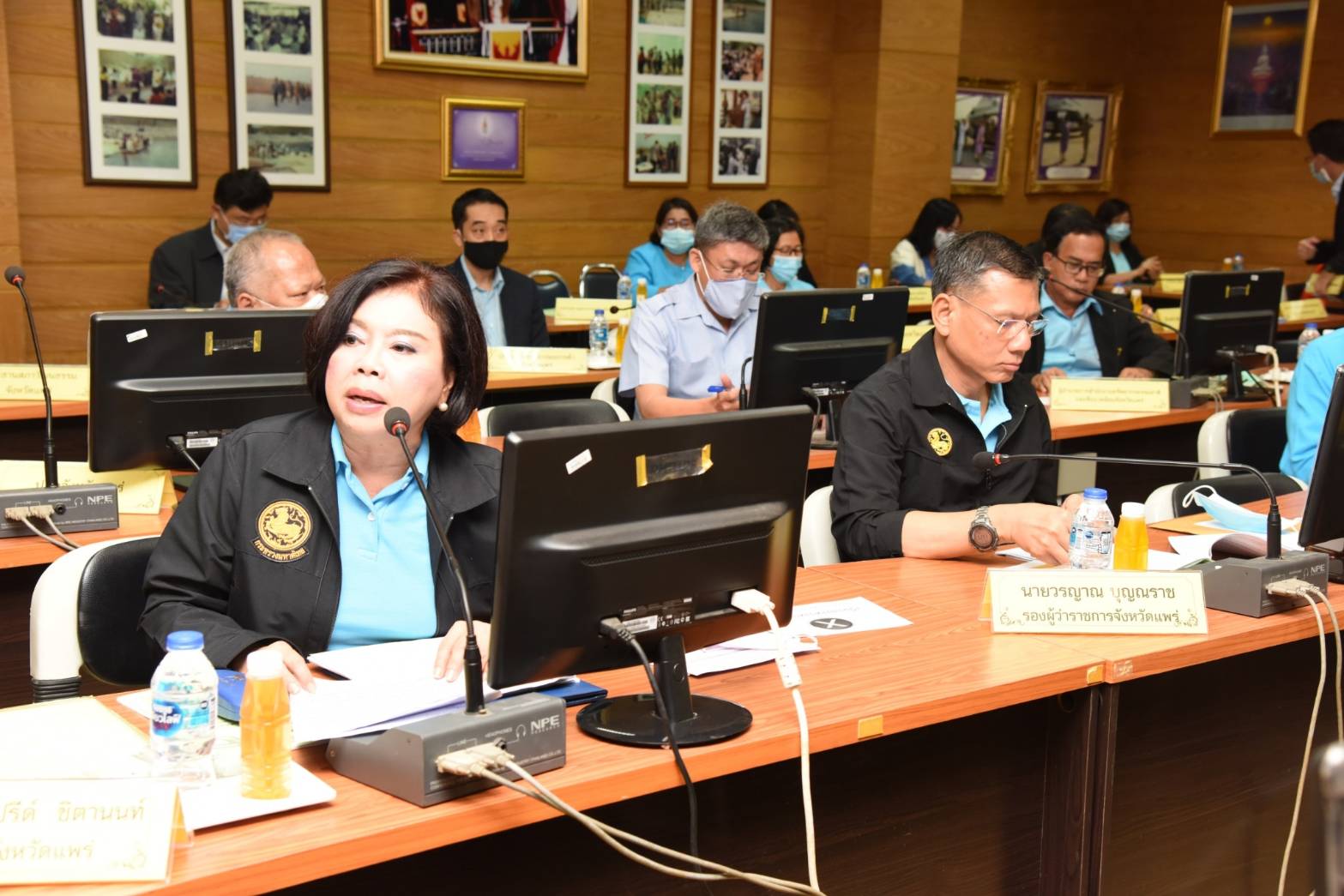 ในการนี้ ผู้ว่าราชการจังหวัดได้มอบหมายให้หัวหน้าส่วนราชการจังหวัดแพร่ที่เกี่ยวข้อง บรรยายสรุปทิศทางการพัฒนาเพื่อขับเคลื่อนยุทธศาสตร์ชาติ แนวทางการขับเคลื่อนไทยไปด้วยกันของจังหวัดแพร่ สถานการณ์การแพร่ระบาดของไวรัสโควิด-19 มาตรการป้องกันและการเตรียมความพร้อมกรณีมีการแพร่ระบาด มาตรการและแผนงานโครงการในการเยียวยาและฟื้นฟูผู้ได้รับผลกระทบที่เป็นภาพรวมทั้งจังหวัด รวมถึงข้อมูลด้านสถานการณ์แรงงาน และผลการขับเคลื่อนด้านแรงงานจากหน่วยงานในสังกัดกระทรวงแรงงาน