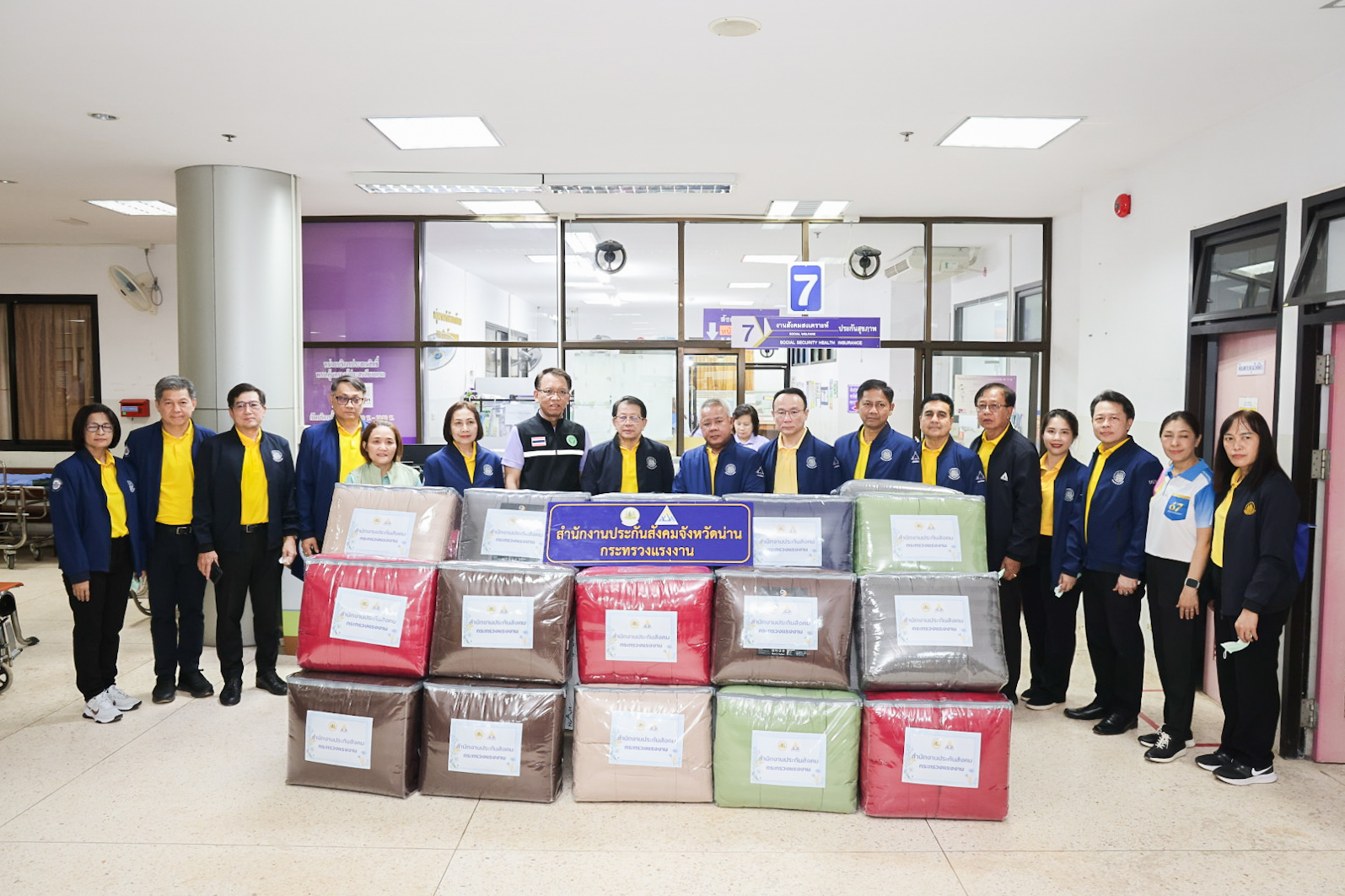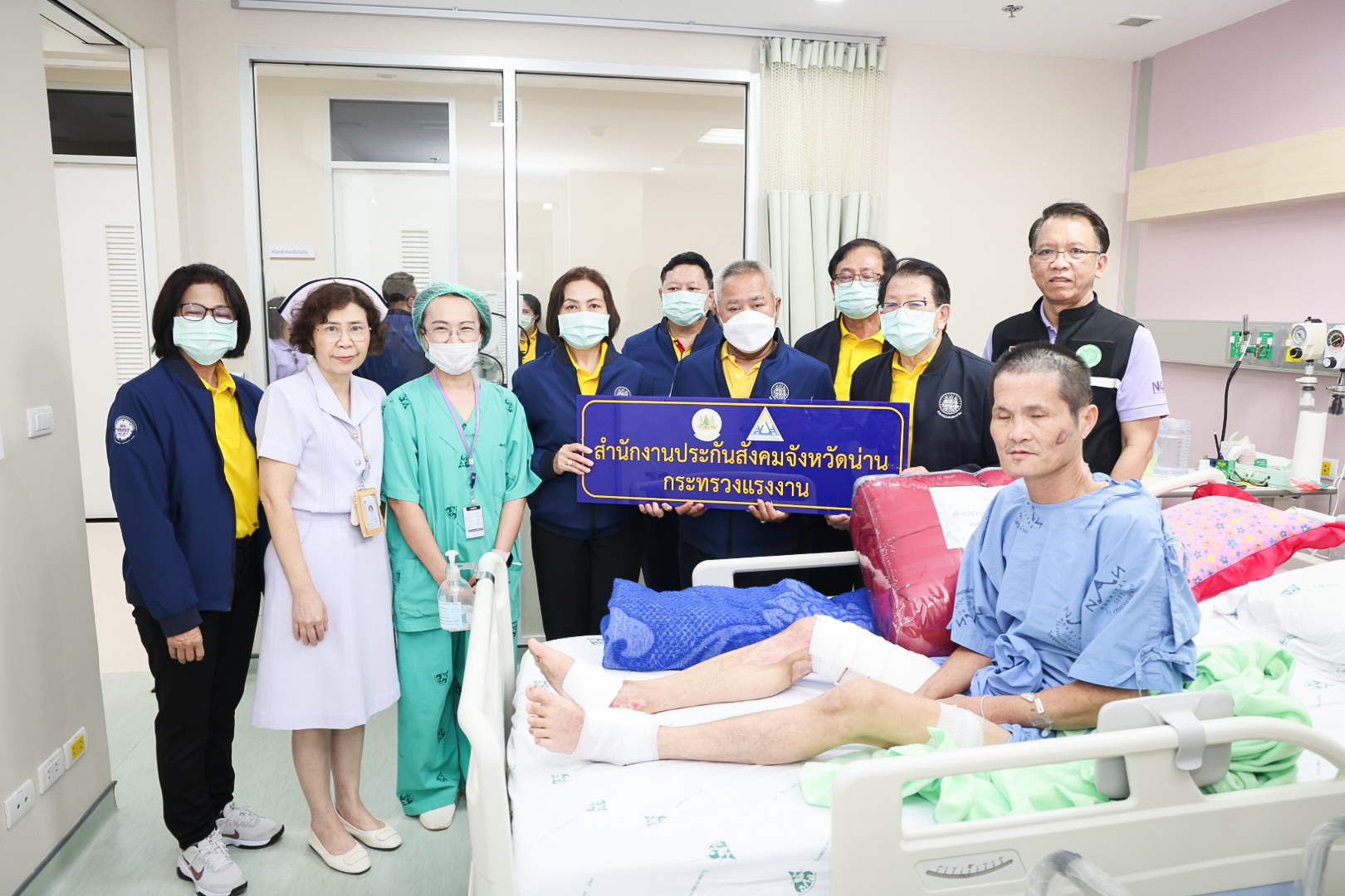 วันที่ 31 กรกฎาคม 2568 เวลา 13.30 น.นายพงศ์กวิน จึงรุ่งเรืองกิจ รัฐมนตรีว่าการกระทรวงแรงงาน มอบหมายให้ นายสุรสิทธิ์ นิธิวุฒิวรรักษ์ เลขานุการรัฐมนตรีว่าการกระทรวงแรงงาน พร้อมด้วย นายบุญสงค์ ทัพชัยยุทธ์ ปลัดกระทรวงแรงงาน และผู้บริหารกระทรวงแรงงาน ลงพื้นที่จังหวัดน่าน เพื่อตรวจเยี่ยมและให้กำลังใจผู้ประกันตนที่ประสบเหตุจากอุทกภัยซึ่งเข้าพักรักษาตัวเป็นผู้ป่วยใน โดยมี นายสมชาย มรกตศรีวรรณ อธิบดีกรมการจัดหางาน เรือเอก สาโรจน์ คมคาย อธิบดีกรมสวัสดิการและคุ้มครองแรงงาน นางมารศรี ใจรังษี เลขาธิการสำนักงานประกันสังคม นายนันทชัย ปัญญาสุรฤทธิ์ ผู้อำนวยการ สสปท. นายพิเชษฐ์ ทองพันธ์ ผู้ตรวจราชการกระทรวงแรงงาน นายศักดินาถ สนธิศักดิ์โยธิน ผู้ช่วยปลัดกระทรวงแรงงาน หัวหน้าส่วนราชการสังกัดกระทรวงแรงงานจังหวัดน่าน เข้าร่วม นายแพทย์วสันต์ แก้ววี ผู้อำนวยการโรงพยาบาลน่าน และคณะ ร่วมให้การต้อนรับและนำเยี่ยมสถานที่ของโรงพยาบาลที่ได้รับผลกระทบจากอุทกภัยในครั้งนี้ด้วย ณ โรงพยาบาลน่าน อำเภอเมืองน่าน จังหวัดน่าน