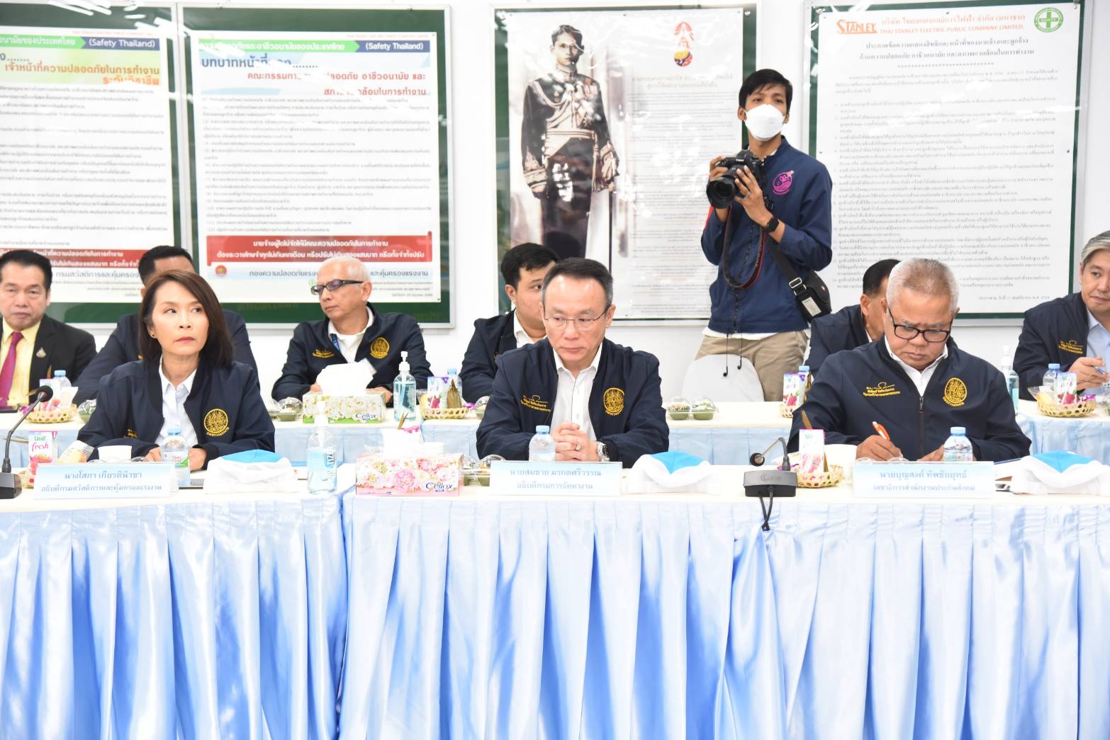วันที่ 15 มกราคม 2567 นายพิพัฒน์ รัชกิจประการ รัฐมนตรีว่าการกระทรวงแรงงาน ลงพื้นที่เพื่อรับฟังบรรยายสรุปผลการดำเนินงาน เยี่ยมชมสถานประกอบการด้านการบริหารจัดการด้านความปลอดภัยในการทำงาน โครงการแรงงานพันธุ์ดีตามวิถีเศรษฐกิจพอเพียงของบริษัท ไทยสแตนเลย์การไฟฟ้า จำกัด (มหาชน) และร่วมหารือเรื่อง แนวคิดการพัฒนาทักษะอาชีพที่สอดรับกับความต้องการของโลกใบใหม่ โดยมี นายสิรภพ ดวงสอดศรี ผู้ช่วยรัฐมนตรีประจำกระทรวงแรงงาน นายอารี ไกรนรา เลขานุการรัฐมนตรีว่าการกระทรวงแรงงาน นายภุชงค์ วรศรี ประจำสำนักเลขาธิการนายกรัฐมนตรี ปฏิบัติหน้าที่ประจำกระทรวงแรงงาน นายไพโรจน์ โชติกเสถียร ปลัดกระทรวงแรงงาน พร้อมด้วยผู้บริหารระดับสูงกระทรวงแรงงาน เข้าร่วม นายอภิชาต ลี้อิสสระนุกูล ประธานกรรมการ บริษัท ไทยสแตนเลย์การไฟฟ้า จำกัด (มหาชน) นายภาสกร บุญญลักษม์ ผู้ว่าราชการจังหวัดปทุมธานี หัวหน้าส่วนราชการหน่วยงานสังกัดกระทรวงแรงงานจังหวัดปทุมธานี ร่วมให้การต้อนรับ ณ บริษัท ไทยสแตนเลย์การไฟฟ้า จำกัด (มหาชน) ถ.บางพูน – รังสิต ต.บ้านกลาง อ.เมือง จ.ปทุมธานี