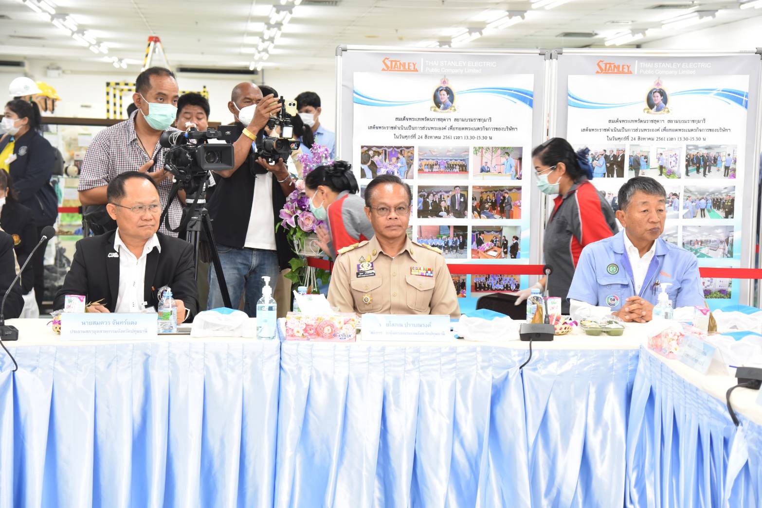 Mr. Phiphat said that today, he thanked the Governor of Pathum Thani Province, the President of the Chamber of Commerce and President of Industry, and the executives of Thai Stanley Electric for their warm welcome. Today’s field visit was to Thai Stanley Electric. This company received a national and Asian regional award for occupational safety management, as well as from the education sector and other related government agencies, in line with the current work direction that requires cooperation. Looking back, changes in the labour sector are evident, namely the use of AI and robots for work replacing people, especially production in the industrial sector. The state of change reflects the development of “people” or what is called “human capital” to have knowledge and skills consistent with the use of technology in the workplace, having at least basic knowledge to control and manage the work of AI and robots. If workers are able to upgrade their skills to program AI or robots, it will be even better.