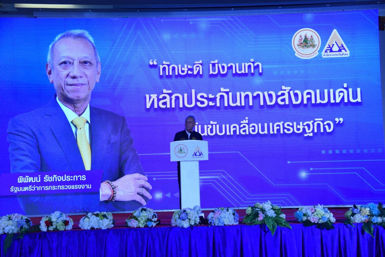 The Labour Minister, Mr. Phiphat Ratchakitprakarn, shared that he was pleased to have traveled to Buriram Province and to have the honour of presiding over the opening of the Social Security Section 40 Public Relations Project to the Social Security Network, class 5, which was held at the Thepnakorn Hotel, Buriram Province. The Social Security Section 40 provides benefits to self-employed people. Insured persons can choose a coverage amount that suits them. The options start from option one, where contributions are 70 Baht monthly, option two at 100 Baht monthly, and option three at 300 Baht monthly, in which insured persons will receive protection in up to 5 cases, including compensation for loss of income from illness, disability, death, old age, and child support. This gives informal workers a better quality of life, following the Ministry of Labour’s policy on “building the economic foundation and developing quality through labour protection.” In Buriram province, there are a total of 66,739 self-employed people registered under Section 40, most of whom are farmers, such as rice farmers, sugar cane farmers, and handicraft professionals. There are trading career groups and groups of people with independent occupations, including general contractors, which are an important mechanism for driving the economy. Buriram Province is one of the most economically important provinces in the Northeast region. The Social Security Section 40 Public Relations Project aims to provide incentives for self-employed people to enter the voluntary Social Security system, including participation in the Social Security networks. It aims to disseminate and publicize social security missions to the public and target groups from the district, subdistrict, village, and community levels. There are also activities beneficial to the self-employed, such as recruiting Section 40 insured persons, shops selling products from network partners, educational exhibitions from agencies under the Ministry of Labour, and influenza vaccination services. Certificates of honour were also presented to networks that support outstanding social security work.