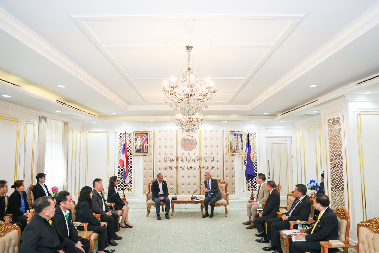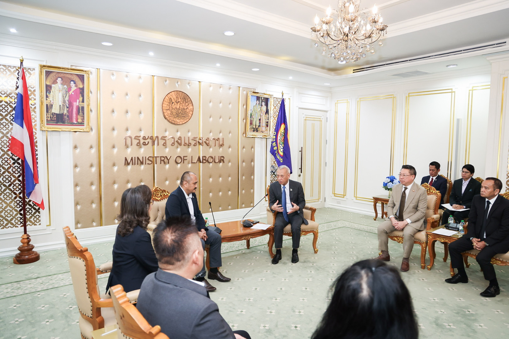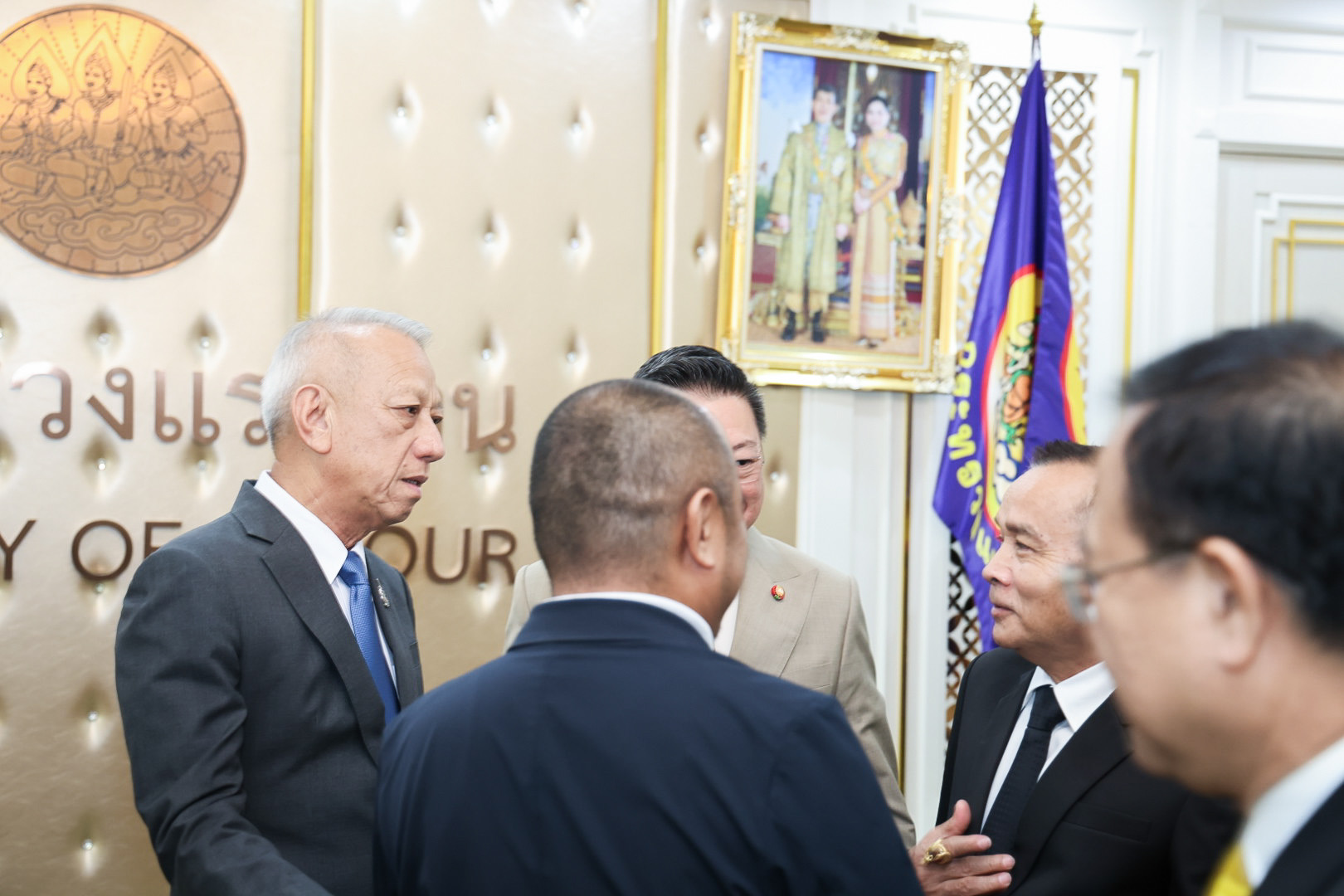 วันที่ 26 ตุลาคม 2566 เวลา 14.30 น. นายพิพัฒน์ รัชกิจประการ รัฐมนตรีว่าการกระทรวงแรงงาน ให้การต้อนรับ ว่าที่ร้อยตรีชัยยุทธ หอมวงศ์ ประธานสหภาพแรงงานรัฐวิสาหกิจการประปานครหลวง และคณะเครือข่ายปกป้องไฟฟ้าประปาและยา เพื่อชาติประชาชน (คฟปย.) ประกอบด้วย สหภาพแรงงานรัฐวิสาหกิจการไฟฟ้าฝ่ายผลิตแห่งประเทศไทย (สร.กฟผ.) สหภาพแรงงานรัฐวิสาหกิจการไฟฟ้านครหลวง (สภฟ.) สหภาพแรงงานรัฐวิสาหกิจการไฟฟ้าส่วนภูมิภาค (สร.กฟภ.) สหภาพแรงงานรัฐวิสาหกิจการประปานครหลวง (สร.กปน) สหภาพแรงงานรัฐวิสาหกิจการประปาส่วนภูมิภาค (สร.กปภ.) และ สหภาพแรงงานรัฐวิสาหกิจองค์การเภสัชกรรม (สร.อภ.) เข้าพบเพื่อแสดงความยินดีและขอรับทราบนโยบายในการปฏิบัติราชการ ณ ห้องจัตุมงคล ชั้น 6 อาคารกระทรวงแรงงาน