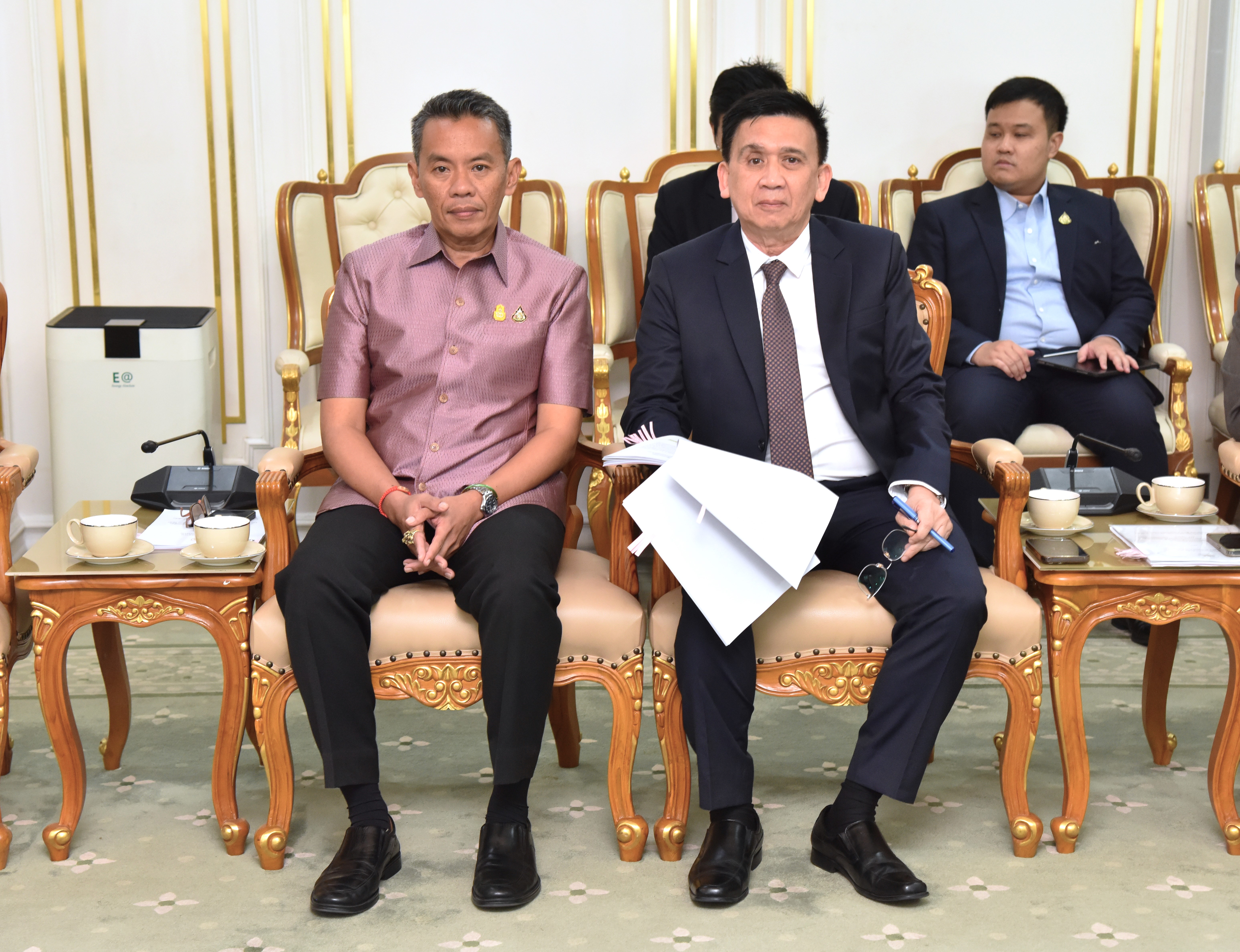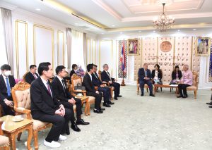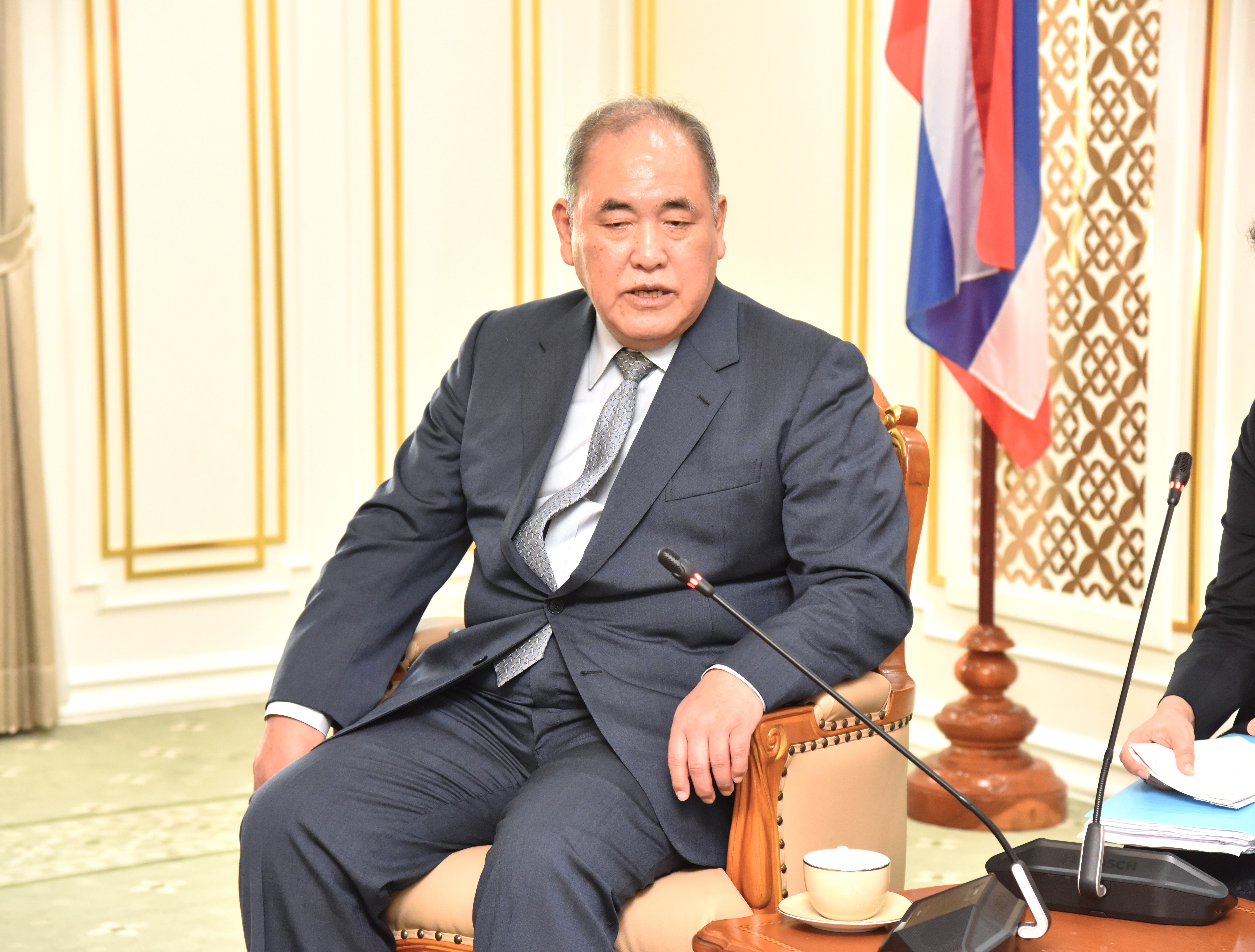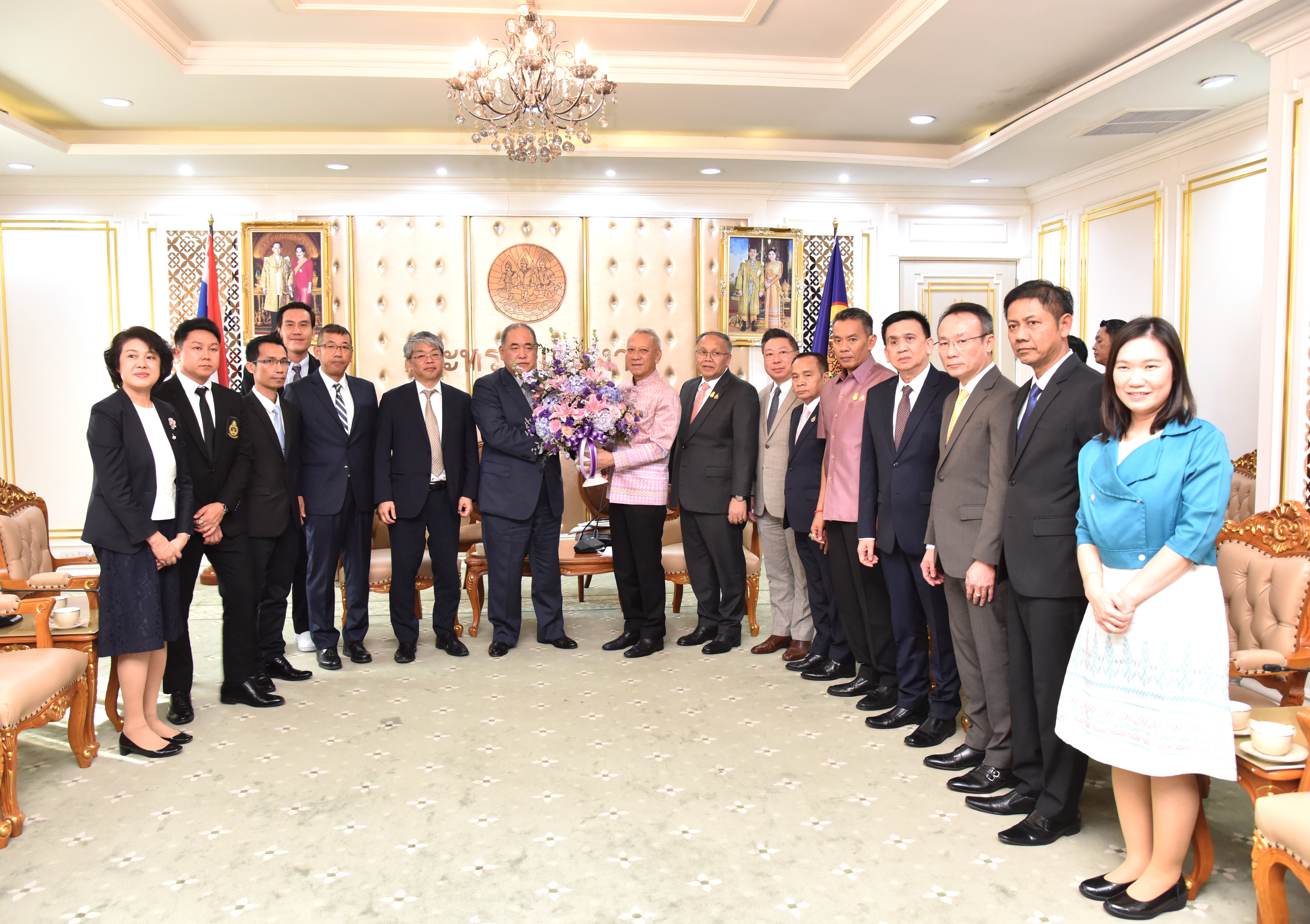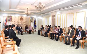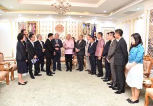 On November 21, 2023, at 15.00 hours, the Labour Minister, Mr. Phiphat Ratchakitprakarn, the Assistant to the Labour Minister, Mr. Siraphop Duangsodsri, the Labour Minister’s Advisor, Mr. Thanat Thaweekueakulkit, the Secretariat to the Labour Minister, Mr. Aree Krainara, from the Prime Minister’s Secretariat’s Office, performing duties for the Ministry of Labour, Mr. Phuchong Worasri, the Permanent Secretary of Labour, Mr. P้airoj Chotik้asatian, and the Ministry of Labour’s senior executives, joined in welcoming the President of IM Japan, on the occasion of a courtesy call and to discuss signing a Memorandum of Understanding to recruit Thai workers to work as skilled workers in Japan and a study tour and training before traveling to be a technical intern at the Skill Development Institute 14 in Pathum Thani. They also introduced three graduates of the IM Japan internship. The occasion took place at the Chatumongkol Room, 6th floor, Ministry of Labour.