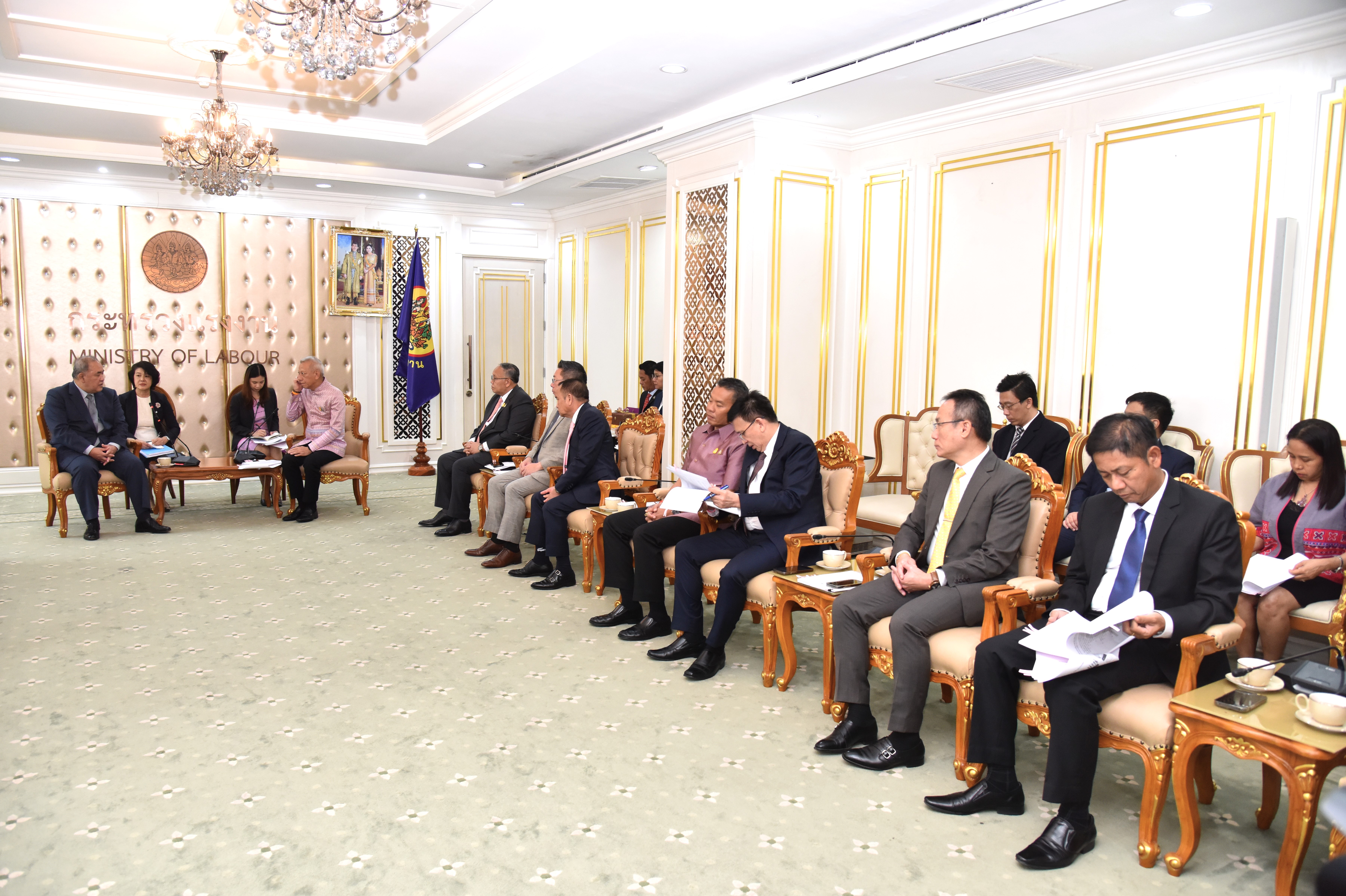 วันที่ 21 พฤศจิกายน 2566 เวลา 15.00 น. นายพิพัฒน์ รัชกิจประการ รัฐมนตรีว่าการกระทรวงแรงงาน พร้อมด้วย นายสิรภพ ดวงสอดศรี ผู้ช่วยรัฐมนตรีประจำกระทรวงแรงงาน นายธนัสถ์ ทวีเกื้อกูลกิจ ที่ปรึกษารัฐมนตรีว่าการกระทรวงแรงงาน นายอารี ไกรนรา เลขานุการรัฐมนตรีว่าการกระทรวงแรงงาน นายภุชงค์ วรศรี ประจำสำนักเลขาธิการนายกรัฐมนตรี ปฏิบัติหน้าที่ประจำกระทรวงแรงงาน นายไพโรจน์ โชติกเสถียร ปลัดกระทรวงแรงงาน และผู้บริหารระดับสูงกระทรวงแรงงาน ให้การต้อนรับ ในโอกาสเข้าเยี่ยมคารวะ และหารือประเด็นการลงนามข้อตกลงความร่วมมือในการรับแรงงานไทยไปทำงานเป็นแรงงานทักษะเฉพาะในประเทศญี่ปุ่น การศึกษาดูงานการฝึกอบรมก่อนเดินทางไปเป็นผู้ฝึกปฏิบัติงานด้านเทคนิค ณ สถาบันพัฒนาฝีมือแรงงาน 14 ปทุมธานี และแนะนำผู้สำเร็จการฝึกปฏิบัติงาน IM Japan จำนวน 3 คน ณ ห้องจัตุมงคล ชั้น 6 อาคารกระทรวงแรงงาน