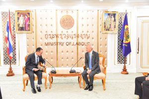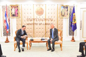 วันที่ 1 พฤศจิกายน 2566 เวลา 14.30 น. นายพิพัฒน์ รัชกิจประการ รัฐมนตรีว่าการกระทรวงแรงงาน ให้การต้อนรับ นายชินวัฒน์ ใจกุศลสูงยิ่ง นายกสมาคมการจัดหางานไทยไปต่างประเทศ และคณะ ในโอกาสเข้าพบเพื่อแสดงความยินดีเนื่องในโอกาสเข้ารับตำแหน่ง รวมทั้งหารือข้อราชการเกี่ยวกับการจัดส่งแรงงานไทยไปทำงานต่างประเทศ โดยมี นายภุชงค์ วรศรี ประจำสำนักเลขาธิการนายกรัฐมนตรี ปฏิบัติหน้าที่ประจำกระทรวงแรงงาน นายวรรณรัตน์ ศรีสุขใส รองปลัดกระทรวงแรงงาน พร้อมด้วย ผู้บริหารระดับสูงกระทรวงแรงงาน เข้าร่วม ณ ห้องจัตุมงคล ชั้น 6 อาคารกระทรวงแรงงาน