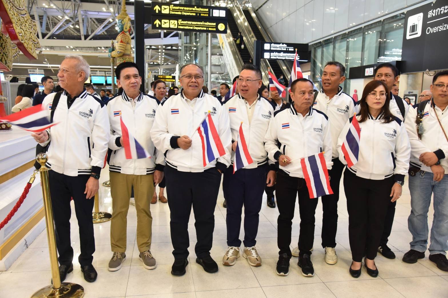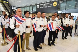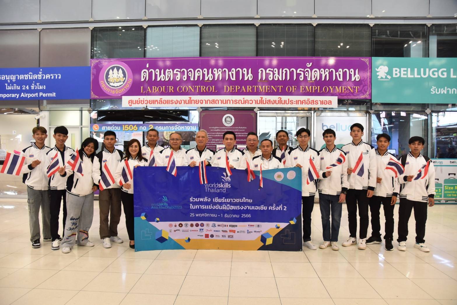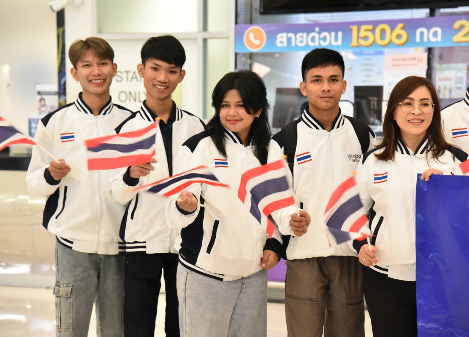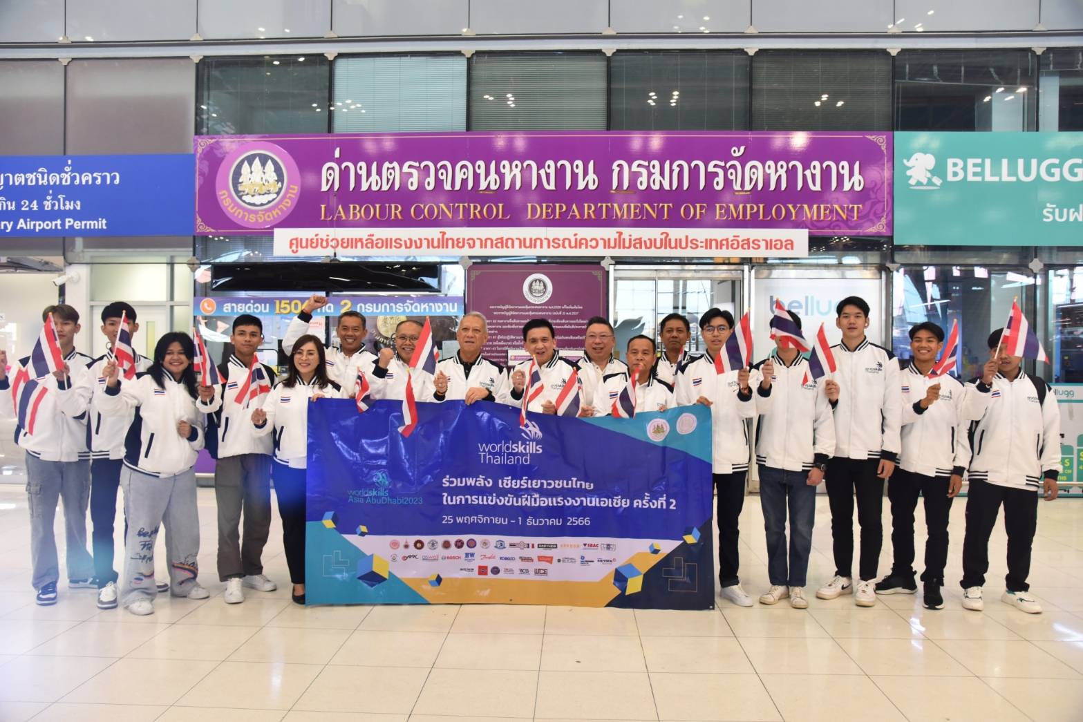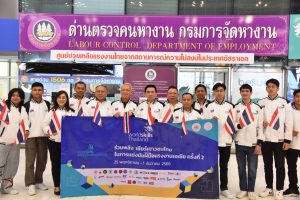 On November 25, 2023, the Labour Minister, Mr. Phiphat Ratchakitprakarn, the Labour Minister, Mr. Phiphat Ratchakitprakarn, the Assistant to the Labour Minister, Mr. Siraphop Duangsodsri, the Labour Minister’s Advisor, Mr. Thanat Thaweekueakulkit, the Secretariat to the Labour Minister, Mr. Aree Krainara, from the Prime Minister’s Secretariat’s Office, performing duties for the Ministry of Labour, Mr. Phuchong Worasri, the Department of Skill Development’s Director-General, Ms. Bubpha Rueangsud, and the Deputy Director-General of the Department of Skill Development, Mr. Pichet Thongphan, as the organization sending youths to compete, joined in sending off nine Thai youth competitors to the 2nd WorldSkills Asia Competition. The occasion took place at Suvarnabhumi Airport, Samut Prakan Province. They are confident that Thai youths can bring back medals to Thailand.