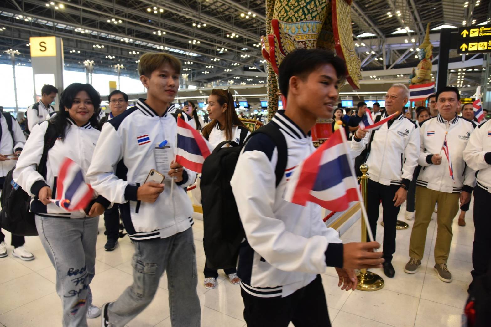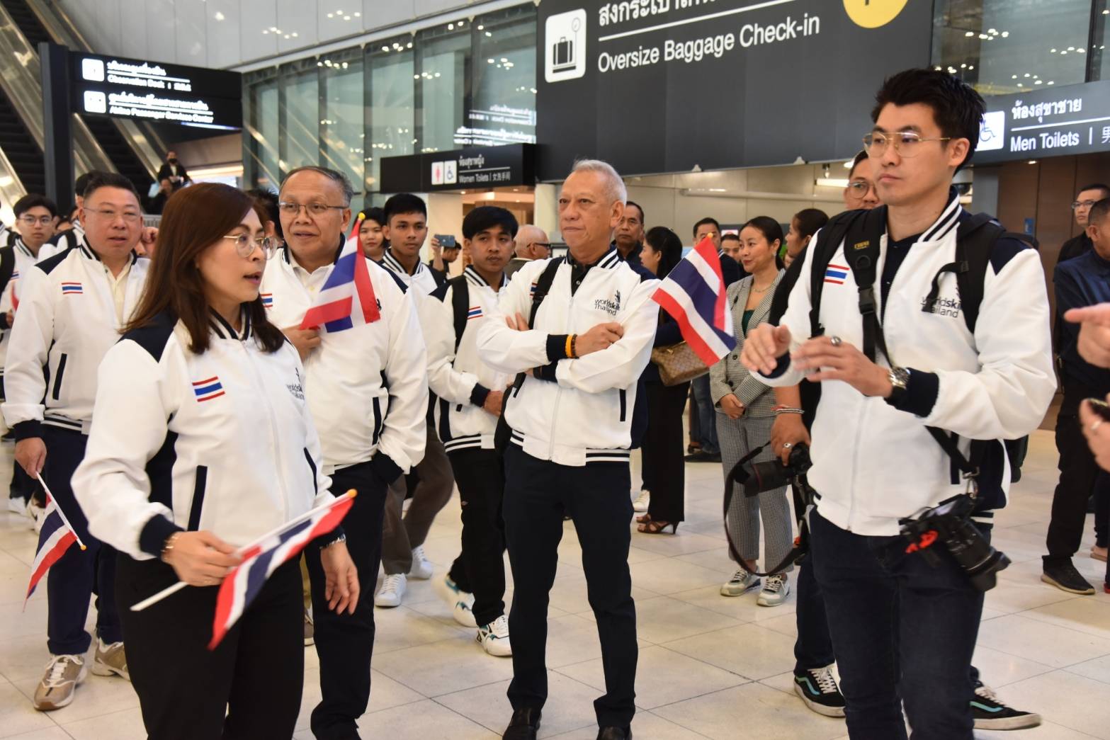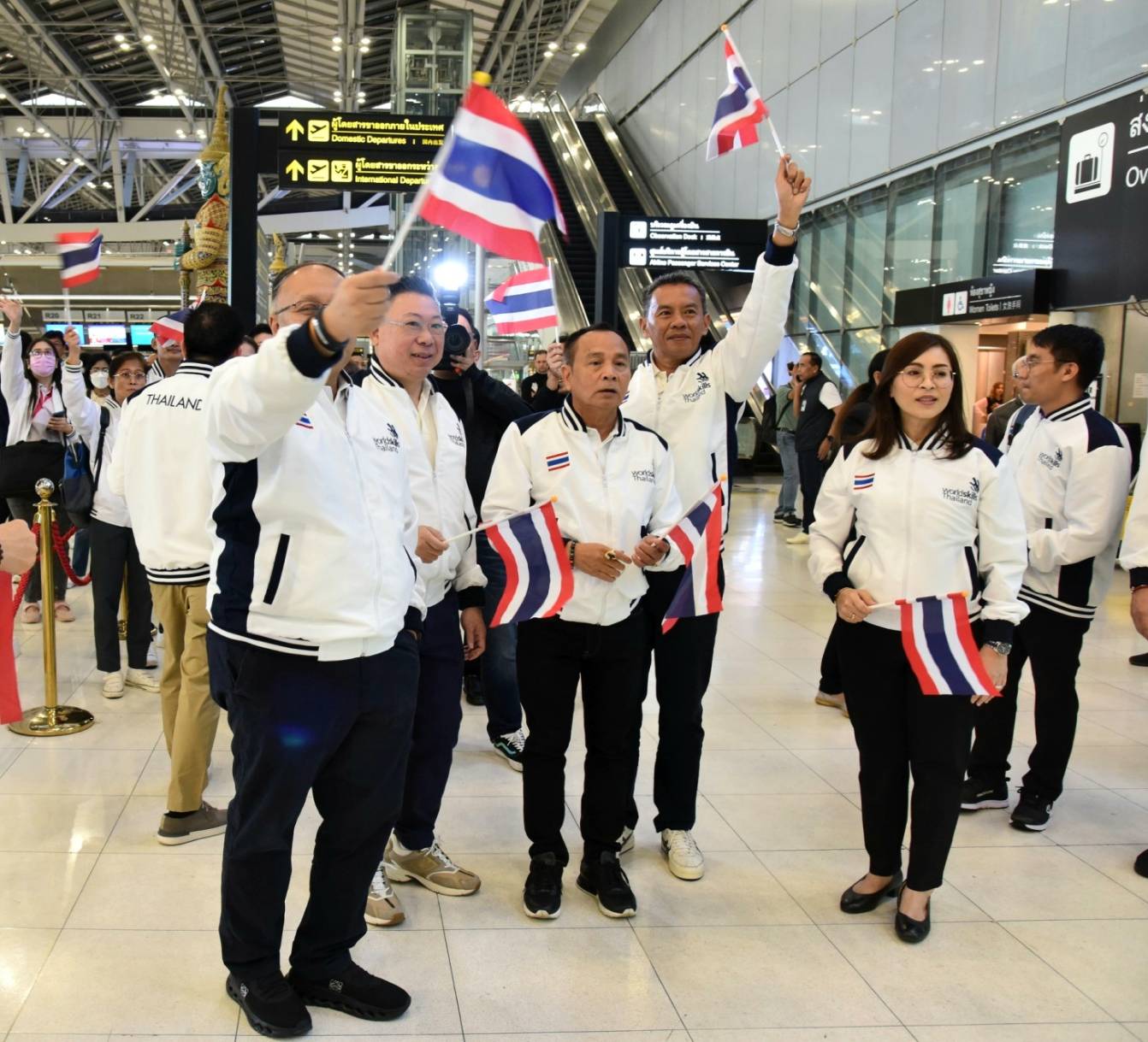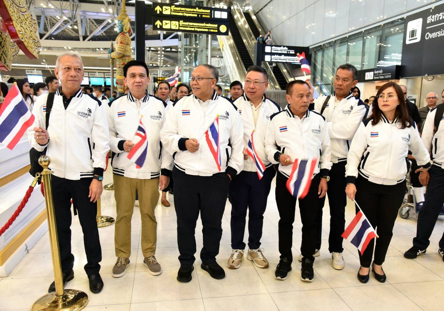 On November 25, 2023, the Labour Minister, Mr. Phiphat Ratchakitprakarn, the Labour Minister, Mr. Phiphat Ratchakitprakarn, the Assistant to the Labour Minister, Mr. Siraphop Duangsodsri, the Labour Minister’s Advisor, Mr. Thanat Thaweekueakulkit, the Secretariat to the Labour Minister, Mr. Aree Krainara, from the Prime Minister’s Secretariat’s Office, performing duties for the Ministry of Labour, Mr. Phuchong Worasri, the Department of Skill Development’s Director-General, Ms. Bubpha Rueangsud, and the Deputy Director-General of the Department of Skill Development, Mr. Pichet Thongphan, as the organization sending youths to compete, joined in sending off nine Thai youth competitors to the 2nd WorldSkills Asia Competition. The occasion took place at Suvarnabhumi Airport, Samut Prakan Province. They are confident that Thai youths can bring back medals to Thailand.