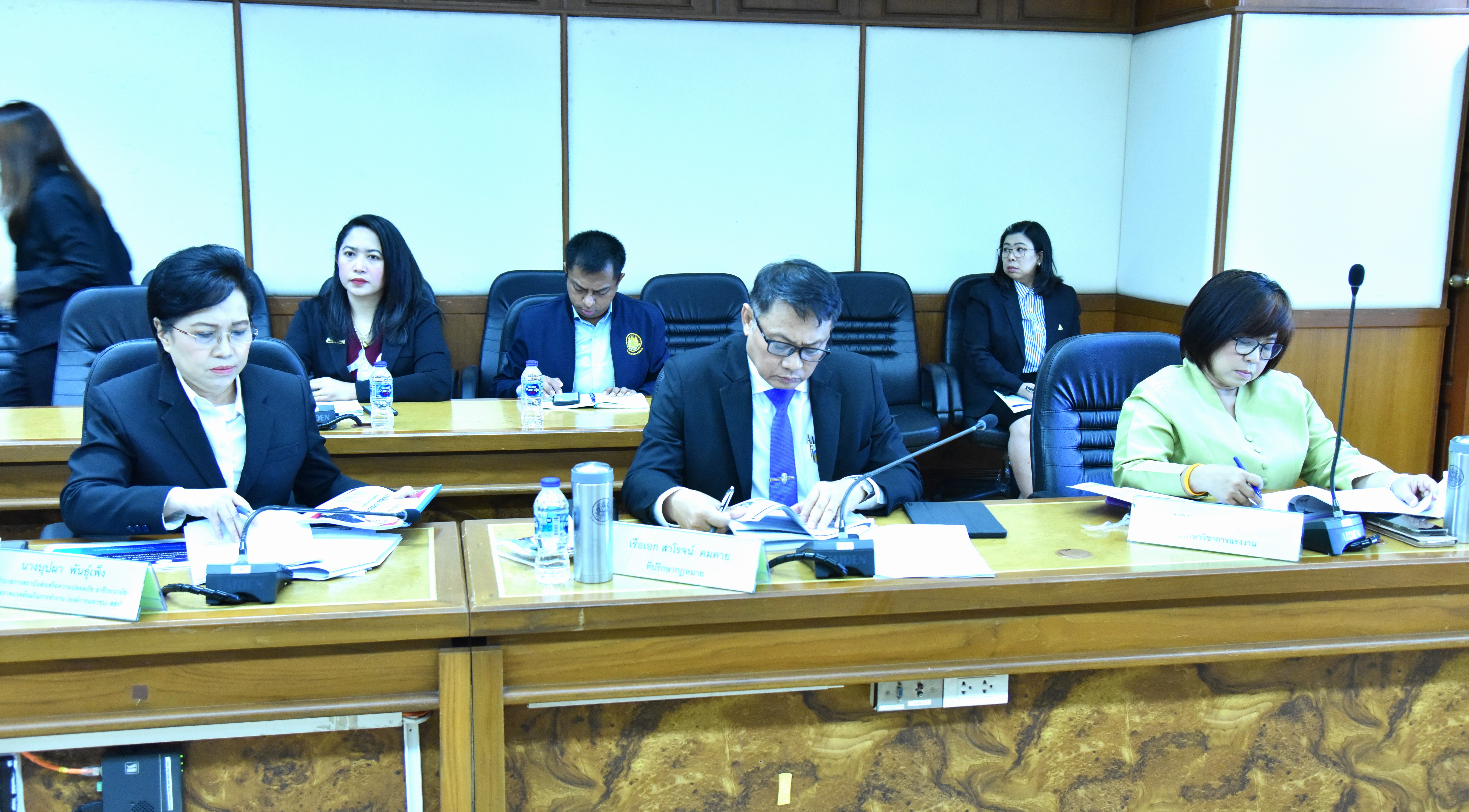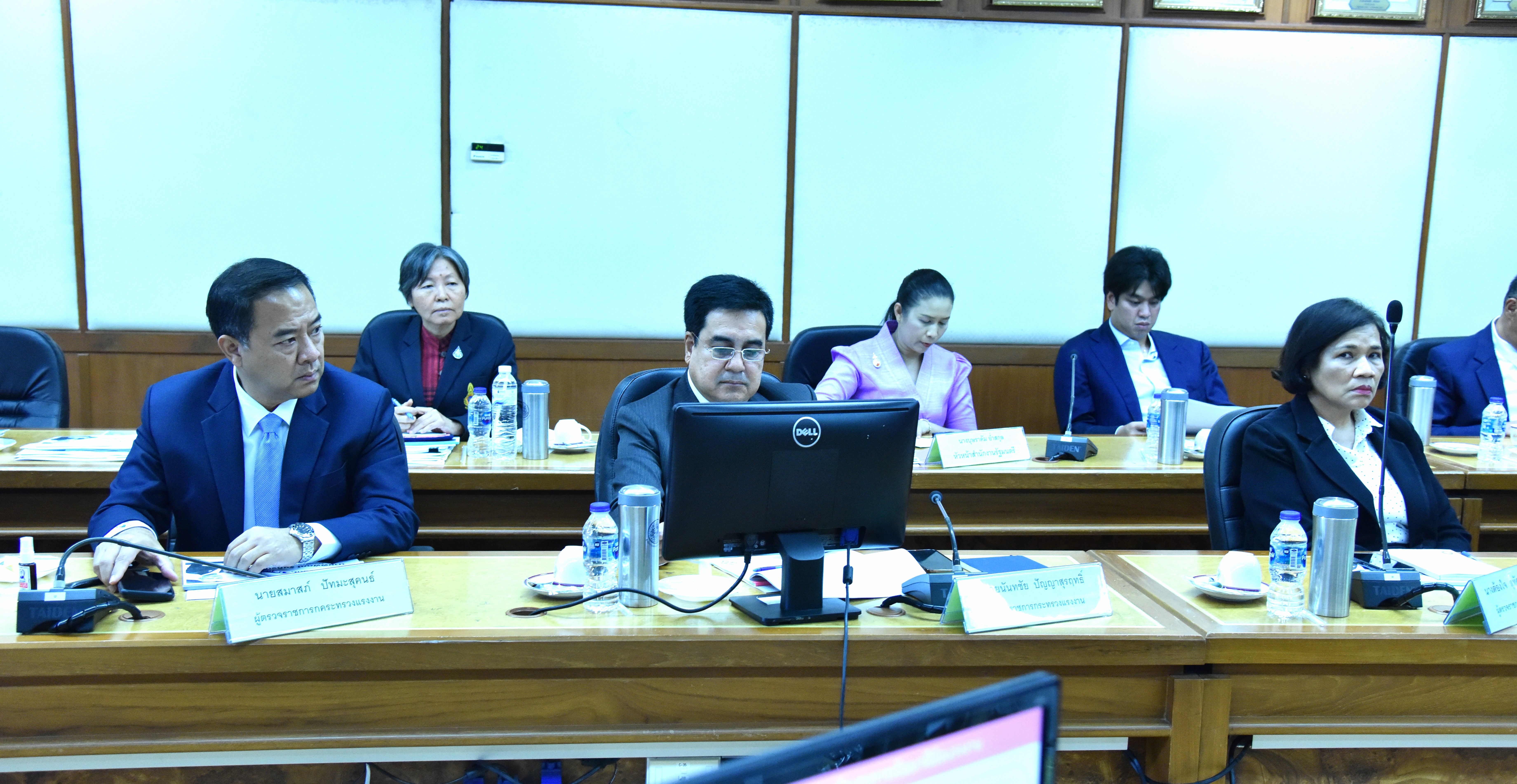 On September 7, 2023, at 10.00 hours, the Labour Minister, Mr. Phiphat Ratchakitprakarn, chaired a meeting with the Ministry of Labour’s senior executives to listen to the presentation on the agencies’ missions under the Ministry of Labour. The Permanent Secretary of Labour, Mr. Boonchob Suttamanaswong, and the Ministry of Labour’s senior executives gave a welcome, introduced themselves, and presented about the missions of each agency. The occasion took place at the Prasong Rananant conference room, 5th floor, Ministry of Labour.