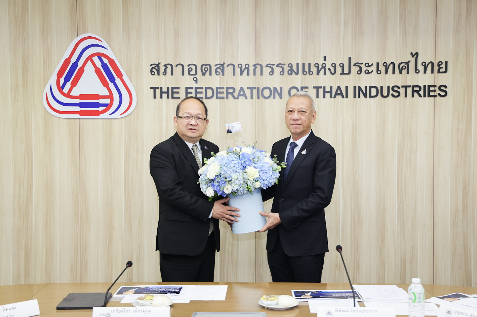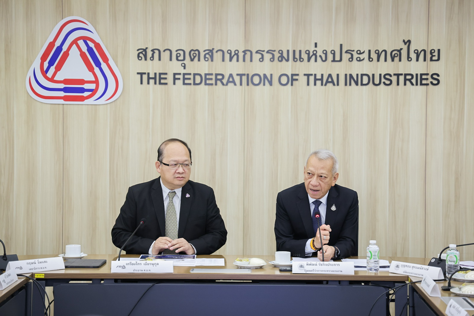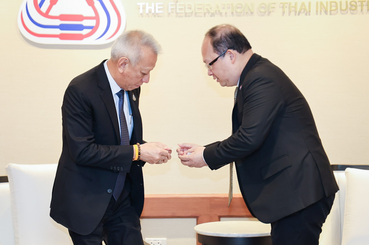 On September 15, 2023, the Labour Minister, Mr. Phiphat Ratchakitprakarn, and the Permanent Secretary of Labour, Mr. Boonchob Suttamanaswong, met with the Federation of Thai Industries to discuss promoting the Ministry of Labour as an economic ministry. The Chairman of the Federation of Thai Industries (F.T.I.), Mr. Kriangkrai Thiennukul, gave a welcome at the Passion Room (802), 8th floor, Federation of Thai Industries.