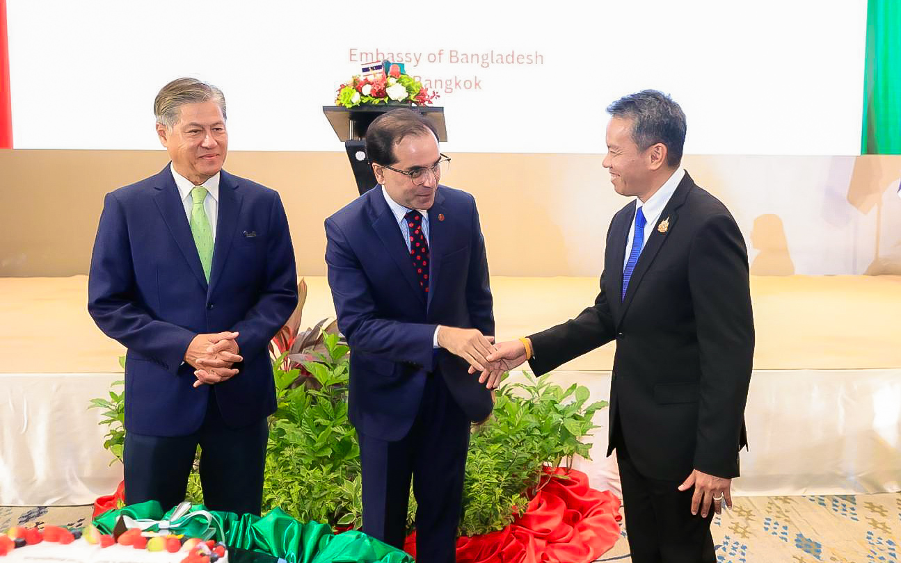 วันที่ 26 มีนาคม 2568 เวลา 18.00 น.นายพิพัฒน์ รัชกิจประการ รัฐมนตรีว่าการกระทรวงแรงงาน มอบหมายให้ นายภุชงค์ วรศรี ประจำสำนักเลขาธิการนายกรัฐมนตรี ปฏิบัติหน้าที่ประจำกระทรวงแรงงาน เป็นผู้แทนมอบแจกันดอกไม้ร่วมแสดงความยินดีเนื่องในโอกาสครบรอบ 54 ปี วันประกาศอิสรภาพและวันชาติสาธารณรัฐประชาชนบังคลาเทศ โดยมี นายศักดินาถ สนธิศักดิ์โยธิน ผู้ช่วยปลัดกระทรวงแรงงาน ผู้บริหารกระทรวงแรงงาน และหน่วยงานที่เกี่ยวข้อง ร่วมเป็นเกียรติ