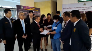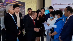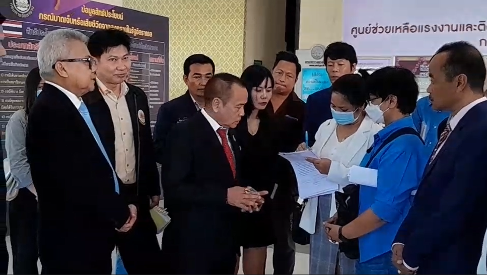 On December 21, 2023, at 09.00 hours, the Labour Minister, Mr. Phiphat Ratchakitprakarn, assigned the Secretariat to the Labour Minister, Mr. Aree Krainara, to receive a letter for the case where employees were terminated without receiving compensation. The occasion took place in the lobby area on the ground floor of the Ministry of Labour.