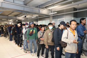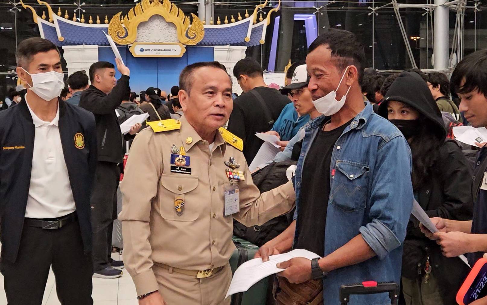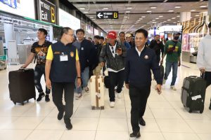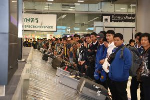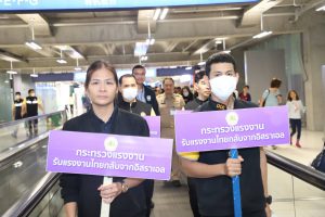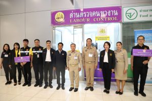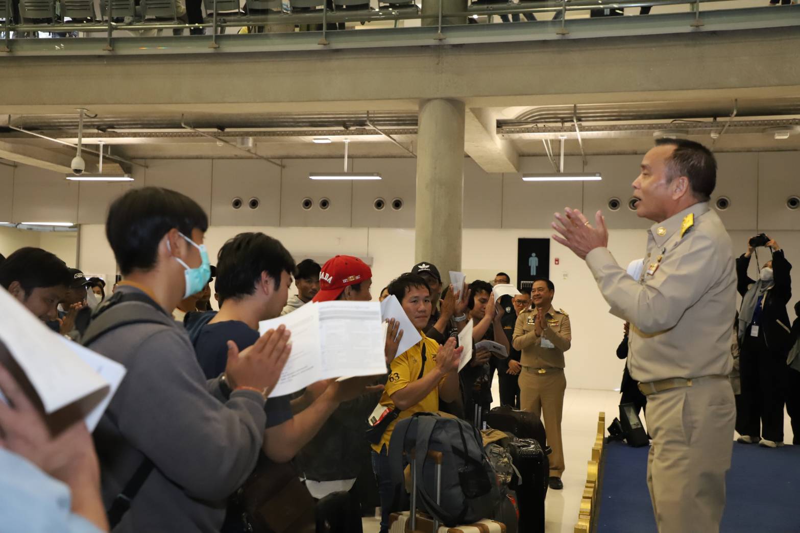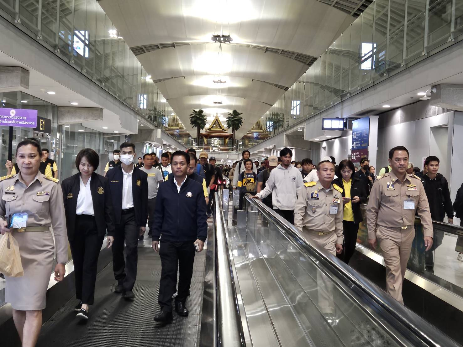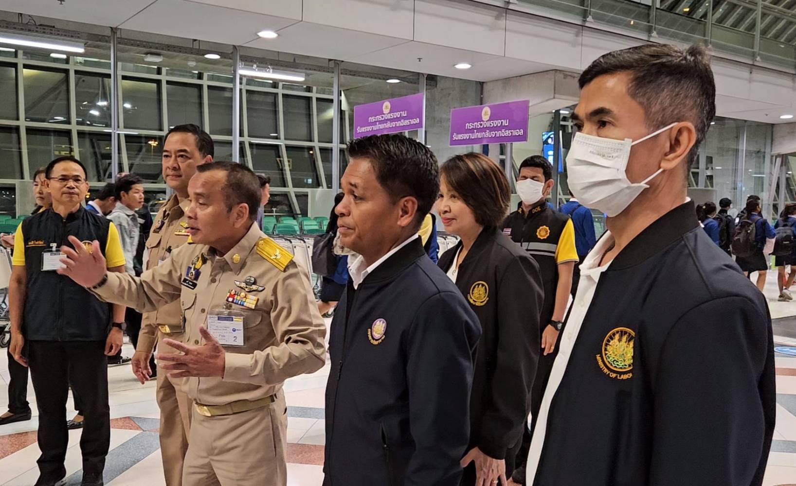 On October 30, 2023, the Labour Minister, Mr. Phiphat Ratchakitprakarn assigned the Secretariat to the Labour Minister, Mr. Aree Krainara, the Ministry of Labour’s Inspector-General, Mr. Samat Pattamasukon, the Department of Employment’s Inspector-General Mr. Phatharawut Pursalah, the Department of Skill Development’s Inspector-General, Ms. Apakorn Wongkhetkon, the Department of Labour Protection and Welfare’s Inspector-General, Mr. Sompong Kloyklaew, executives, civil servants, and relevant officers, to welcome and support 307 Thai workers affected by the unrest in Israel who reported their wish to return to Thailand. The group arrived at Suvarnabhumi Airport, Samut Prakan Province, at 7.40 hours on EL AL Airlines, flight LY083.