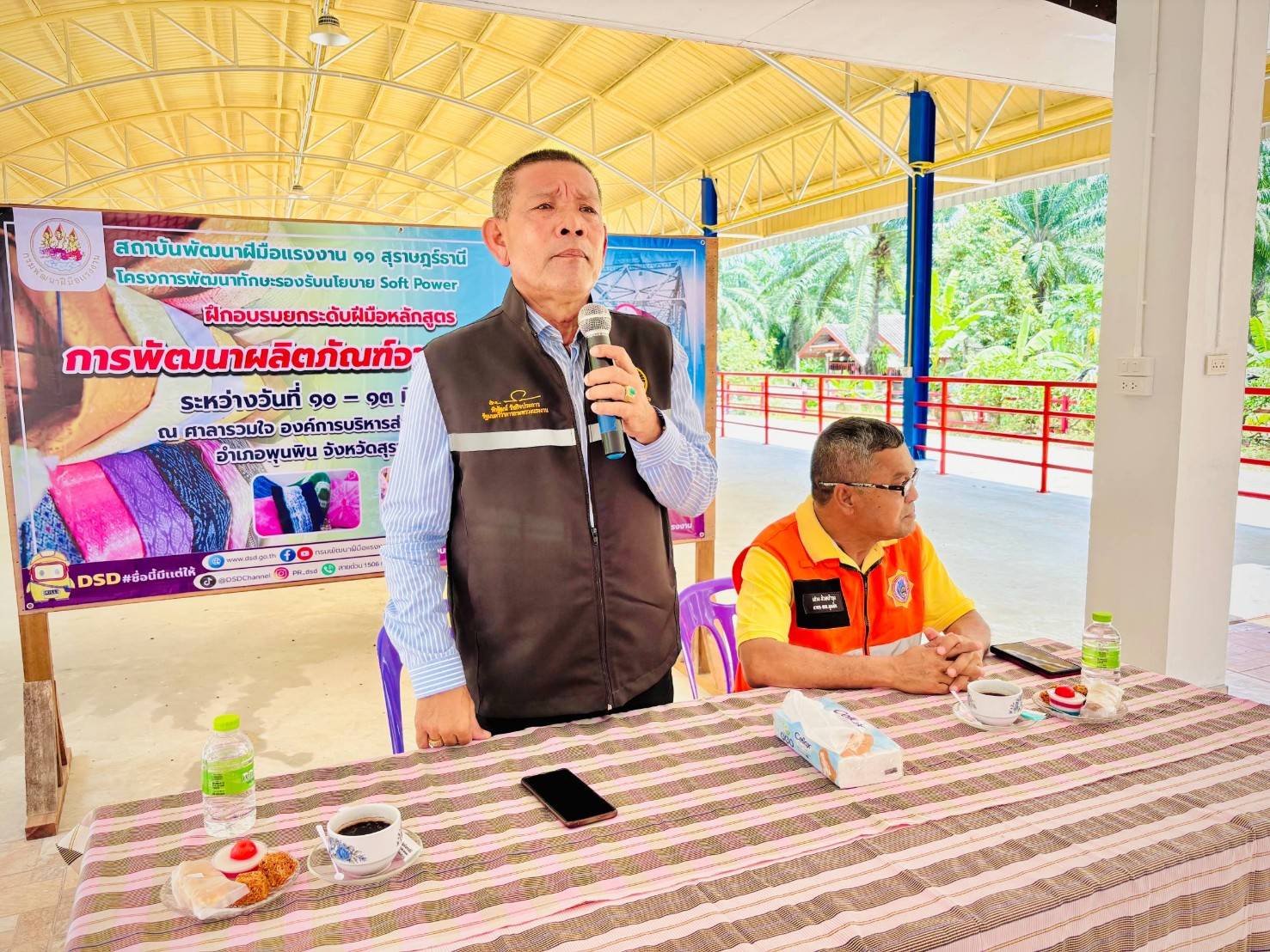 เมื่อวันที่ 11 มีนาคม 2568 นายพิพัฒน์ รัชกิจประการ รัฐมนตรีว่าการกระทรวงแรงงาน มอบหมายให้ นายภูมิพัฒน์ เหมือนจันทร์ โฆษกกระทรวงแรงงาน ตรวจเยี่ยมพบปะให้กำลังใจผู้เข้ารับการฝึกอบรมโครงการเพิ่มทักษะแรงงานอิสระและกลุ่มเป้าหมายเฉพาะเพื่อเพิ่มโอกาสในการประกอบอาชีพ ภายใต้นโยบาย “หนึ่งตำบล หนึ่งกลุ่มอาชีพอิสระ” ในหลักสูตรการพัฒนาผลิตภัณฑ์จากผ้าพื้นถิ่น โดยมี นางสมพร ดวงแก้ว ผู้อำนวยการสถาบันพัฒนาฝีมือแรงงาน 11 สุราษฎร์ธานี นายเชวง ช่วยบำรุง นายกองค์การบริหารส่วนตำบลพุนพิน และผู้เข้ารับการฝึก ร่วมให้การต้อนรับ สำหรับโครงการดังกล่าวจัดขึ้นโดยสถาบันพัฒนาฝีมือแรงงาน 11 สุราษฎร์ธานี ได้ประสานความร่วมมือกับกลุ่มทอผ้าขาวม้าตำบลพุนพิน ณ ศาลารวมใจ องค์การบริหารส่วนตำบลพุนพิน ตำบลพุนพิน อำเภอพุนพิน จังหวัดสุราษฎร์ธานี
