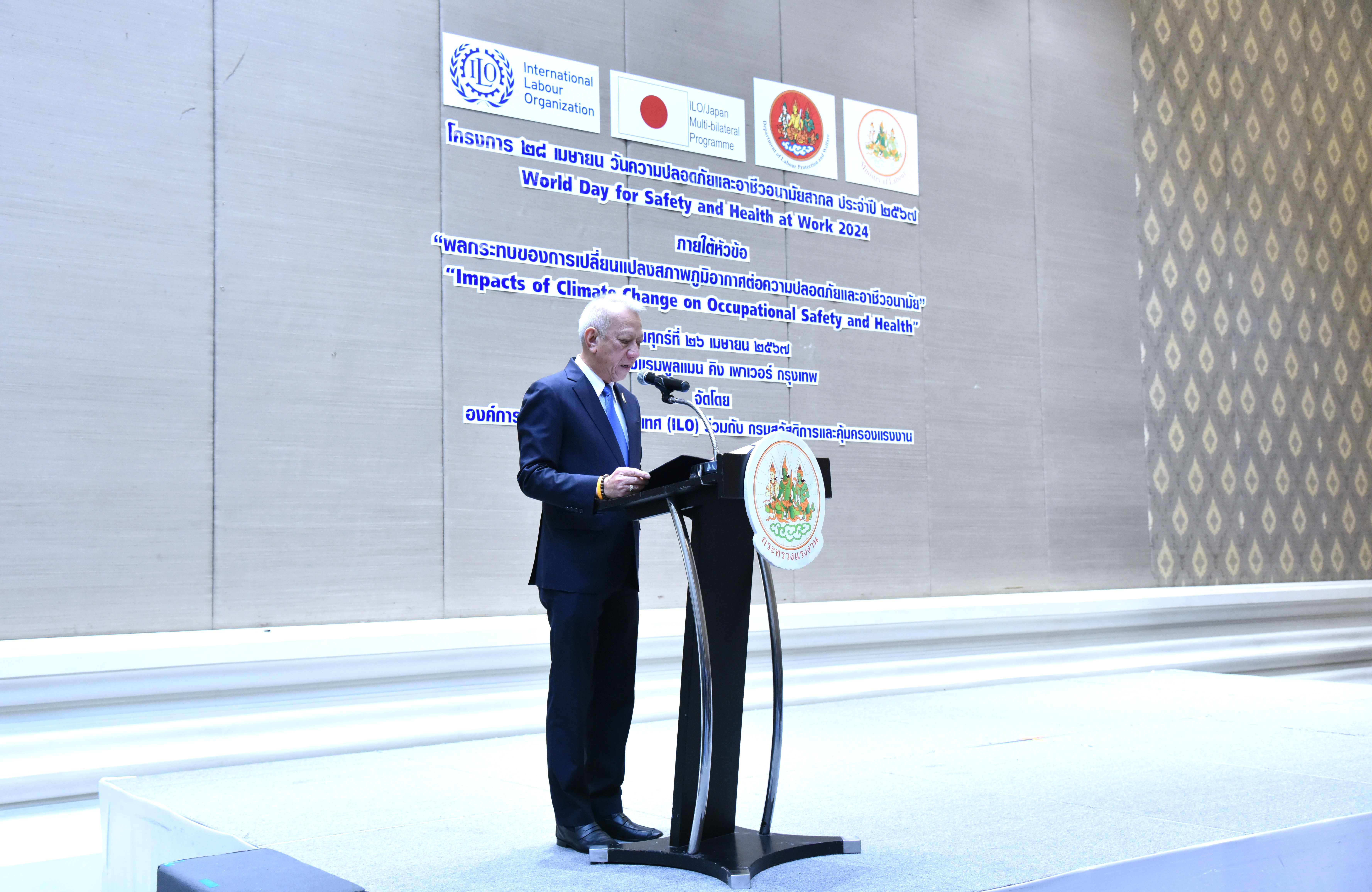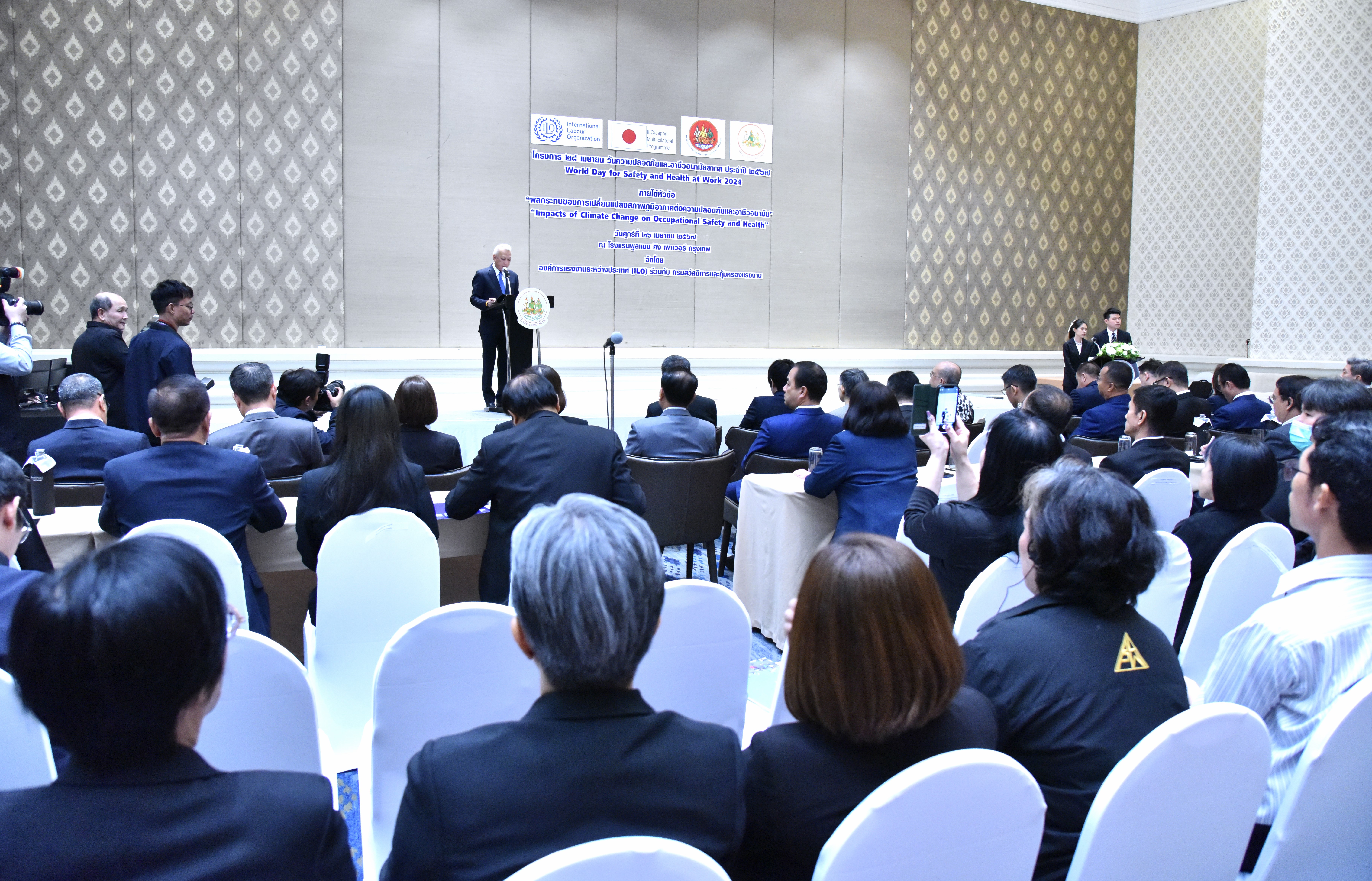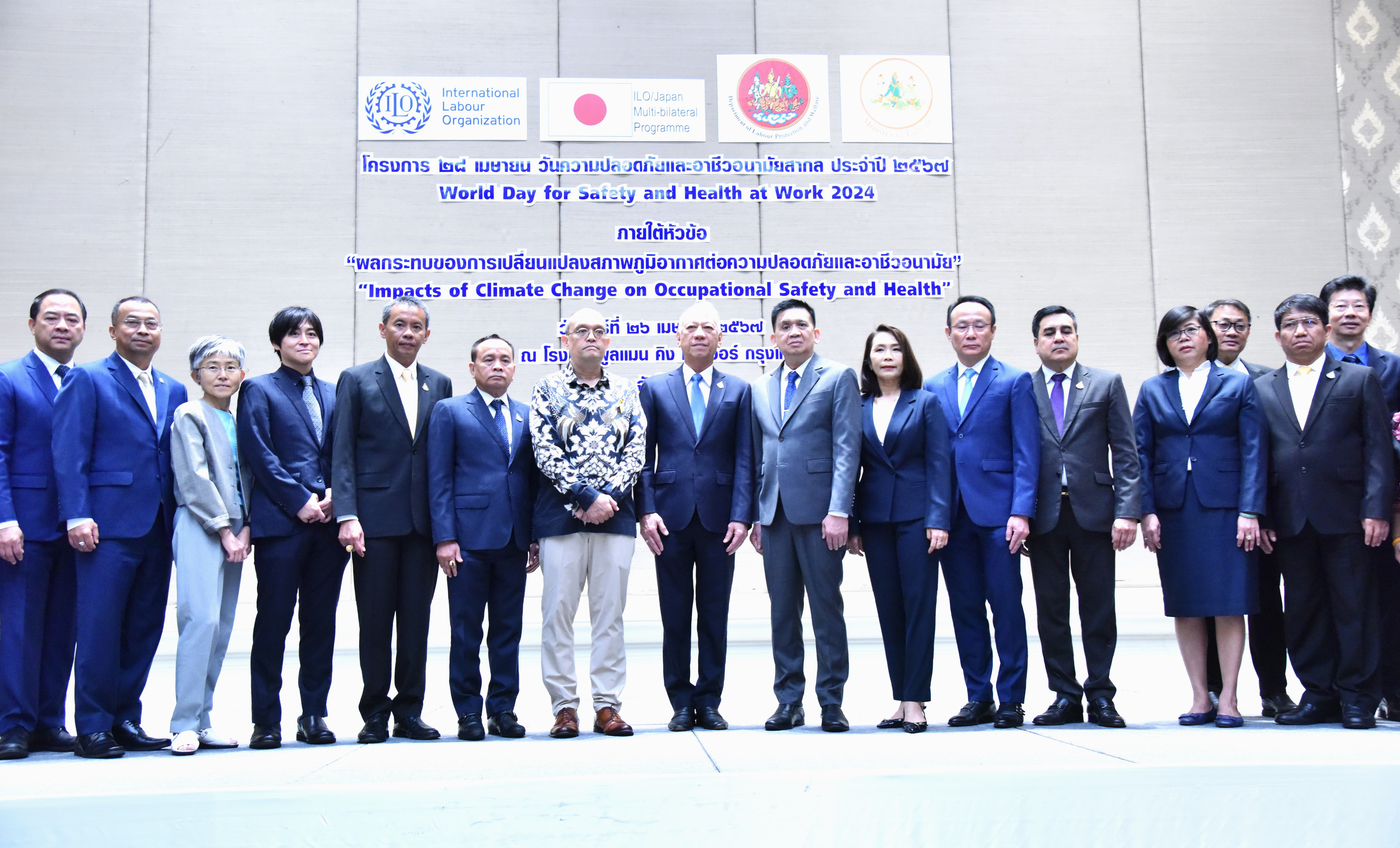 On April 26, 2024, the Labour Minister, Mr. Phiphat Ratchakitprakarn, presided over the opening of the International Occupational Health and Safety Day 2024. The Deputy Director of the International Labor Office for Thailand, Cambodia, and Laos, Mr. Octavianto Pasaribu, gave a welcome. The Secretariat to the Labour Minister, Mr. Aree Krainara, from the Prime Minister’s Secretariat’s Office performing duties for the Ministry of Labour, Mr. Phuchong Worasri, the Permanent Secretary of Labour, Mr. Pairoj Chotikasathien, the Deputy Permanent Secretaries of Labour, Mr. Wannarat Srisuksai, and Lieutenant Saroj Komkhai, together with executives from the Ministry of Labour joined the occasion at the Pullman King Power Hotel, Bangkok. The event was organized by the Department of Labour Protection and Welfare in collaboration with the International Labour Organization. The goal of the event is to enable employers and workers to understand and prepare for global climate changes, to raise standards in supervision, and to determine preventive measures for improving the working environment and reducing work-related hazards and diseases.