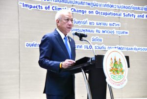 The Department of Labour Protection and Welare’s Director-General, Mrs. Sopa Kiatniracha, added that Today’s event was organized because the International Labour Organization (ILO) has designated April 28 of every year as the Occupational Health and Safety Day. The day aims to campaign and promote the idea of creating and developing a sustainable occupational health and safety culture under the concept of “Impacts of Climate Change on Occupational Health and Safety” with the aim of giving employers and workers an understanding and preparation for global climate change. This includes addressing the impacts of hazardous climate change in the workplace. This event is a joint discussion between experts, representatives of employers, workers, and relevant government agencies to create understanding and prepare for global climate change, leading to raising the level of basic rights of the workforce to be safe from danger in a sustainable way.