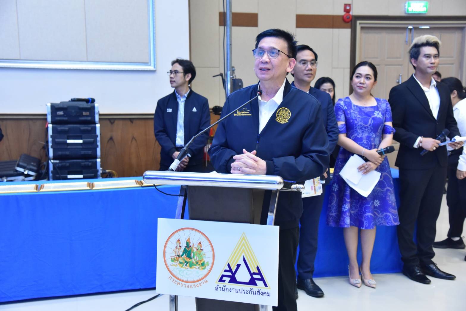 On November 22, 2023, at 13.00 hours, the Labour Minister, Mr. Phiphat Ratchakitprakarn, visited the Krabi Provincial Administrative Organization School in Krabi Province to chair the opening of the Social Security Section 40 Public Relations Project to the Social Security Network, Class 4. The Labour Minister’s Advisor, Mr. Thanat Thaweekueakulkit, the Secretariat to the Labour Minister, Mr. Aree Krainara, and from the Prime Minister’s Secretariat’s Office, performing duties for the Ministry of Labour, Mr. Phuchong Worasri joined the ceremony. The Permanent Secretary of Labour, Mr. Pairoj Chotiksetian, reported on the event’s objectives. The Deputy Governor of Krabi Province, Mr. Somchai Hanpakdeepatima, gave a welcome. The Social Security Office’s Secretary-General, Mr. Boonsong Thapchaiyut, the Ministry of Labour’s Inspector-General, Mr. Nantachai Panyasurarit, the Ministry of Labour’s executives, the Social Security Office’s officials, social security networks, and insured persons in the area gave a welcome.