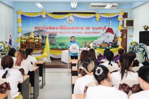 นายอารี กล่าวต่อไปว่า ในวันนี้ นอกจากมอบวุฒิบัตรให้แก่ผู้ผ่านการฝึกอบรมหลักสูตร การนวดหน้าเพื่อความงาม โครงการพัฒนาศักยภาพแรงงานรองรับการขับเคลื่อนอุตสาหกรรมท่องเที่ยวคุณค่าสูง ให้แก่ผู้ผ่านการฝึกอบรม จำนวน 24 คน ซึ่งอบรมระหว่างวันที่ 2 – 6 กันยายน 2567 นอกจากนี้ ยังได้เยี่ยมชมนิทรรศการ สื่อการสอน หลักสูตร ช่างติดตั้งและบำรุงรักษาระบบเซลล์แสงอาทิตย์ หลักสูตรช่างไฟฟ้าภายในอาคาร และหลักสูตรผู้ประกอบการธุรกิจเครื่องดื่ม และการสาธิตนวดหน้า กิจกรรมดังกล่าวดำเนินการโดยสถาบันพัฒนาฝีมือแรงงาน 26 นนทบุรี ซึ่งการยกระดับทักษะแรงงานให้เป็นแรงงานคุณภาพเป็นอีกกลไกสำคัญในการขับเคลื่อนเศรษฐกิจการท่องเที่ยวของไทย ช่วยให้ประเทศมีรายได้เพิ่มขึ้น โดยเฉพาะการอบรมหลักสูตรด้านนวด-สปา อาหาร รวมถึงภาษาต่างประเทศซึ่งเกี่ยวเนื่องและสำคัญยิ่งต่ออุตสาหกรรมการท่องเที่ยวที่มีผลิตภาพสูง ที่จะช่วยกระตุ้นเศรษฐกิจ และสร้างรายได้ให้ประเทศต่อไป