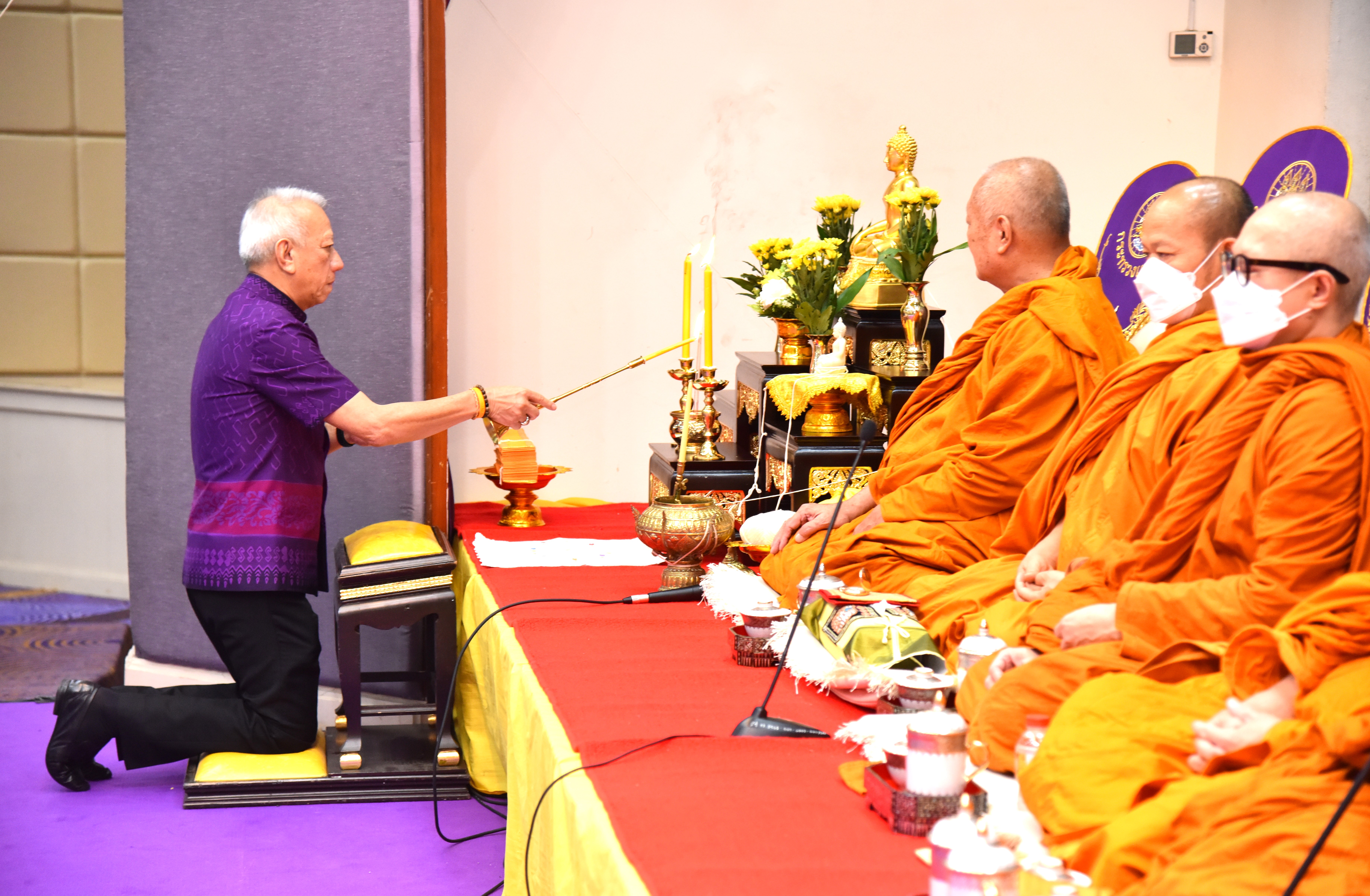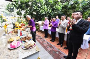 On September 22, 2023, the Labour Minister, Mr. Phiphat Ratchakitprakarn, presided over the ceremony of food offerings to 10 monks to make merit for former executives, civil servants, and officials of the Ministry of Labour who have passed away and chant Buddhist mantras for good fortune. The ceremony was on the Ministry of Labour’s 30th anniversary of its founding on September 23, 2023. The Labour Minister’s Advisor, Mr. Thanat Thaweekueakulkit, the Labour Minister’s Secretariat, Mr. Aree Krainara, the Permanent Secretary of Labour, Mr. Boonchob Suttamanaswong, senior executives, civil servants, and officials from agencies under the Ministry of Labour attended the ceremony at the Ministry of Labour’s conference room, 5th floor, Ministry of Labour.
