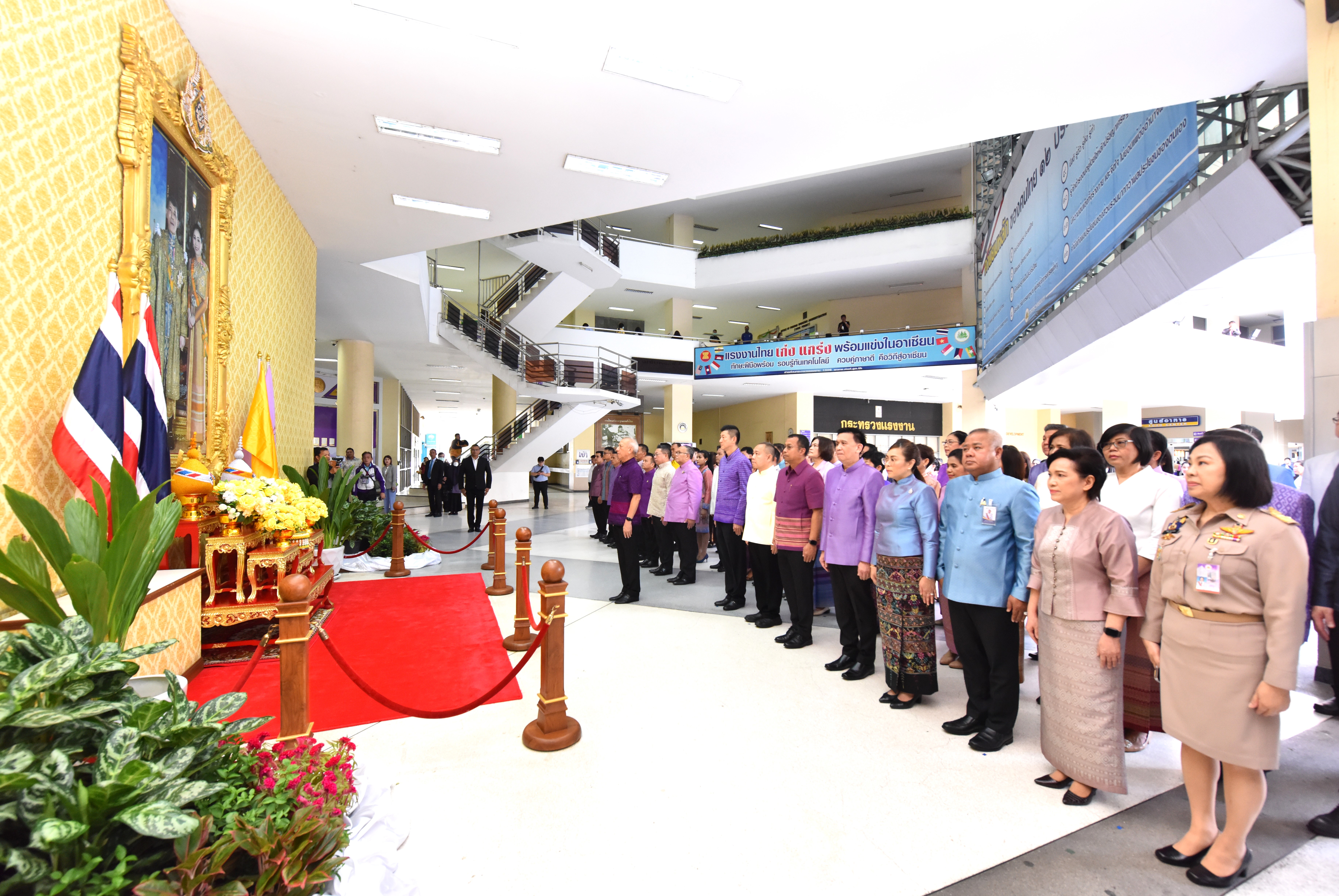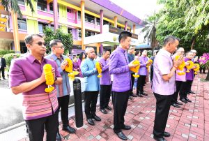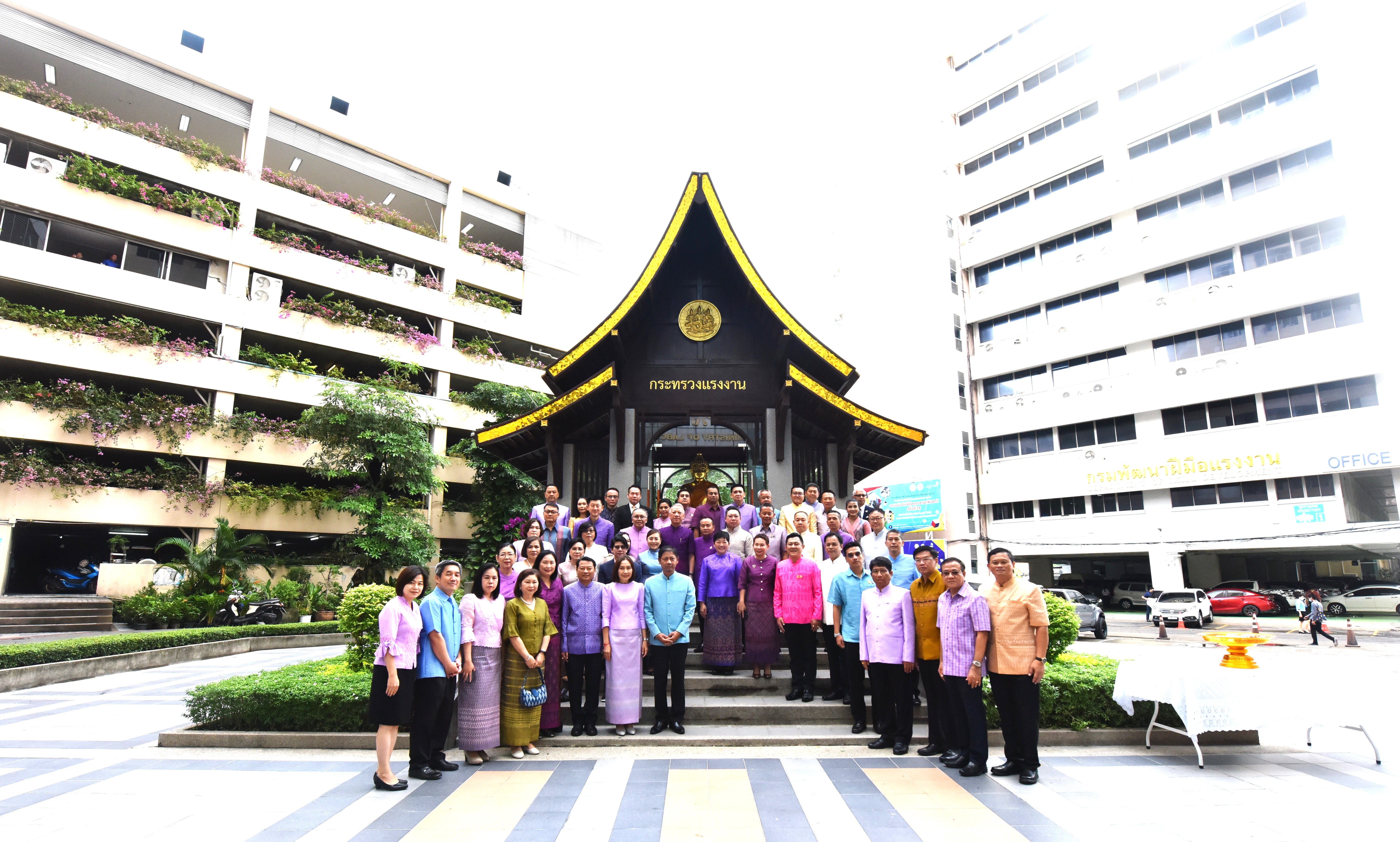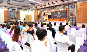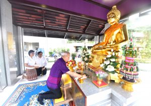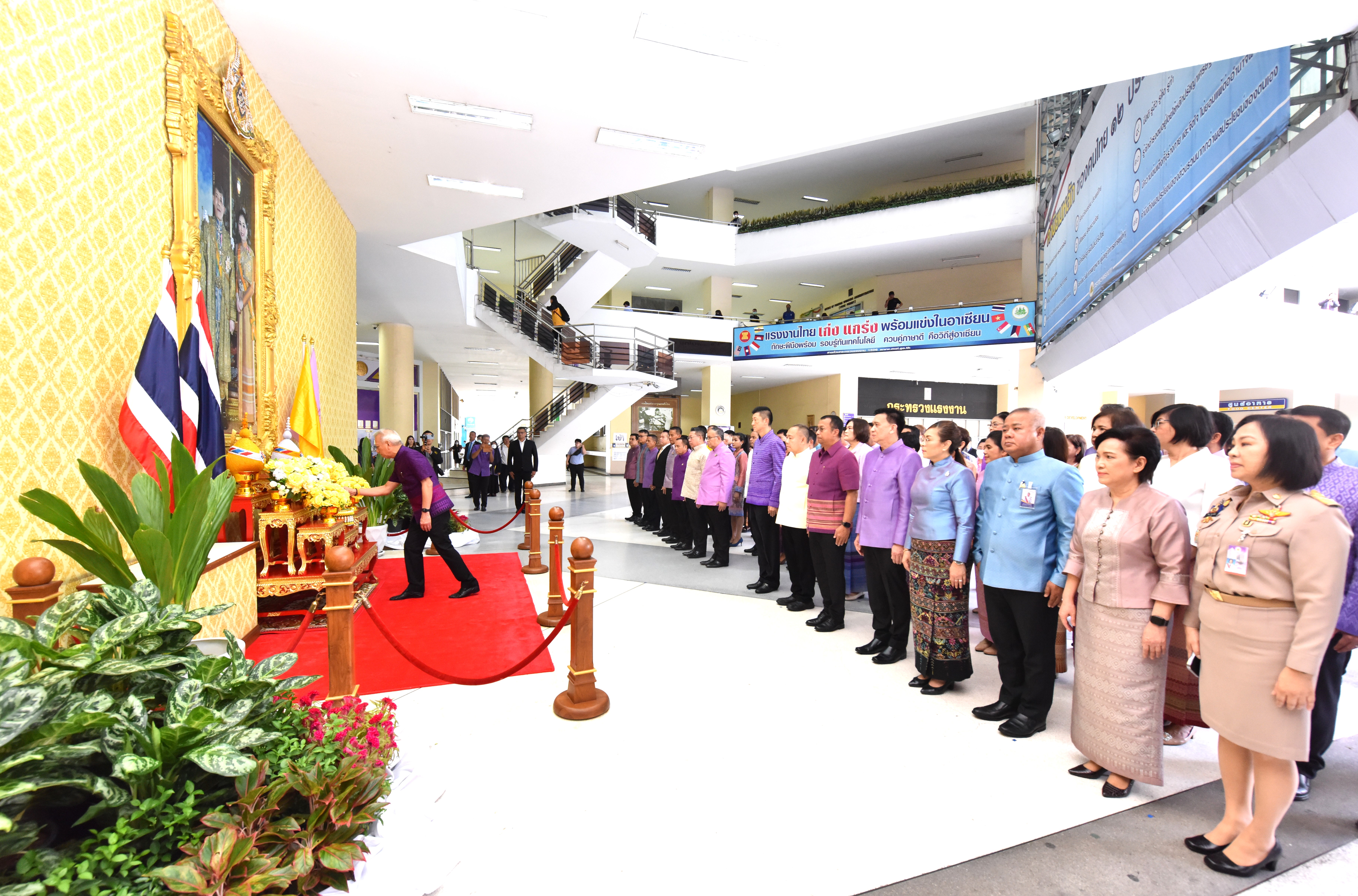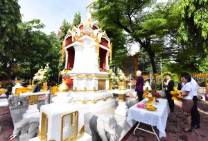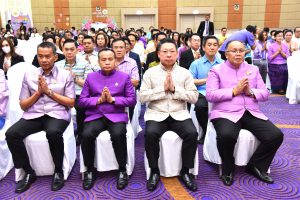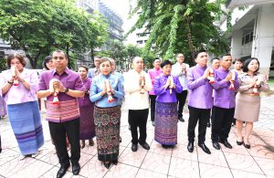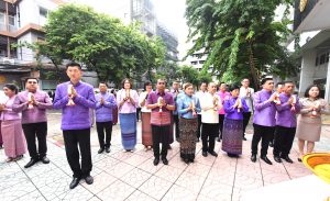 Then, the Labour Minister presided over the ceremony to pay homage to the sacred objects of the Ministry of Labour, including Phra Phut Sutthitham Bophit, Phra Phut Chinnarat, Sam Phra Phum Chaimongkol, and Thao Mahaprom Thewarit. The Labour Minister then led the executive team to pay respects in front of the portrait of His Majesty the King on the anniversary of the Ministry of Labour’s founding in 2023. The Ministry of Labour’s senior executives, civil servants, and officials of subordinate agencies also participated in the occasion at the Ministry of Labour.