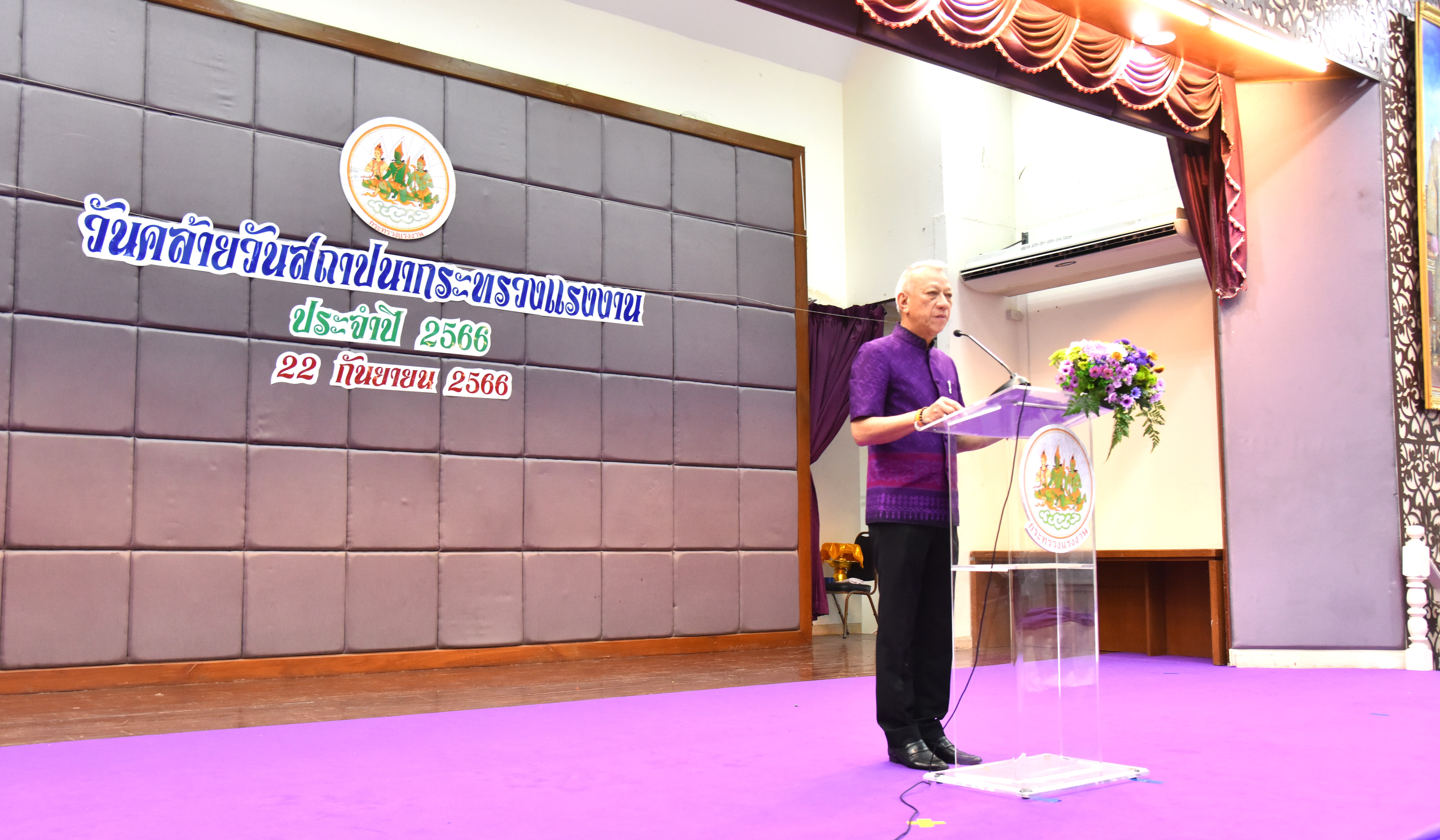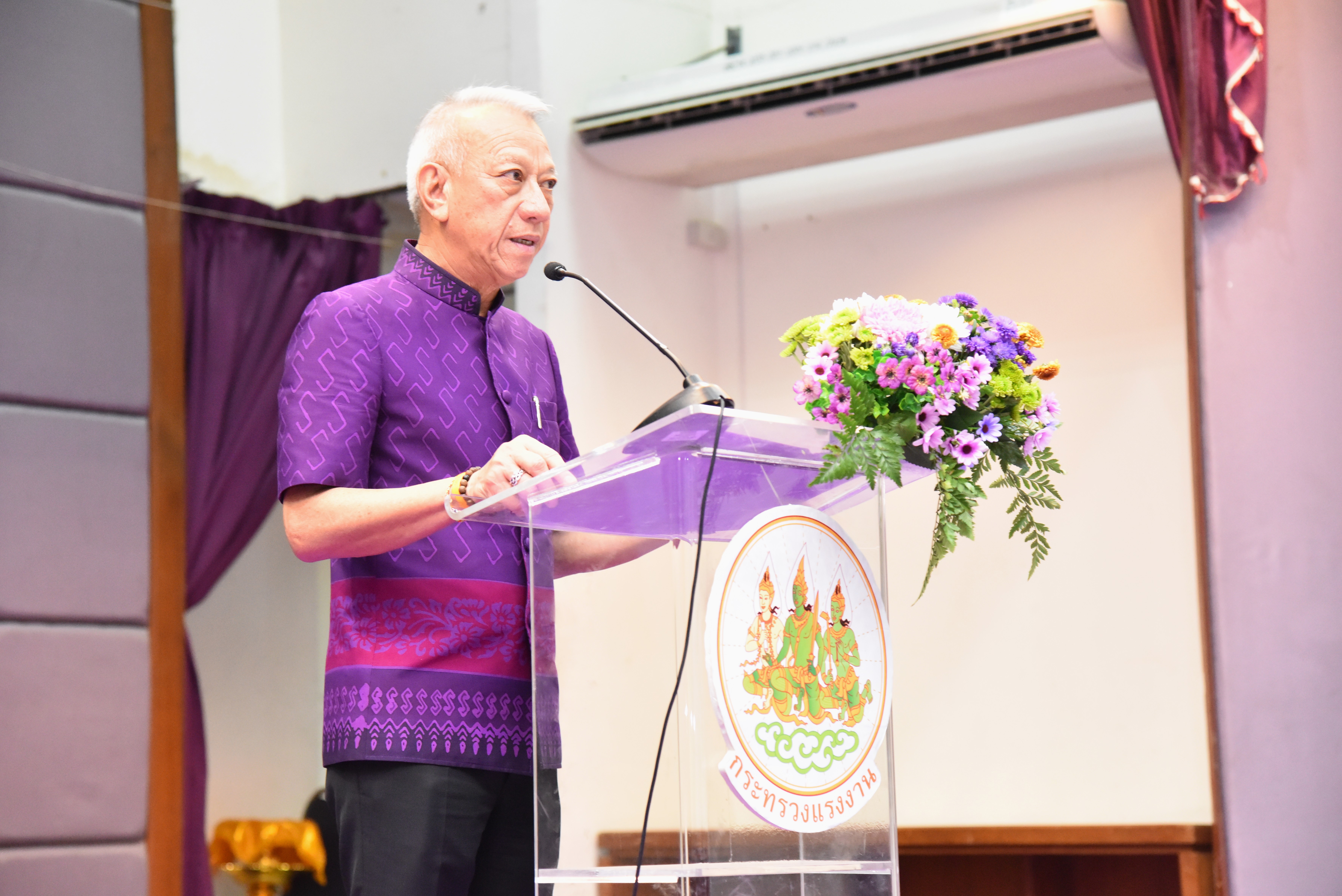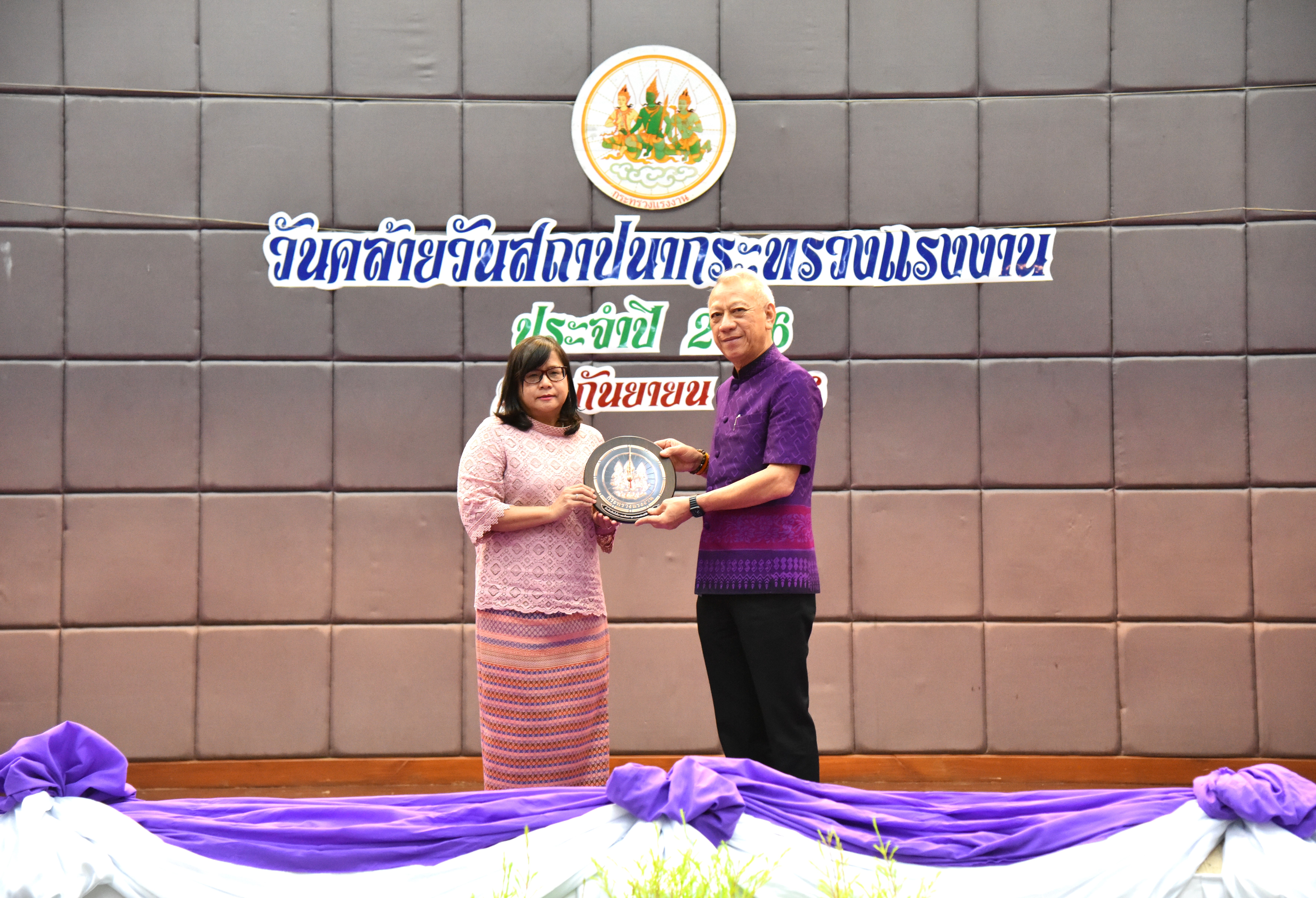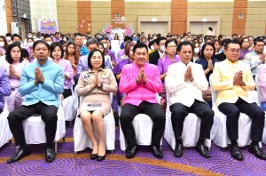 Then, the Labour Minister presided over the ceremony to pay homage to the sacred objects of the Ministry of Labour, including Phra Phut Sutthitham Bophit, Phra Phut Chinnarat, Sam Phra Phum Chaimongkol, and Thao Mahaprom Thewarit. The Labour Minister then led the executive team to pay respects in front of the portrait of His Majesty the King on the anniversary of the Ministry of Labour’s founding in 2023. The Ministry of Labour’s senior executives, civil servants, and officials of subordinate agencies also participated in the occasion at the Ministry of Labour.