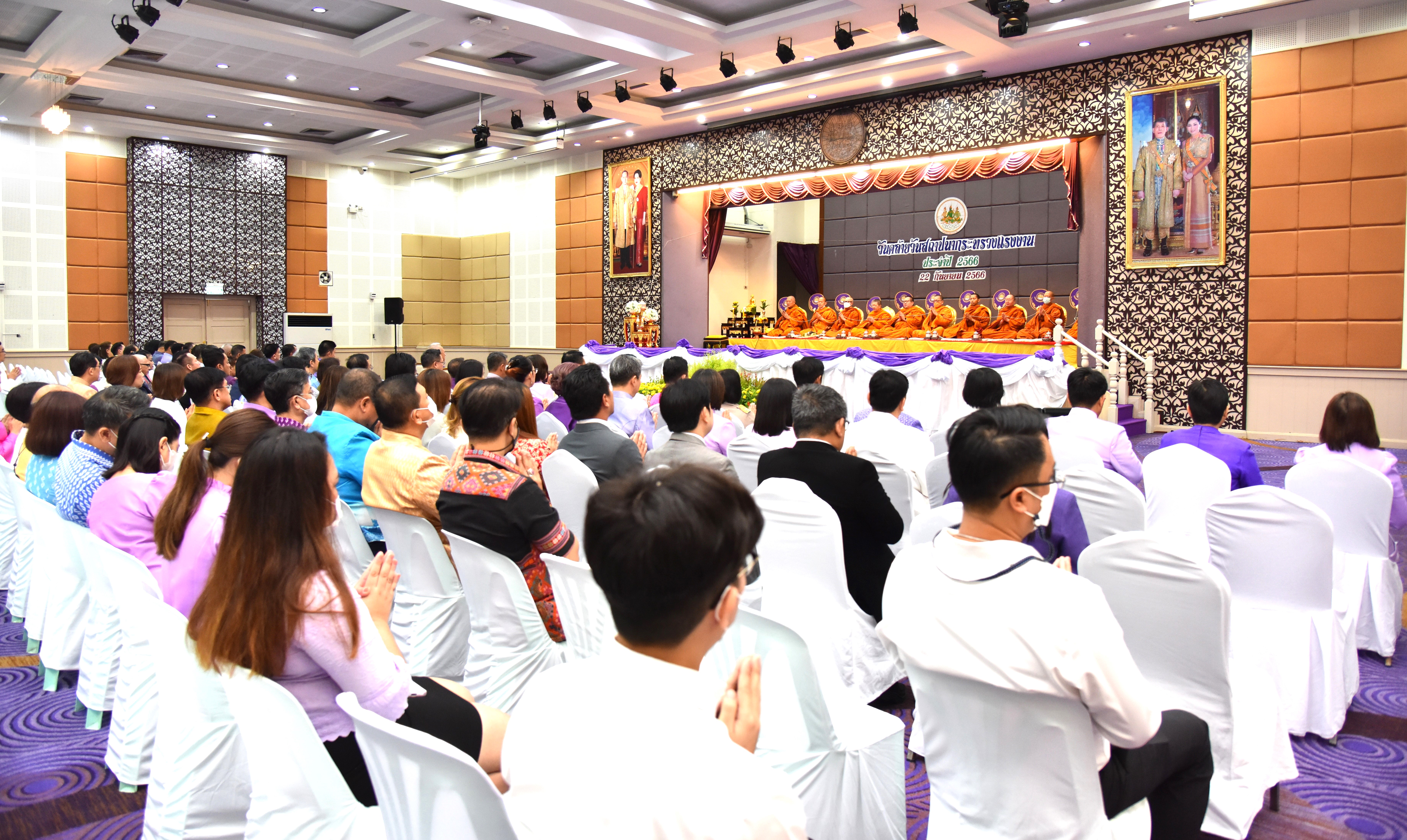 วันที่ 22 กันยายน 2566 นายพิพัฒน์ รัชกิจประการ รัฐมนตรีว่าการกระทรวงแรงงาน เป็นประธานในพิธีถวายภัตตาหารเช้าแด่พระสงฆ์ จำนวน 10 รูป เพื่อบำเพ็ญกุศลให้กับอดีตผู้บริหาร ข้าราชการ และเจ้าหน้าที่กระทรวงแรงงานที่ล่วงลับ และเจริญพระพุทธมนต์ เพื่อความเป็นสิริมงคล เนื่องในโอกาสวันคล้ายวันสถาปนากระทรวงแรงงาน วันที่ 23 กันยายน 2566 ครบรอบ 30 ปี โดยมี นายธนัสถ์ ทวีเกื้อกูลกิจ ที่ปรึกษารัฐมนตรีว่าการกระทรวงแรงงาน นายอารี ไกรนรา เลขานุการรัฐมนตรีว่าการกระทรวงแรงงาน นายบุญชอบ สุทธมนัสวงษ์ ปลัดกระทรวงแรงงาน พร้อมด้วยผู้บริหารระดับสูง ข้าราชการเจ้าหน้าที่หน่วยงานในสังกัดกระทรวงแรงงาน เข้าร่วม ณ ห้องประชุมกระทรวงแรงงาน ชั้น 5 อาคารกระทรวงแรงงาน