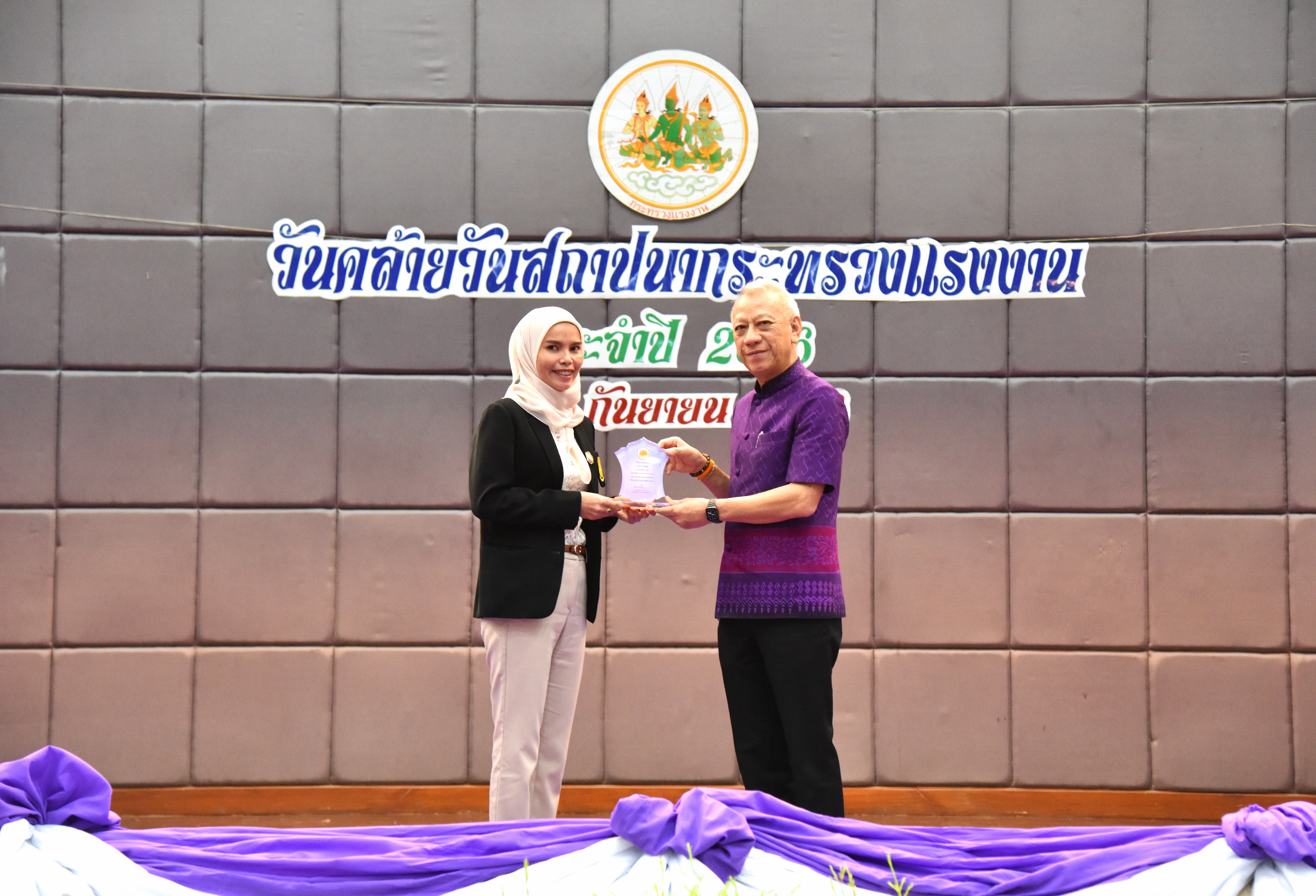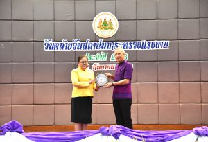 Mr. Phiphat continued congratulating the labour volunteers, and graduates selected to be volunteer workers and the outstanding labour graduates in 2023, all volunteers who dedicate themselves to society. He asked that they continue to serve as a good role model for other labour volunteers and expressed his gratitude on behalf of the Ministry of Labour to all the labour volunteers and graduates who have worked together to perform the missions of the Ministry of Labour. He commended the staff working at the Joint Service Center of the Ministry of Labour, who received award plaques and certificates. Such awards are considered to build morale among officials. It is also upgrading the Ministry of Labour’s shared service centers to meet the standards of shared service centers and public service counters of the Office of the Civil Service Commission (OCSC) and upgrading the quality of the center’s public service facilities, ensuring the Ministry of Labour has the same standards. This will facilitate and increase the efficiency of providing services to citizens who come into contact with government services. For all civil servants and regular employees who retire from government service in 2023, he said that they have been in government service until their retirement indicates that they have performed their duties completely and are worthy of praise. Such people deserve to be remembered and recognized as role models for the next generation of civil servants to use as a guideline in performing their duties to benefit the nation and the people.