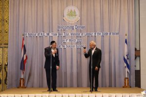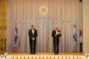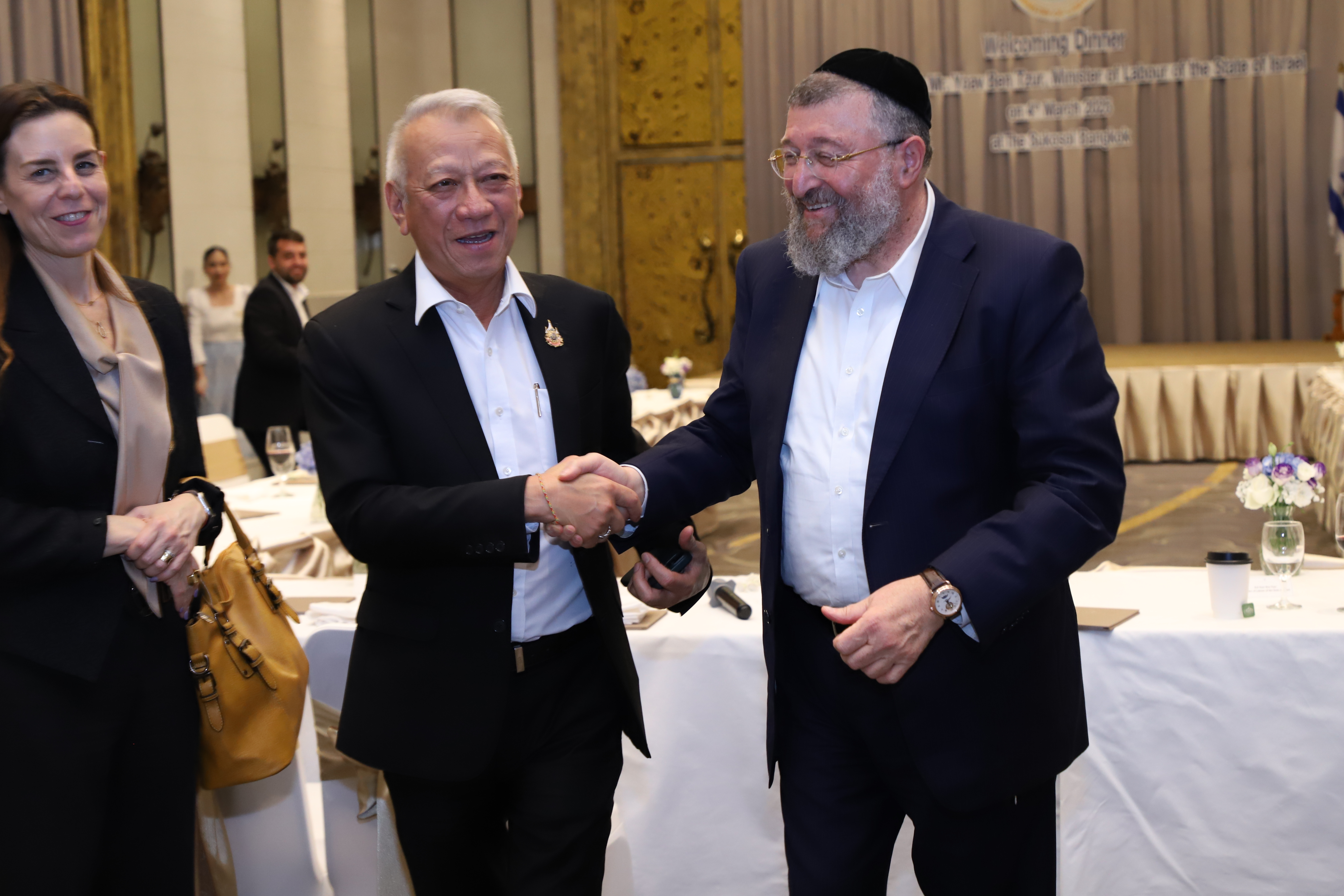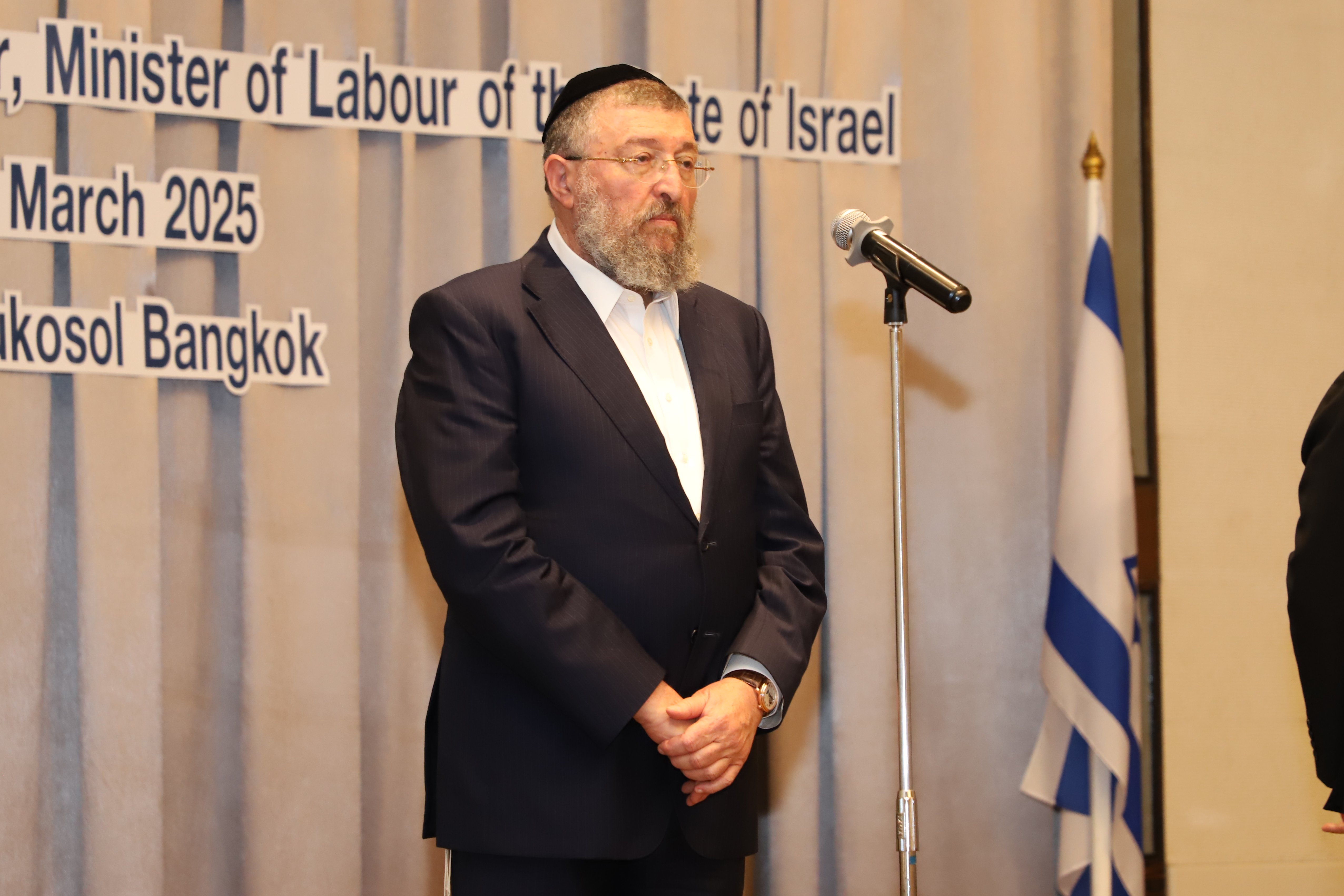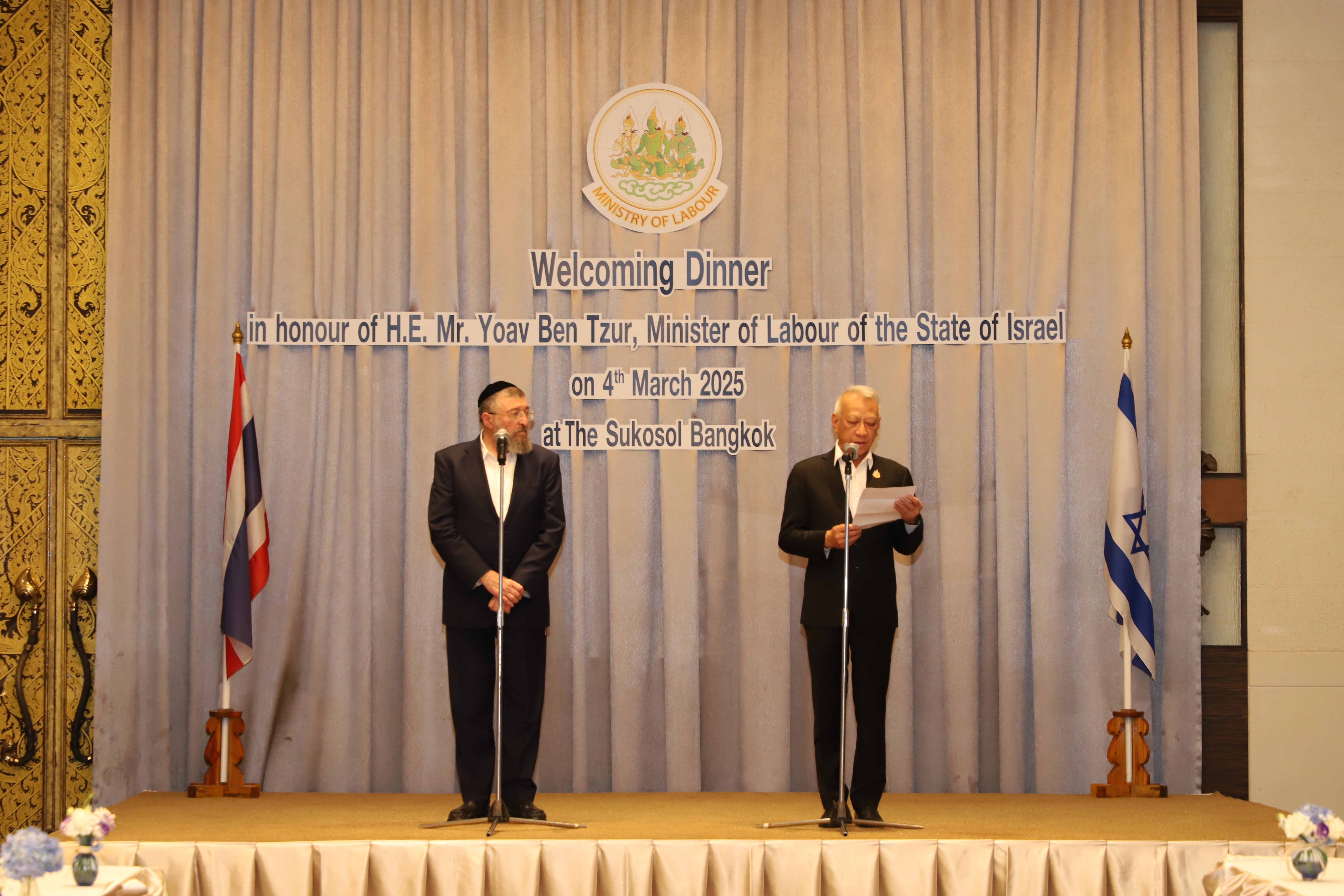 วันที่ 4 มีนาคม 2568 เวลา 18.00 น. นายพิพัฒน์ รัชกิจประการ รัฐมนตรีว่าการกระทรวงแรงงาน เป็นประธานในงานเลี้ยงรับรอง นายโยอาฟ เบน ซูร์ รัฐมนตรีว่าการกระทรวงแรงงานแห่งรัฐอิสราเอล (Mr. Yoav Ben Tzur) และคณะ ในโอกาสเดินทางเยือนประเทศไทยอย่างเป็นทางการ เพื่อการเจรจาทำงาน (Working Visit) ระหว่างวันที่ 2 – 6 มีนาคม 2568 ตามคำเชิญของ นายพิพัฒน์ รัชกิจประการ รัฐมนตรีว่าการกระทรวงแรงงาน เพื่อเยี่ยมคารวะและหารือข้อราชการด้านแรงงาน โดยมี นายอารี ไกรนรา เลขานุการรัฐมนตรีว่าการการกระทรวงแรงงาน นายภุชงค์ วรศรี ประจำสำนักเลขาธิการนายกรัฐมนตรี ปฏิบัติหน้าที่ประจำกระทรวงแรงงาน นาวาอากาศเอก อธิคุณ คงมี คณะที่ปรึกษารัฐมนตรีด้านการบริหารจัดการแรงงานผิดกฎหมาย นายบุญสงค์ ทัพชัยยุทธ์ ปลัดกระทรวงแรงงาน นางสาวบุปผา เรืองสุด รองปลัดกระทรวงแรงงาน นายสมาสภ์ ปัทมะสุคนธ์ รองปลัดกระทรวงแรงงาน นายสันติ นันตสุวรรณ ผู้ตรวจราชการกระทรวงแรงงาน รักษาราชการแทน รองปลัดกระทรวงแรงงาน นายศักดินาถ สนธิศักดิ์โยธิน ผู้ช่วยปลัดกระทรวงแรงงาน นางออร์นา ซากิฟ เอกอัครราชทูตอิสราเอลประจำประเทศไทย และคณะผู้แทนจากรัฐอิสราเอล พร้อมด้วยผู้บริหารกระทรวงแรงงาน และหน่วยงานที่เกี่ยวข้อง ร่วมงาน ณ ห้องกมลทิพย์ 3 ชั้น 2 โรงแรมเดอะ สุโกศล ถนนศรีอยุธยา เขตราชเทวี กรุงเทพมหานคร