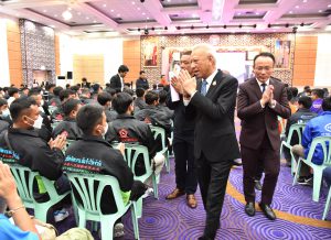 “ผมขอให้ทุกท่านตั้งใจทำงานและรับผิดชอบงานที่ได้รับมอบหมายให้ดีที่สุด ปฏิบัติตนตามกฎหมายและวัฒนธรรมของประเทศปลายทาง ไม่ยุ่งเกี่ยวกับยาเสพติด สิ่งมึนเมา และการพนันทุกชนิด ที่สำคัญต้องวางแผนการออมเงิน เพื่อจะได้มีเงินก้อนมาต่อยอดหลังจากเสร็จสิ้นสัญญาจ้าง สุดท้ายขอชื่นชมทุกคนในความพยายามและความอดทน ฝึกฝนทักษะด้านภาษา ทักษะการทำงานจนผ่านการคัดเลือกไปทำงานต่างประเทศ”