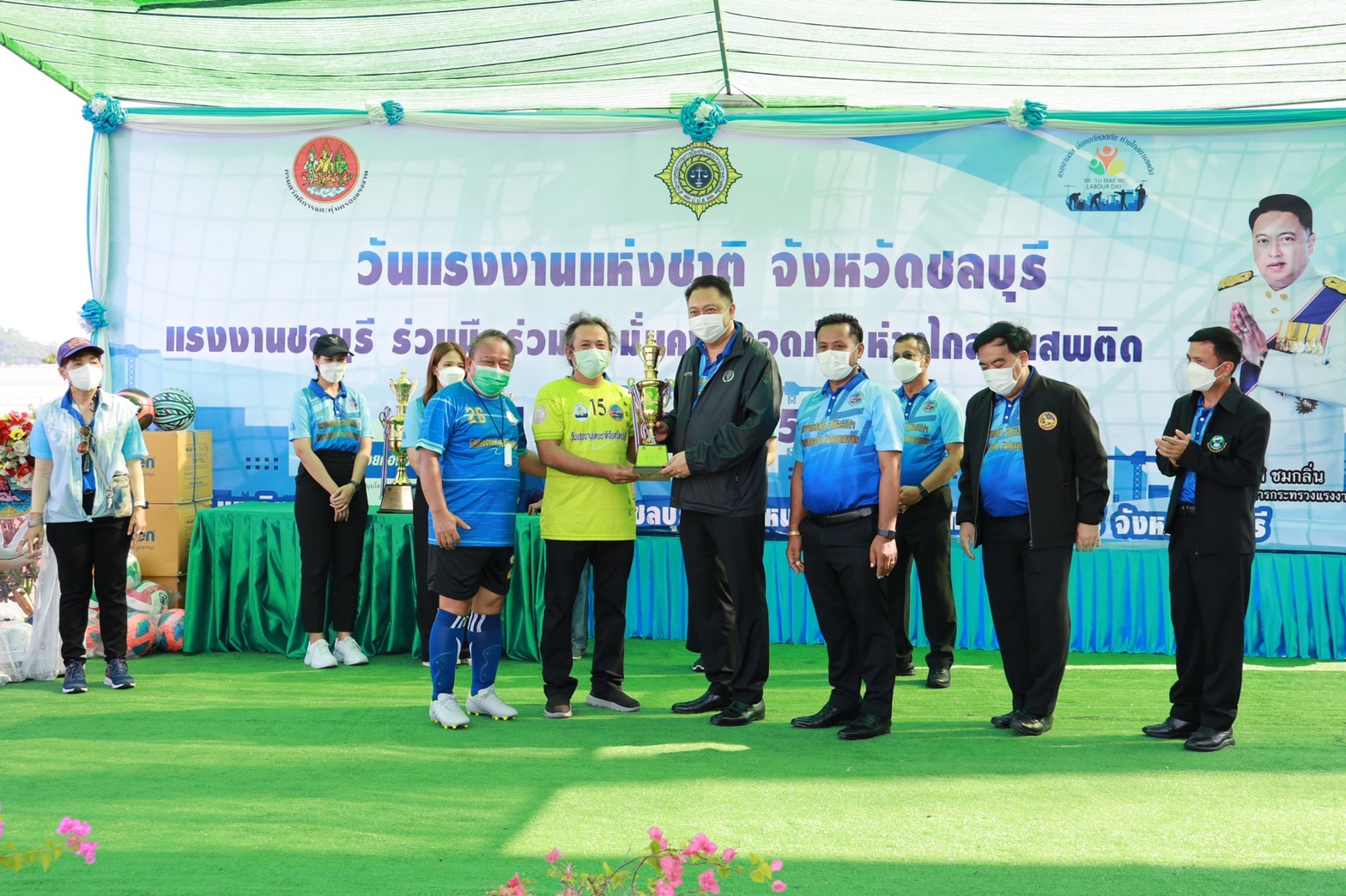 เมื่อวันที่ 1 พฤษภาคม 2565 นายสุชาติ ชมกลิ่น รัฐมนตรีว่าการกระทรวงแรงงาน เป็นประธานในพิธีเปิดงานวันแรงงานแห่งชาติ จังหวัดชลบุรี ประจำปี ๒๕๖๕ โดยมี นายนิติ วิวัฒน์วานิช รองผู้ว่าราชการจังหวัดชลบุรี กล่าวต้อนรับ นายธนัสถา คำมาวงษ์ ประธานสหภาพแรงงานสยามโตโยต้า ในฐานะประธานการจัดงานฯ กล่าวรายงานวัตถุประสงค์การจัดงานฯ นายสุรชัย ชัยตระกูลทอง ผู้ช่วยรัฐมนตรีประจำกระทรวงแรงงาน นายสุเทพ ชิตยวงษ์ เลขานุการรัฐมนตรีว่าการกระทรวงแรงงาน พล.ต.ต.นันทชาติ ศุภมงคล ประจำสำนักเลขาธิการนายกรัฐมนตรี ปฏิบัติหน้าที่ประจำกระทรวงแรงงาน นายสุทธิ สุโกศล ประจำสำนักเลขาธิการนายกรัฐมนตรี ปฏิบัติหน้าที่ประจำกระทรวงแรงงาน นางเธียรรัตน์ นะวะมะวัฒน์ โฆษกกระทรวงแรงงาน (ฝ่ายการเมือง) พร้อมด้วยผู้บริหารระดับสูงกระทรวงแรงงาน ผู้แทนองค์กรนายจ้าง ลูกจ้าง สถานประกอบกิจการเข้าร่วมในครั้งนี้ด้วย ณ มหาวิทยาลัยการกีฬาแห่งชาติ วิทยาเขตชลบุรี ต.หนองไม้แดง อ.เมืองชลบุรี จ.ชลบุรี