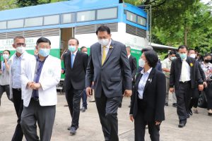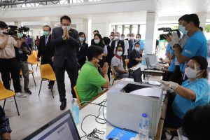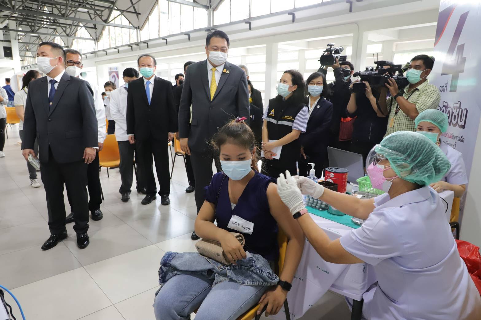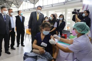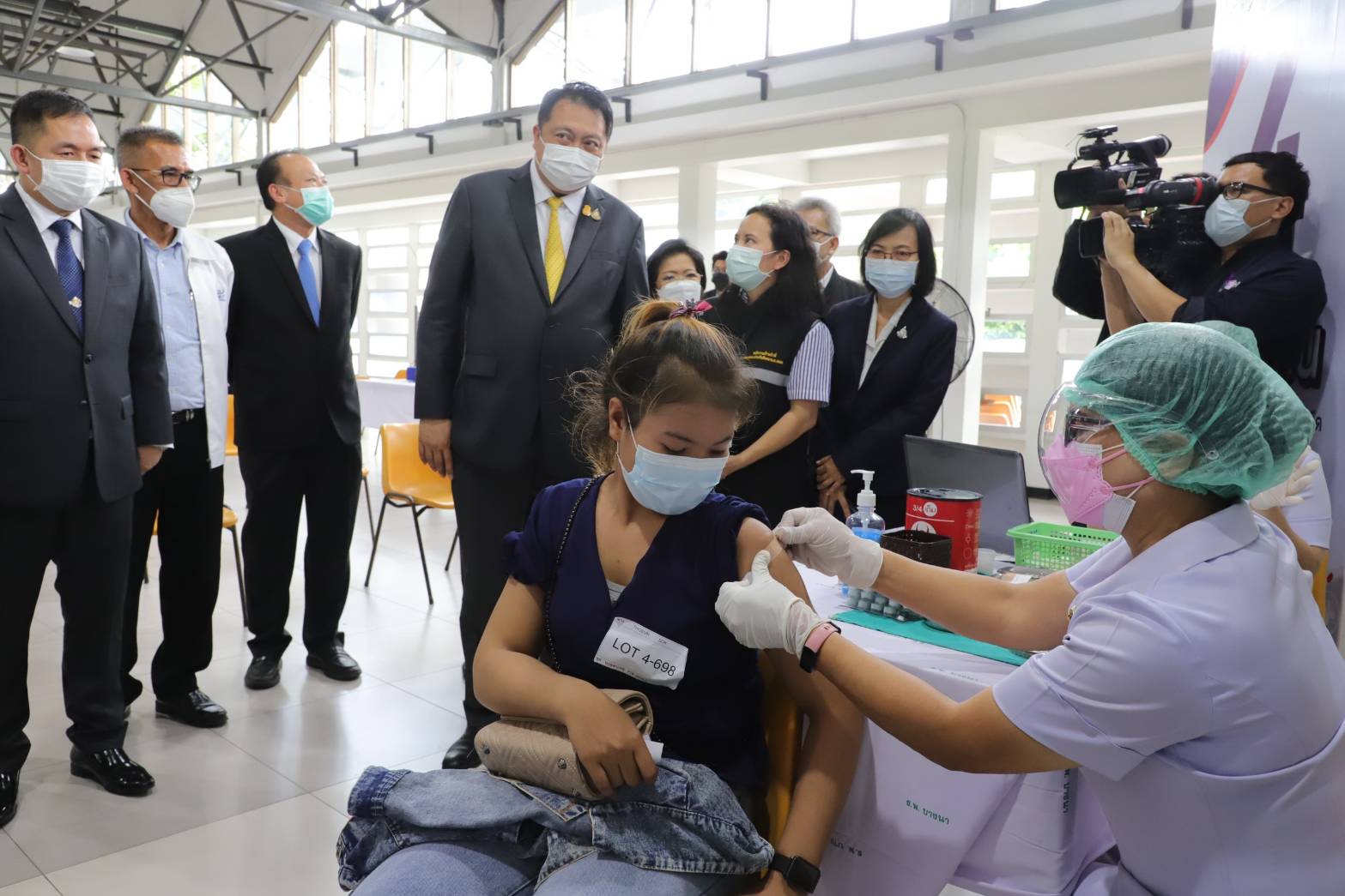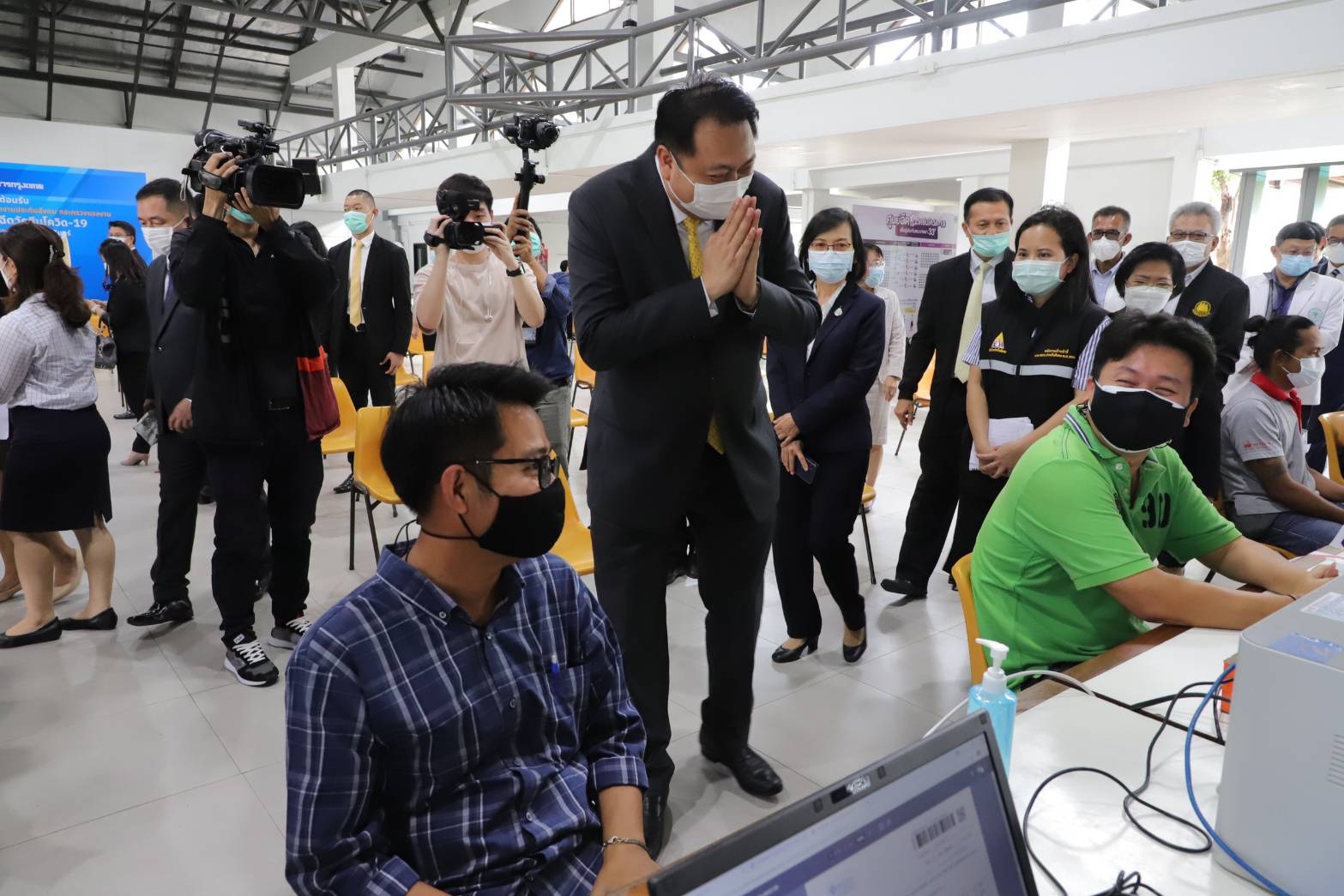 นายสุชาติ ชมกลิ่น รัฐมนตรีว่าการกระทรวงแรงงาน ลงพื้นที่ตรวจเยี่ยมและให้กำลังใจผู้ประกันตนมาตรา 33 ในพื้นที่กรุงเทพมหานครที่มาฉีดวัคซีนโควิด-19 ณ ศูนย์ฉีดวัคซีนสโมสรธนาคารกรุงเทพ ถนนศรีนครินทร์