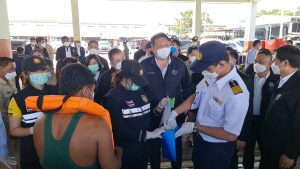 เมื่อวันที่ 1 พฤศจิกายน 2564 นายสุชาติ ชมกลิ่น รัฐมนตรีว่าการกระทรวงแรงงาน ลงพื้นที่จังหวัดชุมพร เพื่อตรวจเยี่ยมและรับฟังปัญหาการดำเนินงานของศูนย์ควบคุมการแจ้งเข้า – ออก เรือประมงชุมพร (Port In and Port Out Control Center : PIPO) ตำบลปากน้ำ อำเภอเมือง จังหวัดชุมพร โดยมี นางธิวัลรัตน์ อังกินันทน์ ที่ปรึกษารัฐมนตรีว่าการกระทรวงแรงงานนายสุเทพ ชิตยวงษ์ เลขานุการรัฐมนตรีว่าการกระทรวงแรงงาน พล.ต.ต.นันทชาติ ศุภมงคลประจำสำนักเลขาธิการนายกรัฐมนตรี ปฏิบัติหน้าที่ประจำกระทรวงแรงงาน นางเธียรรัตน์ นะวะมะวัฒน์ โฆษกกระทรวงแรงงาน (ฝ่ายการเมือง) นายสัมฤทธิ์ กองเงิน รองผู้ว่าราชการจังหวัดชุมพร กล่าวต้อนรับ พร้อมด้วยผู้บริหารระดับสูงกระทรวงแรงงาน เข้าร่วมในครั้งนี้ด้วย นายสุชาติ กล่าวว่า รัฐบาล ภายใต้การนำของ พล.อ.ประยุทธ์ จันทร์โอชา นายกรัฐมนตรีและรัฐมนตรีว่าการกระทรวงกลาโหม และกระทรวงแรงงานภายใต้การกำกับดูแลของ พล.อ.ประวิตร วงษ์สุวรรณ รองนายกรัฐมนตรี ได้ให้ความสำคัญกับการขับเคลื่อนนโยบายป้องกันและแก้ไขปัญหาการค้ามนุษย์ด้านแรงงาน โดยการสกัดกั้นปราบปรามขบวนการลักลอบนำพาคนต่างด้าวเข้าเมืองผิดกฎหมายทั้งทางบกและทางน้ำ เนื่องจากผู้ประกอบการมีความต้องการแรงงานเป็นจำนวนมาก เพื่อสอดรับกับการฟื้นตัวของเศรษฐกิจตามนโยบายการเปิดประเทศของรัฐบาล พร้อมทั้งให้การสนับสนุน แนะนำและช่วยกำกับการปฏิบัติของประชาชนให้เป็นไปตามมาตรการควบคุมโรคที่กำหนด โดยกำชับให้ทุกภาคส่วนประสานการทำงานร่วมกับฝ่ายปกครอง ตำรวจ และส่วนราชการที่เกี่ยวข้อง ในวันนี้ผมจึงได้ลงพื้นที่มาพบปะกับลูกจ้าง นายจ้าง และภาคส่วนที่เกี่ยวข้องในการขับเคลื่อนนโยบายดังกล่าว โดยได้มารับฟังบรรยายสรุปจาก ผู้แทนศูนย์ควบคุมการแจ้งเข้า – ออกฯ เรื่องการดำเนินงานของศูนย์และรับฟังปัญหาอุปสรรคด้านแรงงานในการประกอบอาชีพประมงทะเลในพื้นที่ รมว.แรงงานและคณะได้ตรวจเรือแจ้งเข้าจำนวน 1 ลำ ได้แก่ เรือครอบกะตะ ส.ชัยนาวี 999 มีลูกเรือ 9 คนเป็นคนไทย 1 คน และเมียนมา 8 คน สำหรับมาตรการการดูแลแรงงานต่างด้าวของหน่วยงานกระทรวงแรงงานได้ดำเนินการประชาสัมพันธ์แจ้งเตือนนายจ้างลูกจ้างให้รับทราบถึงมาตรการป้องกันโควิด– 19 ภาคเอกชนให้ความร่วมมือฉีดวัคซีนให้ลูกจ้างต่างด้าวไปแล้วกว่า 90 เปอร์เซ็นต์ รวมทั้งการตรวจ ATK ทุกครั้งที่มีเรือเข้า – ออก