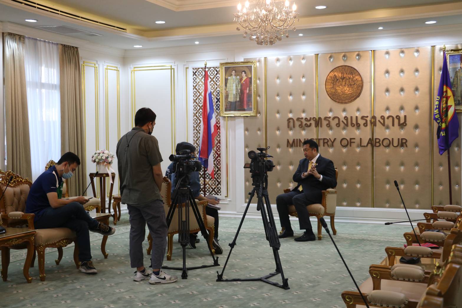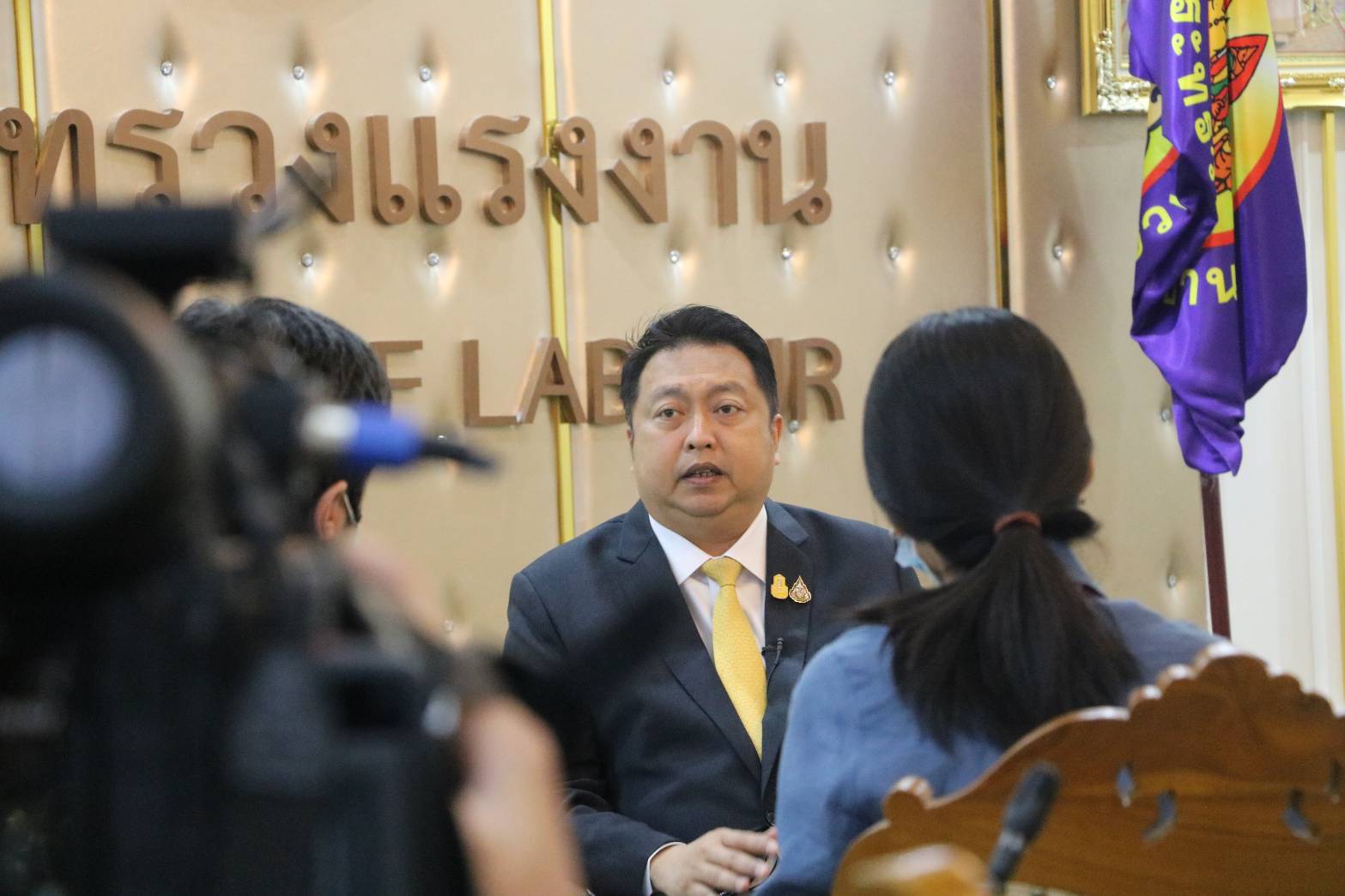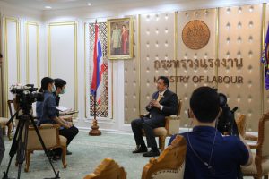 วันที่ 7 มกราคม 2564 เวลา 08.30 น. นายสุชาติ ชมกลิ่น รัฐมนตรีว่าการกระทรวงแรงงาน บันทึกเทปสัมภาษณ์สถานีวิทยุโทรทัศน์แห่งประเทศไทย (NBT) เกี่ยวกับประเด็นการจดทะเบียนแรงงานต่างด้าว ณ ห้องจัตุมงคล ชั้น 6 อาคารกระทรวงแรงงาน