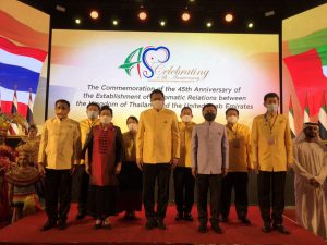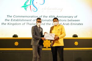 เป็นประธานฝ่ายไทย กล่าวในงานฉลองครบรอบ 45 ปี การสถาปนาความสัมพันธ์ทางการทูตระหว่างไทยกับสหรัฐอาหรับเอมิเรตส์หรือยูเออี ซึ่งเป็นส่วนหนึ่งในกิจกรรมของอาคารแสดงประเทศไทยในงานเอ็กซ์โปดูไบ ณ Thai Pavilion ในงาน World Expo 2020 โดยมี นายวราวุธ ภู่อภิญญา เอกอัครราชทูต ณ กรุงอาบูดาบี พล.ต.ต.นันทชาติ ศุภมงคล ประจำสำนักเลขาธิการนายกรัฐมนตรี ปฏิบัติหน้าที่ประจำกระทรวงแรงงาน นางเธียรรัตน์ นะวะมะวัฒน์ โฆษกกระทรวงแรงงาน (ฝ่ายการเมือง) นายบุญชอบ สุทธมนัสวงษ์ ปลัดกระทรวงแรงงาน นางปลิดา ร่วมคำ อัครราชทูตที่ปรึกษา (ฝ่ายแรงงาน) พร้อมด้วยผู้บริหารระดับสูงกระทรวงแรงงาน เข้าร่วมด้วย