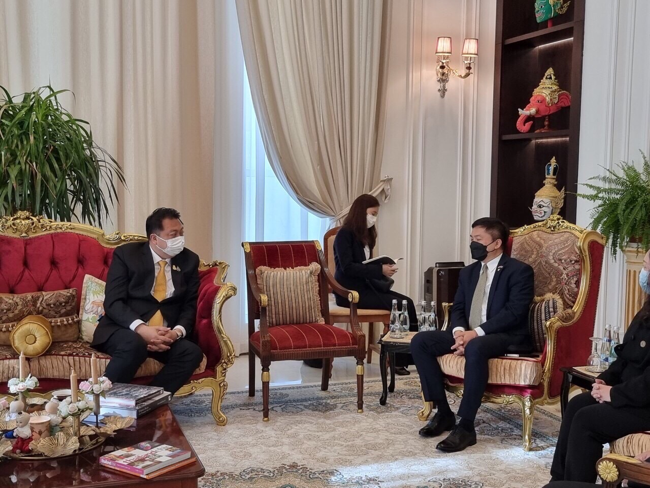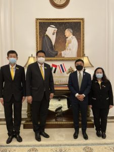 เมื่อวันที่ 8 ธันวาคม 2564 นายสุชาติ ชมกลิ่น รัฐมนตรีว่าการกระทรวงแรงงาน และคณะ พบปะและหารือข้อราชการด้านแรงงานกับ นายวราวุธ ภู่อภิญญา เอกอัครราชทูต ณ กรุงอาบูดาบี โดยมี พล.ต.ต.นันทชาติ ศุภมงคล ประจำสำนักเลขาธิการนายกรัฐมนตรี ปฏิบัติหน้าที่ประจำกระทรวงแรงงาน นางเธียรรัตน์ นะวะมะวัฒน์ โฆษกกระทรวงแรงงาน (ฝ่ายการเมือง) นายบุญชอบ สุทธมนัสวงษ์ ปลัดกระทรวงแรงงาน นางปลิดา ร่วมคำ อัครราชทูตที่ปรึกษา (ฝ่ายแรงงาน) พร้อมด้วยผู้บริหารระดับสูงกระทรวงแรงงาน เข้าร่วมด้วย ณ สถานเอกอัครราชทูต ณ กรุงอาบูดาบี ประเทศสหรัฐอาหรับเอมิเรตส์โดย รมว.สุชาติ กล่าวว่า รัฐบาล โดยท่านนายกรัฐมนตรีและรัฐมนตรีว่าการกระทรวงกลาโหม พล.อ.ประยุทธ์ จันทร์โอชา และกระทรวงแรงงานภายใต้การกำกับดูแลของ พล.อ.ประวิตร วงษ์สุวรรณ รองนายกรัฐมนตรี มอบหมายให้ผมในฐานะรัฐมนตรีว่าการกระทรวงแรงงาน เดินทางมาพบปะหารือและเปลี่ยนข้อราชการด้านแรงงานกับท่านเอกอัครราชทูต ในนามกระทรวงแรงงานขอขอบคุณท่านเอกอัครราชทูต ที่ให้การดูแลท่านอัครราชทูตที่ปรึกษา และเจ้าหน้าที่ของฝ่ายแรงงาน รวมถึงดูแลแรงงานไทยในสหรัฐอาหรับเอมิเรตส์ ให้มีชีวิตความเป็นอยู่ที่เหมาะสม ได้รับการคุ้มครองสิทธิตามกฎหมาย รวมทั้งขอบคุณที่ท่านเอกอัครราชทูต เรียนเชิญให้เป็นประธานงานฉลองความสัมพันธ์ไทย – ยูเออี ครบรอบ 45 ปีขึ้นในวันที่ 9 ธันวาคมนี้ เวลา 19.30 น. ที่ Thai Pavilion ซึ่งจะเป็นโอกาสอันดีที่จะได้ส่งเสริมความร่วมมือด้านแรงงาน รวมถึง ประชาสัมพันธ์ถึงฝีมือและความสามารถของแรงงานไทย ผลักดันการขยายตลาดแรงงาน สร้างงาน สร้างอาชีพให้แก่คนไทย ซึ่งจะนำรายได้กลับสู่ประเทศไทย