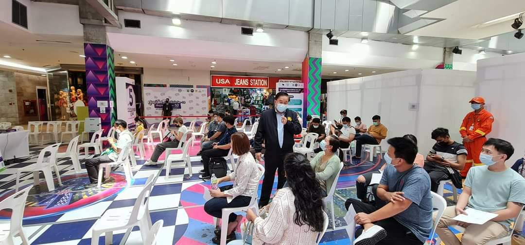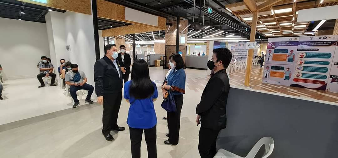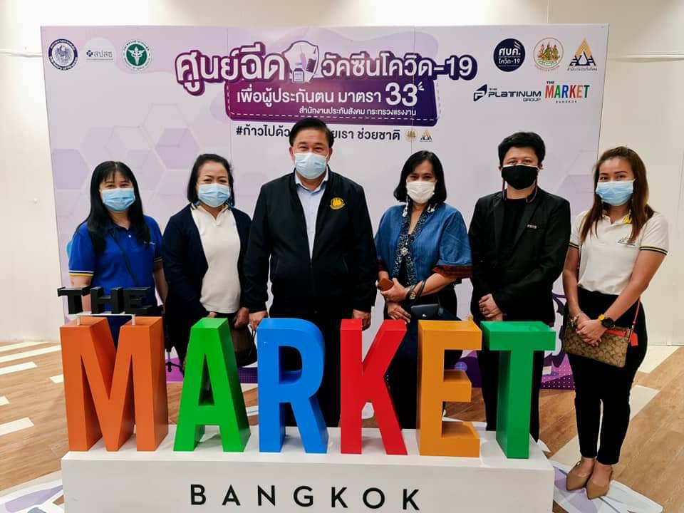 เมื่อวันที่ 18 มิถุนายน 2564 นายสุชาติ ชมกลิ่น รัฐมนตรีว่าการกระทรวงแรงงาน มอบหมายให้ ดร.จำลอง ช่วยรอด คณะที่ปรึกษารัฐมนตรีว่าการกระทรวงแรงงาน ลงพื้นที่ตรวจเยี่ยมศูนย์ฉีดวัคซีนผู้ประกันตนมาตรา 33 ในพื้นที่กรุงเทพมหานคร ณ ศูนย์การค้า MBK Center มาบุญครอง ชั้น 1 โดยมีบุคลากรทางการแพทย์จากโรงพยาบาลปิยะเวทมาให้บริการ และ อาคาร M2 ชั้น m และ ชั้น 1 The Market Bangkok เขตปทุมวัน กรุงเทพมหานคร มีบุคลาการทางการแพทย์จากโรงพยาบาลมเหสักข์และโรงพยาบาลปิยะเวท มาให้บริการฉีดวัคซีนป้องกันโควิด-19 ให้กับผู้ประกันตน เพื่อควบคุมการแพร่ระบาดไม่ให้กระจายออกสู่วงกว้างทั้งในโรงงาน และสถานประกอบการ