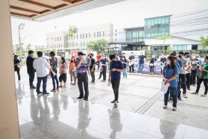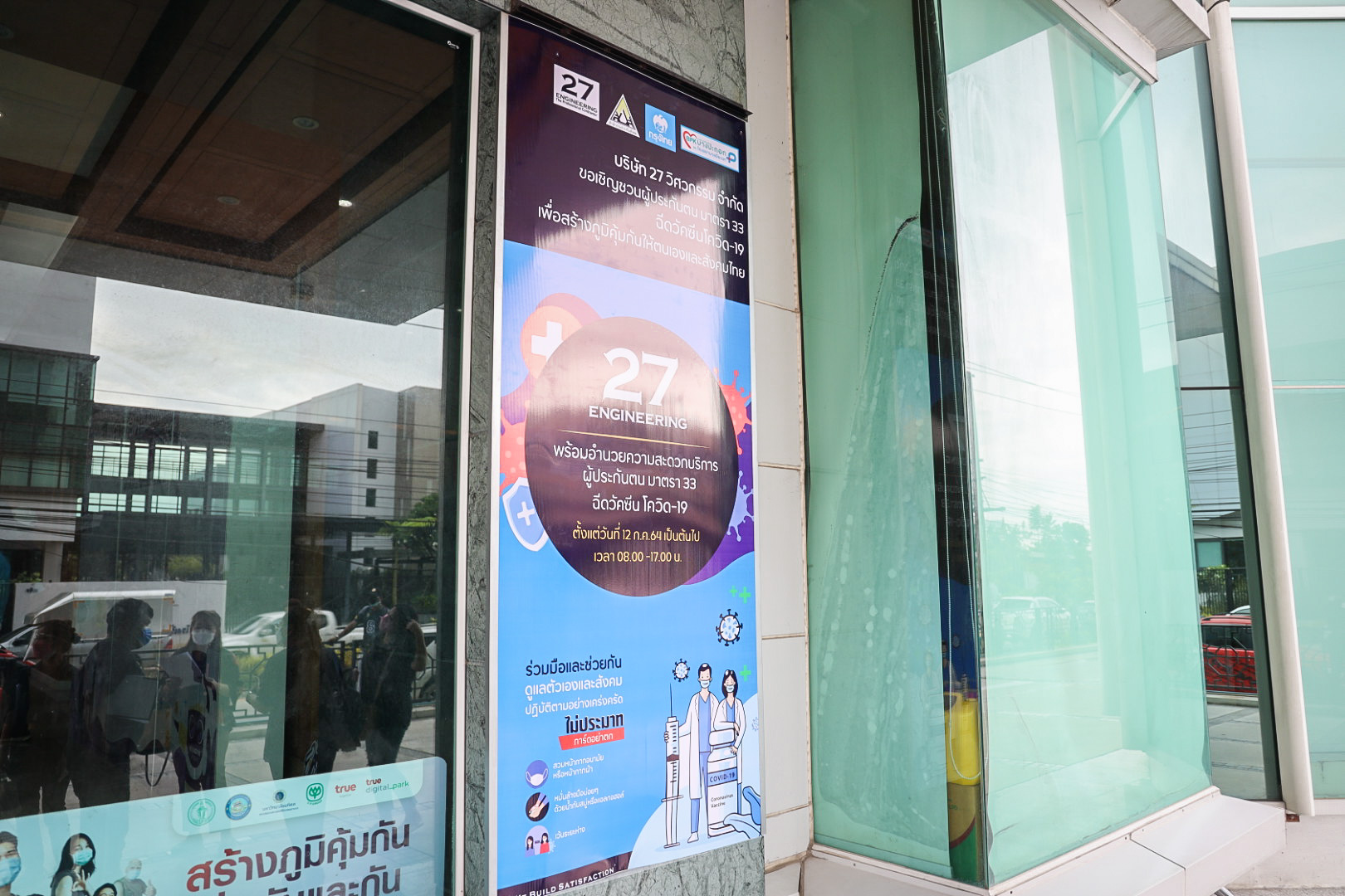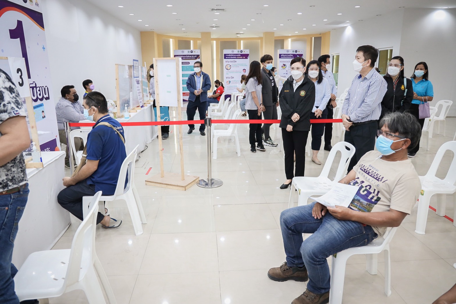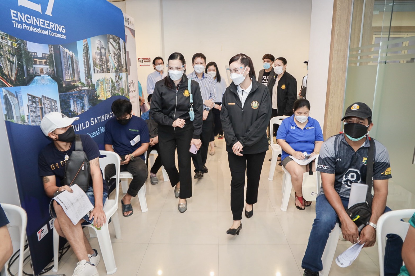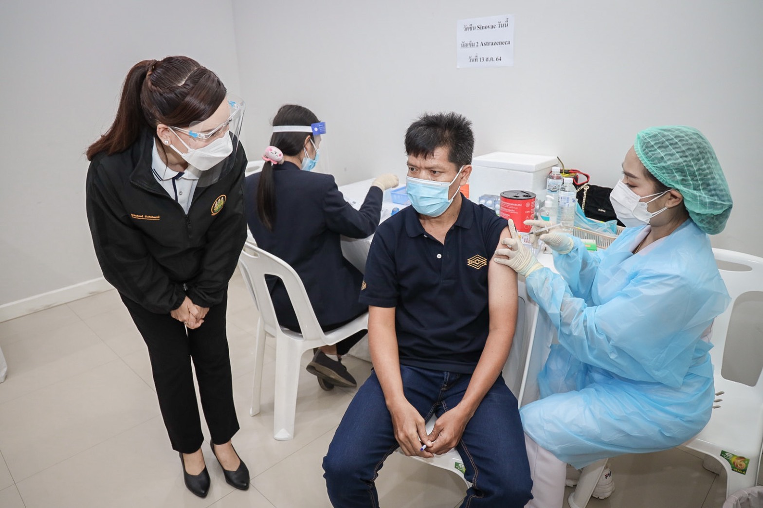 เมื่อวันที่ 23 กรกฎาคม 2564 นายสุชาติ ชมกลิ่น รัฐมนตรีว่าการกระทรวงแรงงาน มอบหมายให้ นางธิวัลรัตน์ อังกินันทน์ ที่ปรึกษารัฐมนตรีว่าการการกระทรวงแรงงาน ลงพื้นที่ตรวจเยี่ยมการให้บริการฉีดวัคซีนโควิด-19 สำหรับผู้ประกันตนในพื้นที่กรุงเทพมหานคร ณ ศูนย์ฉีดวัคซีนบริษัท 27 วิศวกรรม จำกัด ถนนพระราม 2 แขวงแสมดำ เขตบางขุนเทียน กรุงเทพมหานคร ซึ่งอยู่ในความดูแลของสำนักงานประกันสังคมกรุงเทพมหานครเขตพื้นที่ 7 มีศักยภาพการฉีดวันละ 700 คน มีทีมแพทย์ พยาบาล เภสัชกรจากโรงพยาบาลบางปะกอก 8 เป็นผู้ดำเนินการ โดย นางธิวัลรัตน์ กล่าวว่า ตามที่รัฐบาลภายใต้การนำของ พล.อ.ประยุทธ์ จันทร์โอชา นายกรัฐมนตรี และ รมว.กลาโหม และ ท่าน พล.อ.ประวิตร วงษ์สุวรรณ รองนายกรัฐมนตรี ซึ่งกำกับดูแลกระทรวงแรงงาน ได้มีความห่วงใยพี่น้องผู้ใช้แรงงาน และประชาชนทั่วไปจากสถานการณ์การระบาดของโรคโควิด-19 และกำหนดให้การฉีดวัคซีนเป็นวาระแห่งชาตินั้น และท่านรัฐมนตรีว่าการกระทรวงแรงงาน ได้มอบหมายสำนักงานประกันสังคม บูรณาการร่วมกับกระทรวงมหาดไทย โดยกรุงเทพมหานคร กระทรวงสาธารณสุข โดยสำนักงานหลักประกันสุขภาพแห่งชาติ (สปสช.) กระทรวงการคลัง โดยธนาคารกรุงไทยและสถานพยาบาลเครือข่ายประกันสังคม ทั้งภาครัฐและเอกชน ให้บริการฉีดวัคซีนป้องกันโควิด-19 ให้กับผู้ประกันตน เพื่อควบคุมการแพร่ระบาดไม่ให้กระจายออกสู่วงกว้างทั้งในโรงงานและสถานประกอบการ ในเบื้องต้นได้กำหนดจัดการฉีดวัคซีนให้กับผู้ประกันตนมาตรา 33 ในพื้นที่กรุงเทพมหานคร สำหรับศูนย์ฉีดวัคซีนแห่งนี้เริ่มเปิดให้บริการตั้งแต่วันที่ 15 ก.ค.-13 ส.ค.64 เป้าหมายฉีดวันละ 700 คน ฉีดให้ผู้ประกันตนที่ลงทะเบียนผ่านระบบ e – service ทั้งนี้ยอดรวมตั้งแต่วันที่ 7 มิ.ย.- 22 ก.ค. ได้ฉีดไปแล้ว 51,083 คน