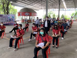 เมื่อวันที่ 7 มิถุนายน 2564 เวลา 14.30 น. นายสุชาติ ชมกลิ่น รัฐมนตรีว่าการกระทรวงแรงงาน มอบหมายให้ นายสุเทพ ชิตยวงษ์ เลขานุการรัฐมนตรีว่าการกระทรวงแรงงาน ลงพื้นที่ตรวจเยี่ยม ศูนย์ฉีดวัคซีนโควิด-19 เพื่อผู้ประกันตน มาตรา 33 ณ โรงงานฟุตบอลล์ไทย สปอร์ตติ้งกู๊ดส์ จำกัด ถนนฉลองกรุง เขตหนองจอก กรุงเทพฯ มีศักยภาพการฉีดวันละ 1,000 คน ในความรับผิดชอบของสำนักงานประกันสังคมกรุงเทพมหานครพื้นที่ 10 เพื่อเป็นขวัญและกำลังใจแก่ผู้ประกันตน บุคลากรทางการแพทย์ ข้าราชการและเจ้าหน้าที่ของสำนักงานประกันสังคม