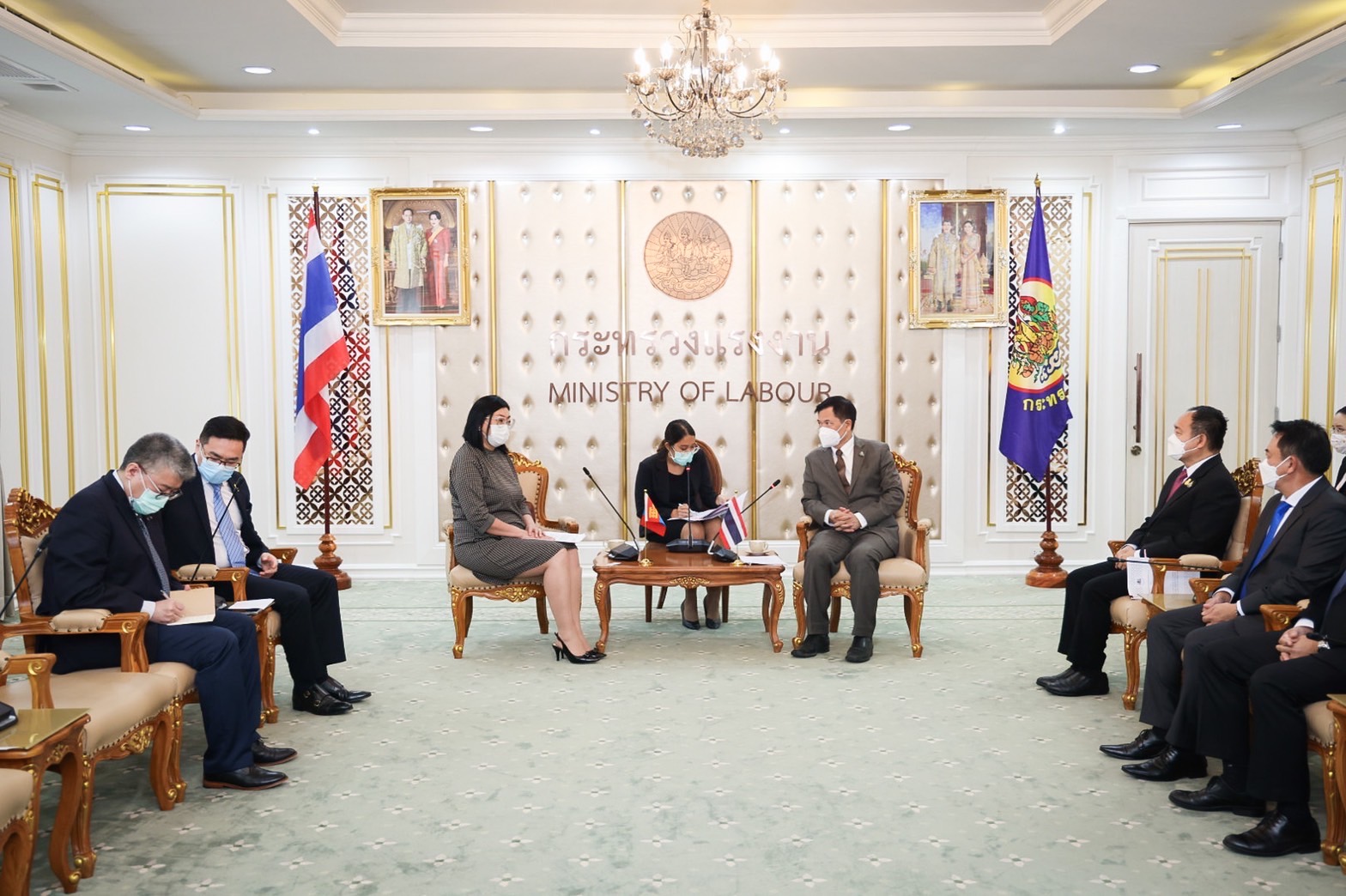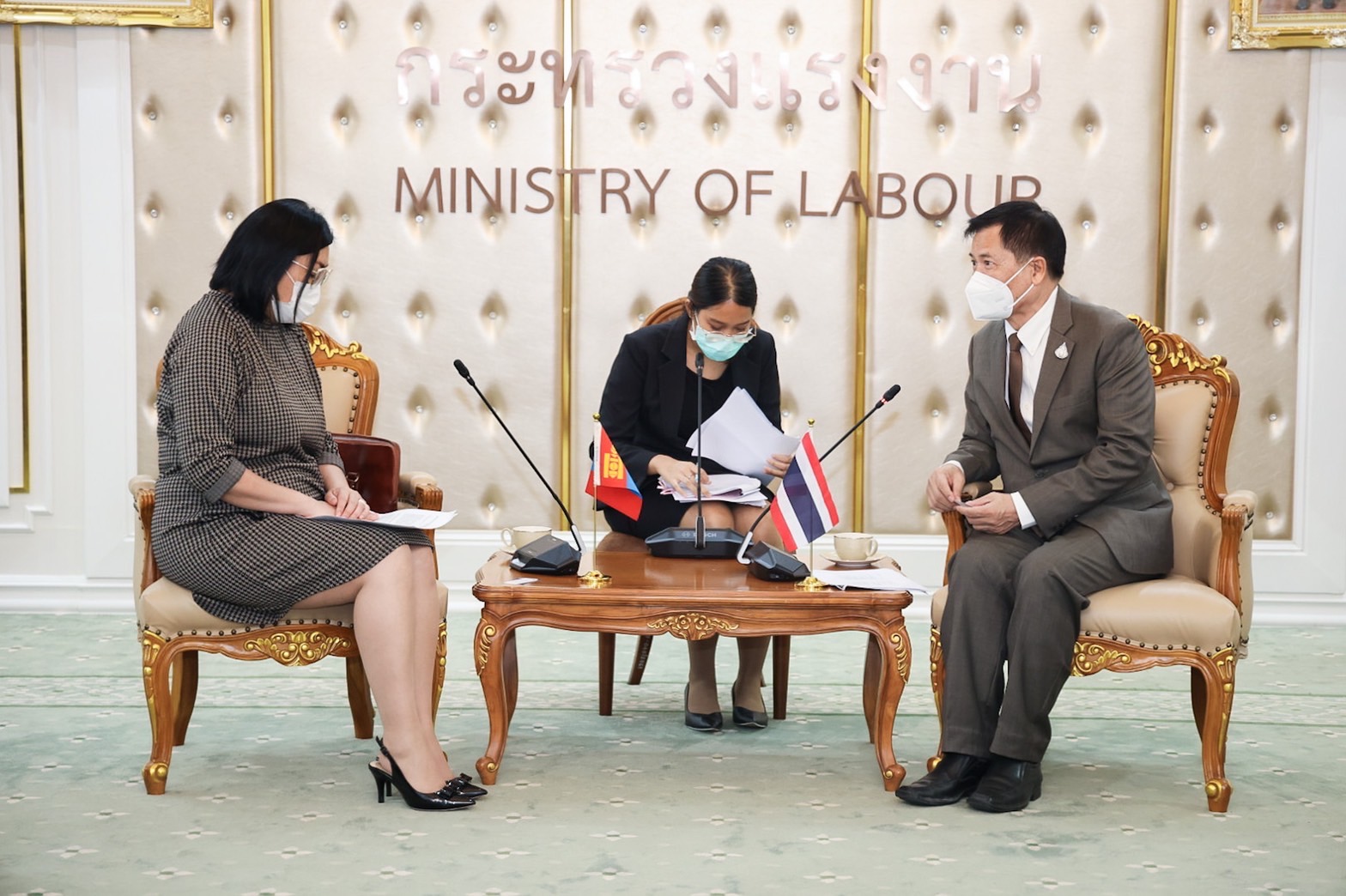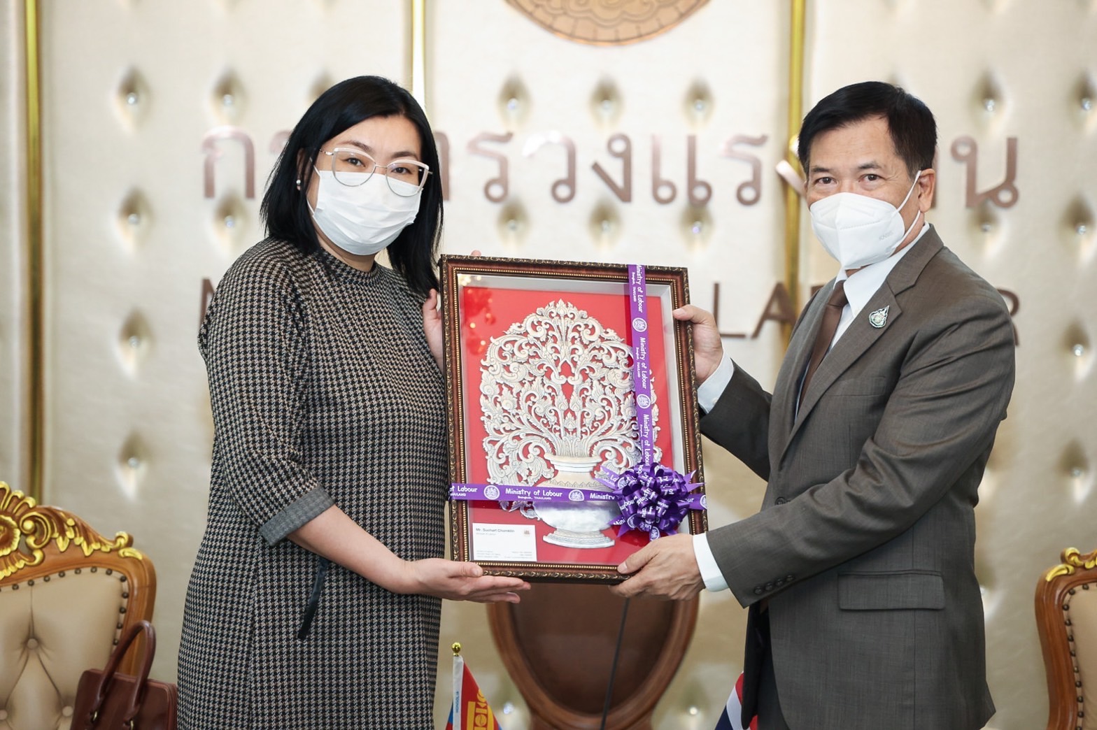 เมื่อวันที่ 31 มีนาคม 2565 นายสุชาติ ชมกลิ่น รัฐมนตรีว่าการกระทรวงแรงงาน มอบหมายให้ นายสุเทพ ชิตยวงษ์ เลขานุการรัฐมนตรีว่าการกระทรวงแรงงาน พร้อมด้วย นายสมาสภ์ ปัทมะสุคนธ์ ผู้ช่วยปลัดกระทรวงแรงงาน และผู้บริหารระดับสูงกระทรวงแรงงาน ให้การต้อนรับ H.E.Mrs.Ariunzaya Ayush รัฐมนตรีว่าการกระทรวงแรงงานและการคุ้มครองทางสังคมของมองโกเลีย และคณะ ในโอกาสเข้าเยี่ยมคารวะและหารือในประเด็นด้านแรงงาน ได้แก่ ความร่วมมือในการพัฒนาฝีมือแรงงาน การบริการจัดหางาน การคุ้มครองแรงงาน และความเป็นไปได้ในการเข้าร่วมเป็นผู้สังเกตการณ์ในการประชุมรัฐมนตรีแรงงานอาเซียนและการประชุมอื่นๆที่จัดขึ้นภายใต้กรอบแรงงานอาเซียน ณ ห้องจัตุมงคล ชั้น 6 อาคารกระทรวงแรงงาน