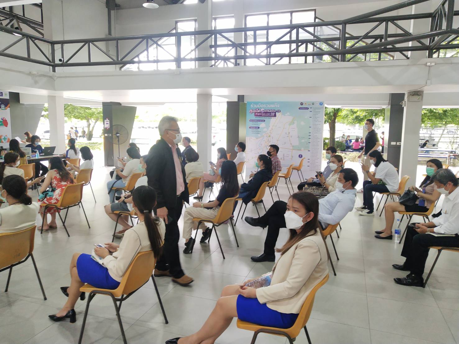 เมื่อวันที่ 8 มิถุนายน 2564 นายสุชาติ ชมกลิ่น รัฐมนตรีว่าการกระทรวงแรงงาน มอบหมายให้ นายมนัส โกศล คณะที่ปรึกษารัฐมนตรีว่าการกระทรวงแรงงาน ลงพื้นที่ตรวจเยี่ยม ศูนย์ฉีดวัคซีนโควิด-19 เพื่อผู้ประกันตน มาตรา 33 ณ ศูนย์ฉีควัคซีน จุดแรก บริษัท น้ำตาลมิตรผล อาคารเพลินจิตต์เซ็นเตอร์ ถนนสุขุมวิท จุดที่สอง สถาบันเทคโนโลยีไทย-ญี่ปุ่น ถนนพัฒนาการ และจุดที่สาม สโมสรธนาคารกรุงเทพ ถนนศรีนครินทร์ เพื่อติดตามความก้าวหน้าการฉีดวัคซีนป้องกันโรคโควิด-19 แก่ผู้ประกันตนมาตรา 33 ในเขตรับผิดชอบของสำนักงานประกันสังคมกรุงเทพมหานครพื้นที่ 12 ผู้ประกันตนมาตรา 33 ที่ลงทะเบียนผ่านสถานประกอบการได้เข้าร่วมโครงการฯ และฉีดวัคซีน โดยมีเจ้าหน้าที่ประกันสังคมกรุงเทพมหานครพื้นที่ 12 พร้อมบุคลากรทางการแพทย์ จุดแรก โรงพยาบาลกล้วยน้ำไทย จุดที่สอง โรงพยาบาลจุฬารัตน์ 3 อินเตอร์เนชั่นเนล และจุดที่สาม โรงพยาบาลบางนา 1 คอยอำนวยความสะดวก การดำเนินการเป็นไปอย่างเรียบร้อยตามหลักเกณฑ์และแนวทางขั้นตอนปฏิบัติที่กำหนดไว้