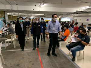 เมื่อวันที่ 9 มิถุนายน 2564 เวลา 13.30 น.นายสุชาติ ชมกลิ่น รัฐมนตรีว่าการกระทรวงแรงงาน มอบหมายให้ นายณัฐวัฒน์ ธีรทัศน์ธำรงค์ คณะที่ปรึกษารัฐมนตรีว่าการกระทรวงแรงงาน ลงพื้นที่ตรวจเยี่ยม ศูนย์ฉีดวัคซีนโควิด-19 เพื่อผู้ประกันตน มาตรา 33 ณ ห้างสิงห์คอมเพล็กซ์ โรงแรมเดอะเบอร์เคลีย์ ประตูน้ำ และอาคารกีฬาเวสน์ 1 สนามกีฬาไทย-ญี่ปุ่นดินแดง กรุงเทพมหานคร ในความรับผิดชอบของสำนักงานประกันสังคมกรุงเทพมหานครพื้นที่ 3 เพื่อเป็นขวัญและกำลังใจแก่ผู้ประกันตน บุคลากรทางการแพทย์ ข้าราชการและเจ้าหน้าที่ของสำนักงานประกันสังคม
