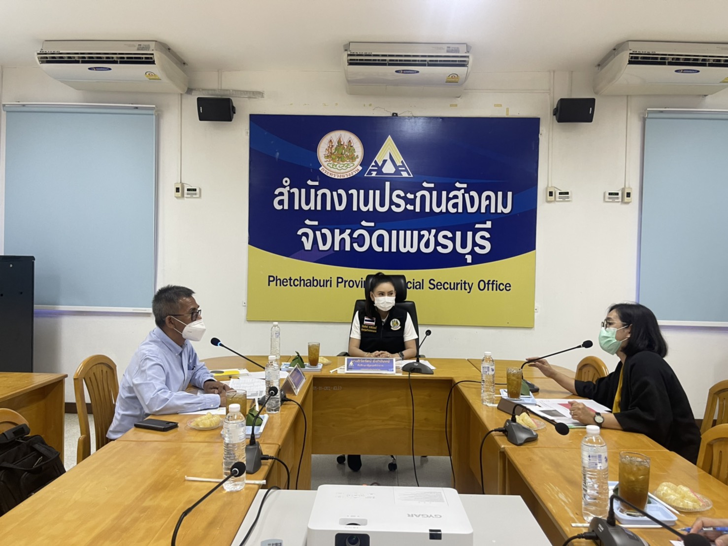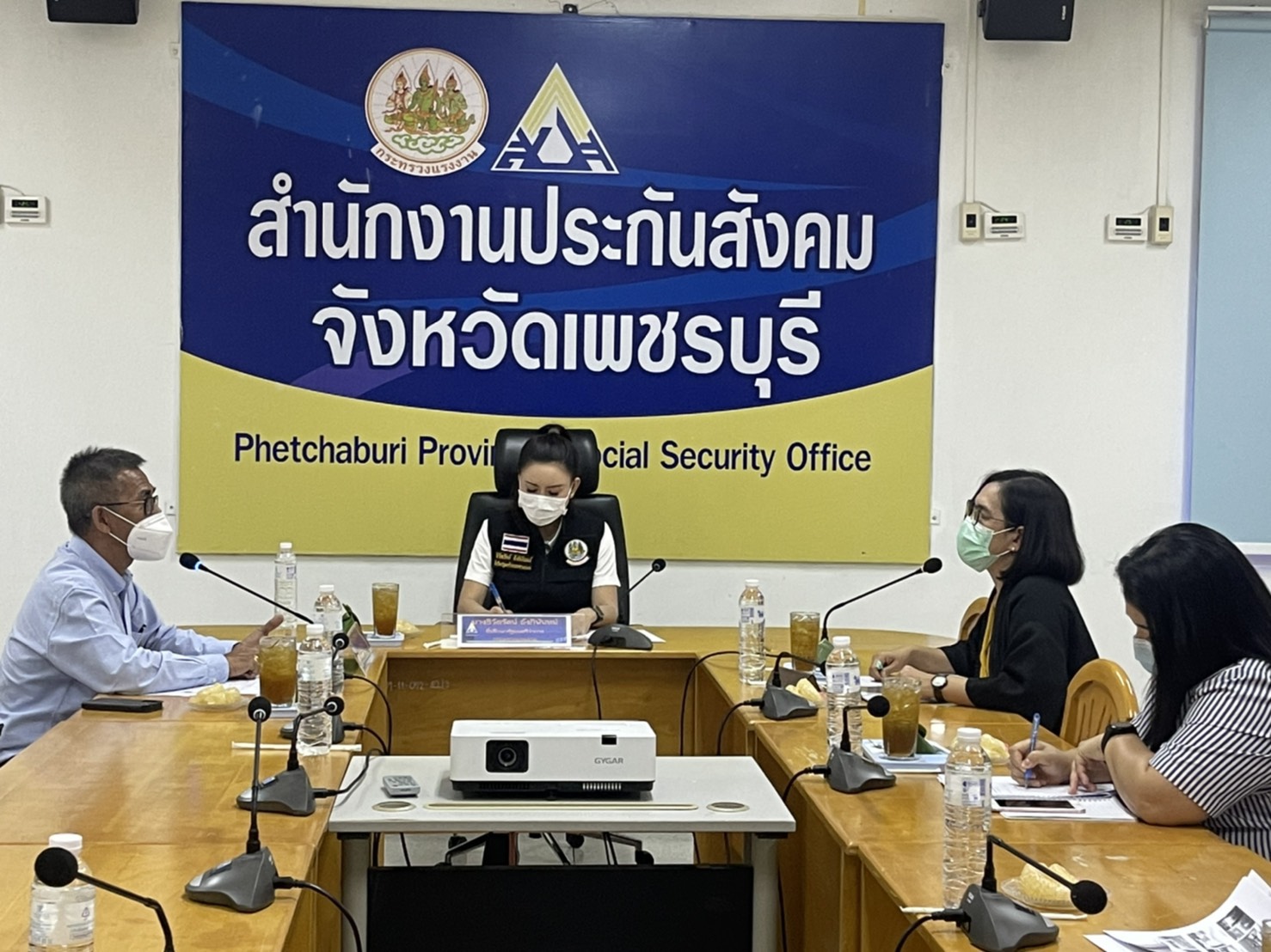 วันที่ 1 กรกฎาคม 2564 นายสุชาติ ชมกลิ่น รัฐมนตรีว่าการกระทรวงแรงงาน มอบหมายให้ นางธิวัลรัตน์ อังกินันทน์ ที่ปรึกษารัฐมนตรีว่าการกระทรวงแรงงาน ลงพื้นที่จังหวัดเพชรบุรี ประชุมหารือเตรียมความพร้อมการจัดเตรียมสถานที่เพื่อให้บริการการฉีดวัคซีนป้องกันโรคติดเชื้อไวรัสโคโรนา 2019 (COVID-19) สำหรับผู้ประกันตนมาตรา 33 ร่วมกับเจ้าหน้าที่ที่รับผิดชอบ โดยจะเริ่มทำการฉีดวัคซีนในวันที่ 15 กรกฎาคมนี้ โดยมีนายมนตรี กรรทมาศ ผู้ตรวจราชการกรม สำนักงานประกันสังคม และผู้เกี่ยวข้องเข้าร่วมการประชุมในครั้งนี้ด้วย ณ ห้องประชุมชั้น 2 อาคารสำนักงานประกันสังคมจังหวัดเพชรบุรี ซึ่งที่ประชุมยังได้ร่วมกันพิจารณาการลงสำรวจพื้นที่ เพื่อจะใช้เป็นจุดให้บริการฉีดวัคซีน ซึ่งได้รับความร่วมมือจากโรบินสัน สาขาจังหวัดเพชรบุรีในการใช้เป็นสถานที่ฉีดวัคซีนให้แก่ผู้ประกันตน ม. 33