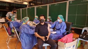 นางธิวัลรัตน์ กล่าวต่อว่า และท่านสุชาติ ชมกลิ่น รัฐมนตรีว่าการกระทรวงแรงงาน ได้ฝากความห่วงใยมายังทุกท่านที่เข้ารับการฉีดวัคซีนโควิด-19 พร้อมทั้งขอให้กำลังใจบุคลากรทางการแพทย์และเจ้าหน้าที่ด่านหน้าที่ทุ่มเท เสียสละในการปฏิบัติงานอย่างเต็มกำลังความสามารถ ในวันนี้จึงได้มอบหมายให้ดิฉันลงพื้นที่เพื่อมอบชุดอุปกรณ์ทางการแพทย์และขนม เพื่อสนับสนุนบุคลากรทางการแพทย์ในการควบคุมและป้องกันการแพร่ระบาดของโควิด-19 ไม่ให้กระจายออกสู่วงกว้าง ซึ่งความร่วมแรงร่วมใจกันจากทุกภาคส่วนที่เกี่ยวข้องทั้งภาครัฐและเอกชนในครั้งนี้ จะช่วยลดการแพร่ระบาดของโควิด-19 ในสถานประกอบการโรงงาน รวมทั้งสร้างภูมิคุ้มกันหมู่แก่แรงงาน ให้สถานการณ์กลับเข้าสู่ภาวะปกติ เพื่อให้ภาคธุรกิจได้มีการขับเคลื่อนต่อไปได้โดยเร็ว