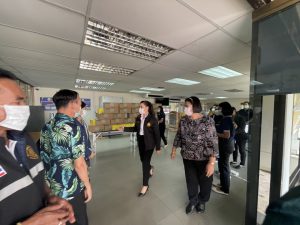 นางธิวัลรัตน์ กล่าวต่อว่า ในวันนี้ ดิฉันได้รับมอบหมายจากท่านสุชาติ ชมกลิ่น รมว.แรงงาน ให้ลงพื้นที่มาติดตามสถานการณ์ดังกล่าว และมอบสิ่งของซึ่งเป็นข้าวผัดอบกรอบผสมผักและผลไม้อบแห้ง ตรา ว่าง ว่าง ผลิตภัณฑ์ของบริษัท ไบ่ ลี่ เอ็นเตอร์ไพร์ส จำกัด ให้กับหัวหน้างานฝ่ายบุคคล บริษัท ควอลิตี้ ไพน์แอปเปิ้ล โปรดักส์ จำกัด ณ สำนักงานประกันสังคมจังหวัดประจวบคีรีขันธ์ สาขาหัวหิน เพื่อนำสิ่งของดังกล่าวไปมอบให้กับเจ้าหน้าที่ผู้ปฏิบัติงานบุคลากรทางการแพทย์ที่เสียสละ ทุ่มเท ต่อสู้กับการแพร่ระบาดของโควิด-19 ดำเนินการตรวจคัดกรอง ตลอดจนลูกจ้างที่ตรวจพบเชื้อและกักตัวอยู่ในโรงพยาบาลสนามและลูกจ้างที่ตรวจไม่พบเชื้อที่กักตัวอยู่ในสถานประกอบการอีกด้วย
