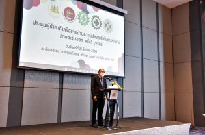 นายสุรชัย ชัยตระกูลทอง กล่าวว่า การประชุมในวันนี้ จะเป็นโอกาสที่ทุกท่านจะได้แลกเปลี่ยนข้อมูล ประสบการณ์ ในการปฏิบัติงานด้านความปลอดภัยฯ ระหว่างกัน และร่วมกันสร้างให้เกิดองค์ความรู้ใหม่ ๆ สำหรับการนำไปปรับใช้ในการพัฒนางานด้านความปลอดภัย อาชีวอนามัย และสภาพแวดล้อมในการทำงานในความรับผิดชอบให้มีประสิทธิภาพตามบริบทของพื้นที่และอุตสาหกรรมของภาคตะวันออก ตลอดจนเผยแพร่ให้กับภูมิภาคอื่น ๆ เพื่อเป็นการสร้างการรับรู้ในวงกว้าง อีกทั้งถือว่าทุกท่านมีส่วนร่วมขับเคลื่อนนโยบาย Safety Thailand ร่วมกับกระทรวงแรงงานตามแนวทางประชารัฐ เพื่อให้เกิดความปลอดภัยในการทำงาน และพัฒนา จนเป็นวัฒนธรรมความปลอดภัยในการทำงานขึ้นในสังคมไทย เพื่อให้ผู้ใช้แรงงาน มีความมั่นคงและปลอดภัยอย่างแท้จริง