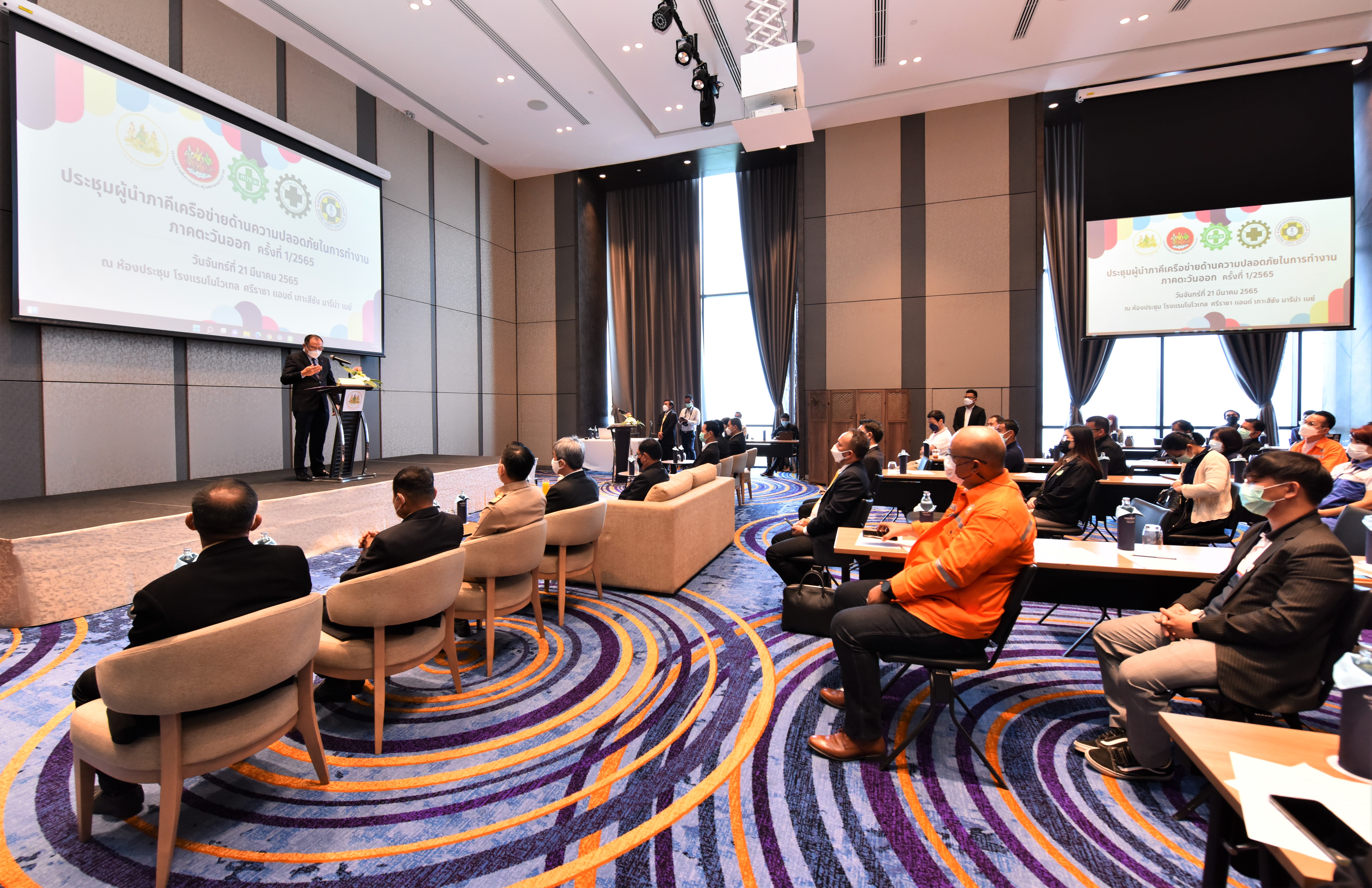 วันที่ 21 มีนาคม 2565 เวลา 09.30 น. นายสุชาติ ชมกลิ่น รัฐมนตรีว่าการกระทรวงแรงงาน มอบหมายให้ นายสุรชัย ชัยตระกูลทอง ผู้ช่วยรัฐมนตรีประจำกระทรวงแรงงาน เป็นประธานเปิดการประชุมผู้นำภาคเครือข่ายด้านความปลอดภัยในการทำงานภาคตะวันออกครั้งที่ 1/2565 เพื่อนำเสนอ แถลงผลการดำเนินการที่ผ่านมาของแต่ละชมรม สมาคม และร่วมกันกำหนดเป้าหมายการดำเนินงานของชมรมเจ้าหน้าที่ความปลอดภัยในการทำงานภาคตะวันอออก 6 จังหวัด ได้แก่ ชลบุรี ระยอง จันทบุรี ตราด ปราจีนบุรี และสระแก้ว พร้อมจัดเป็นเวทีแลกเปลี่ยนเรียนรู้ข้อมูลข่าวสารด้านความปลอดภัยในการทำงานของแต่ละชมรม ณ ห้องประชุมโรงแรมโนโวเทล อำเภอศรีราชา จังหวัดชลบุรี